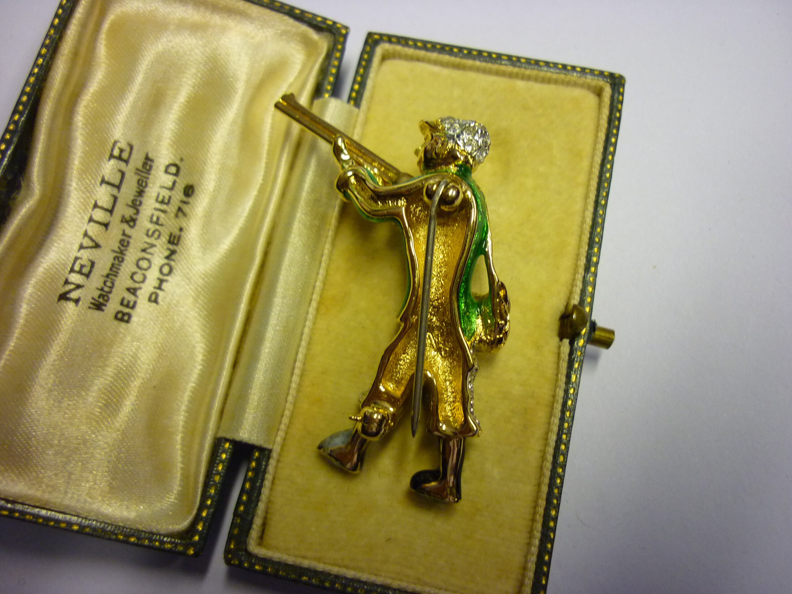 A lovely Vintage Hunting/ shooting brooch with delightful design. Set with divine rhinestone and enamel detail. Fantastic quality and very unusual. Never seen before extremely rare.