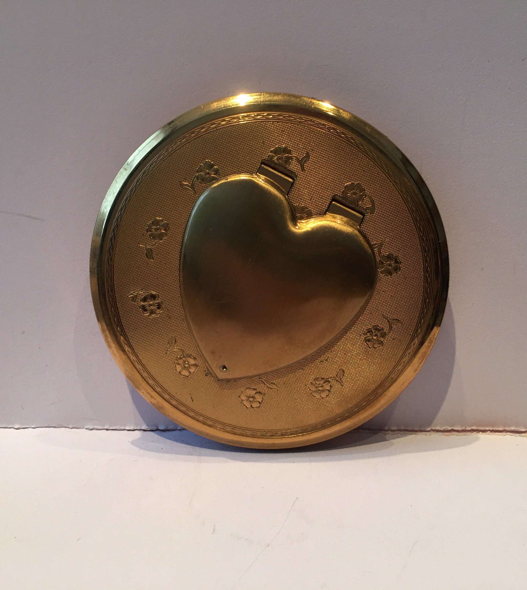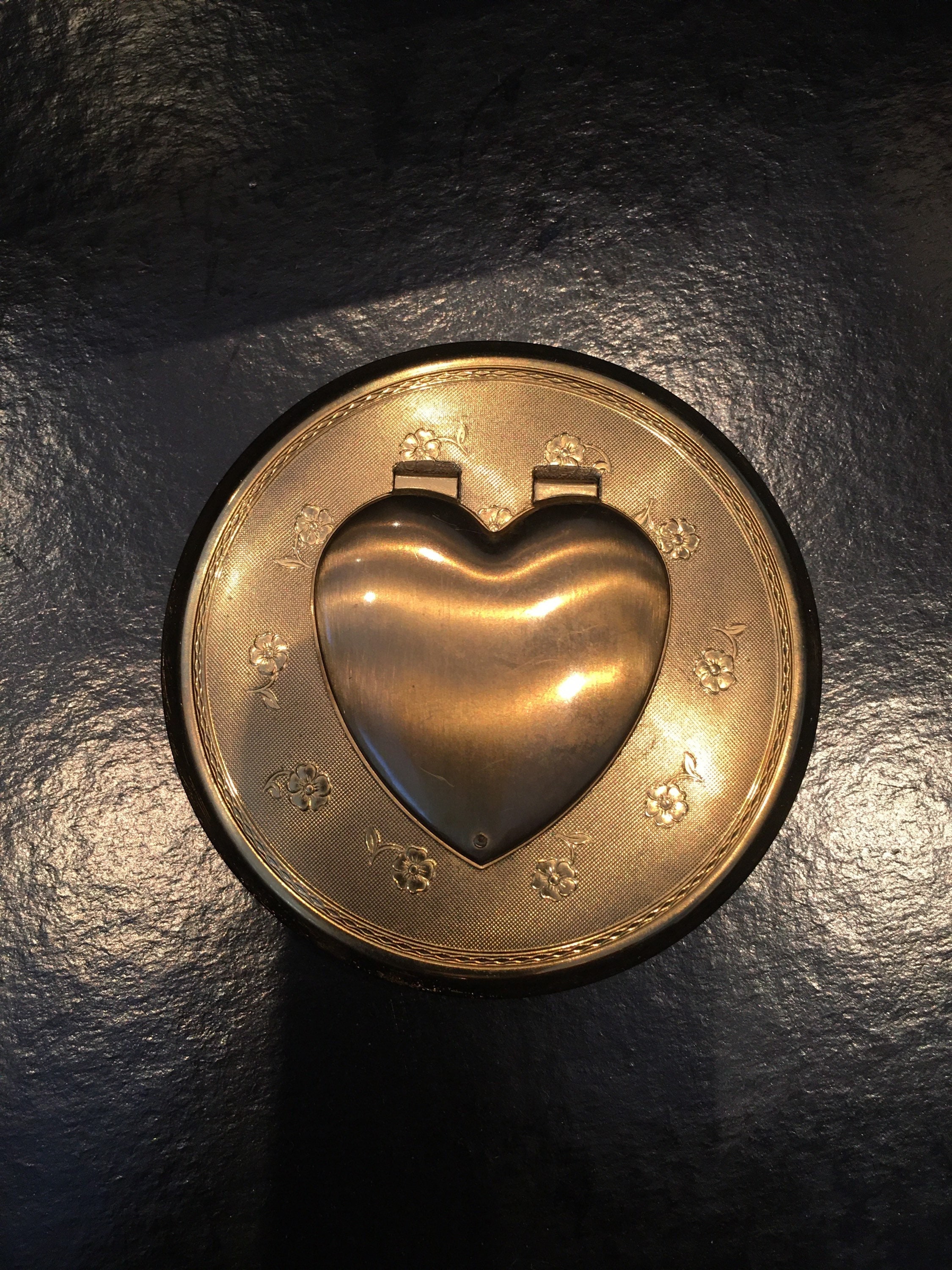 A wonderful Vintage Powder Compact with exquisite stylised heart and floral design.