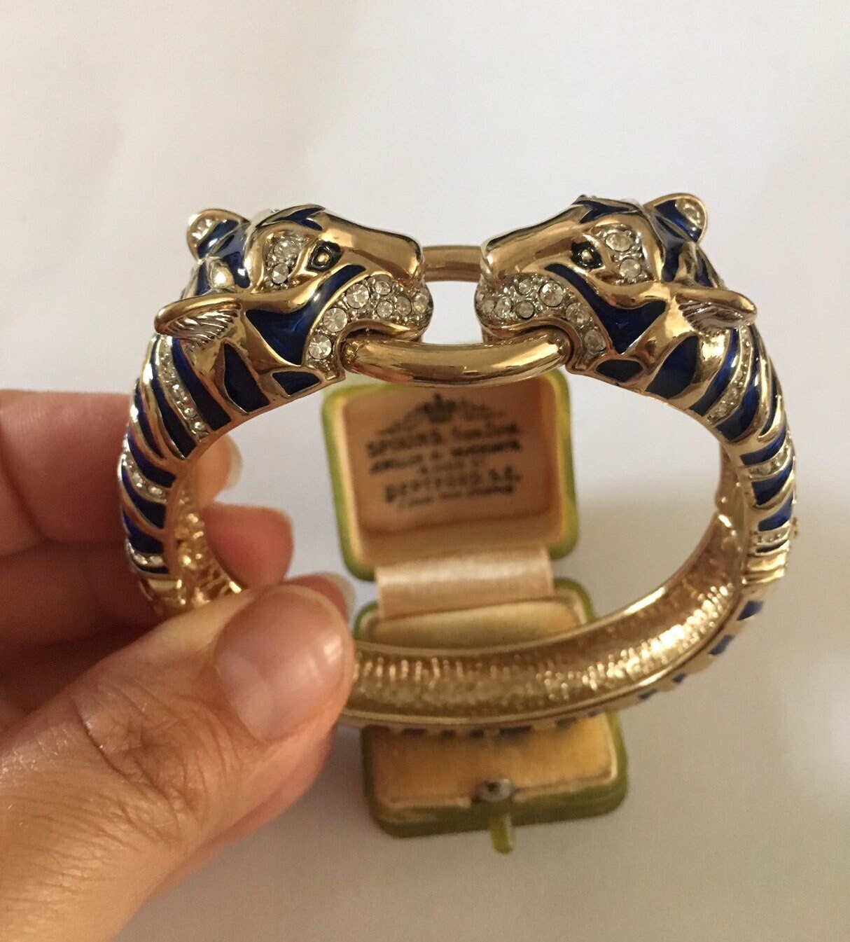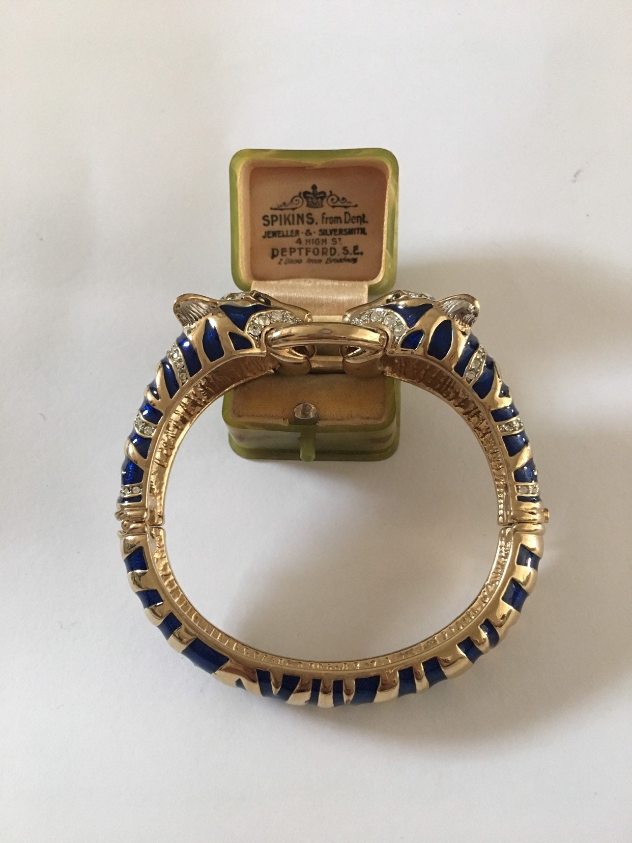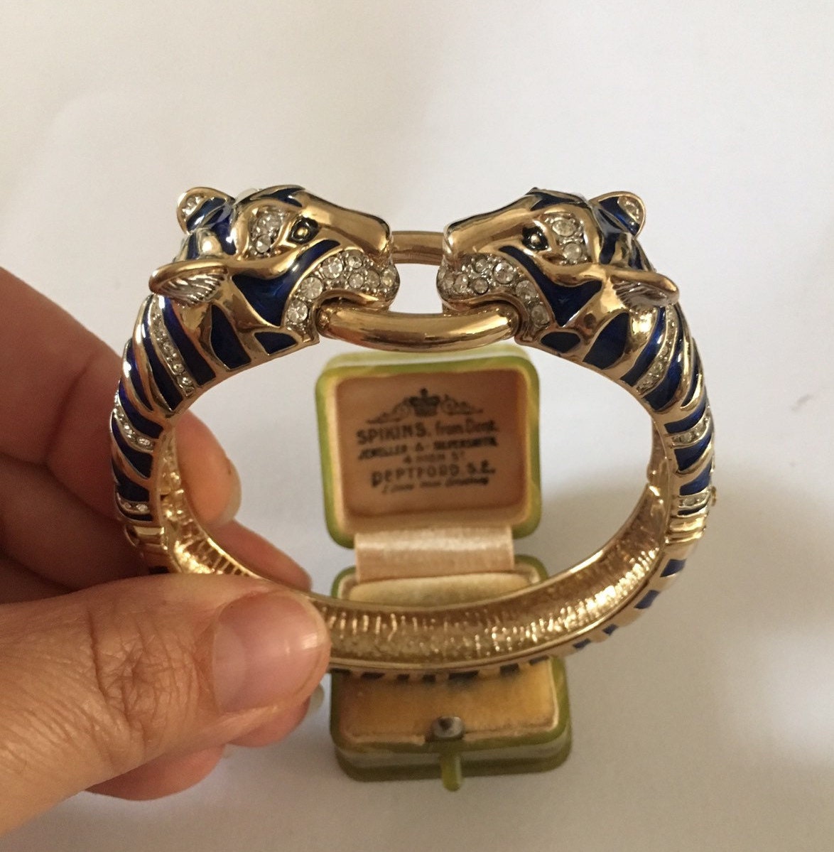I don't know where to start with this piece. Its utterly divine. Superb Vintage Panther Costume bracelet with Exquisite Rhinestones and Crystals with breath taking Enamelled craftsman ship. Great detail in the face with lovely movement and design. The Quality is wonderful. Extremely rare one in a million piece.