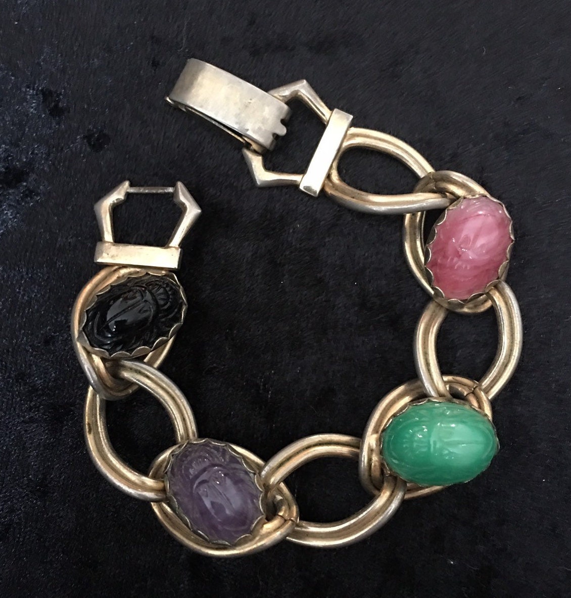 This item will not be shipped until 5th November, sorry for the delay. Thank you very much.Vintage Egyptian Scarab Bracelet, Vintage Scarab Bracelet, Scarab Jewellery, Egyptian Revival Jewellery, Scarab Bracelet, exquisite design
