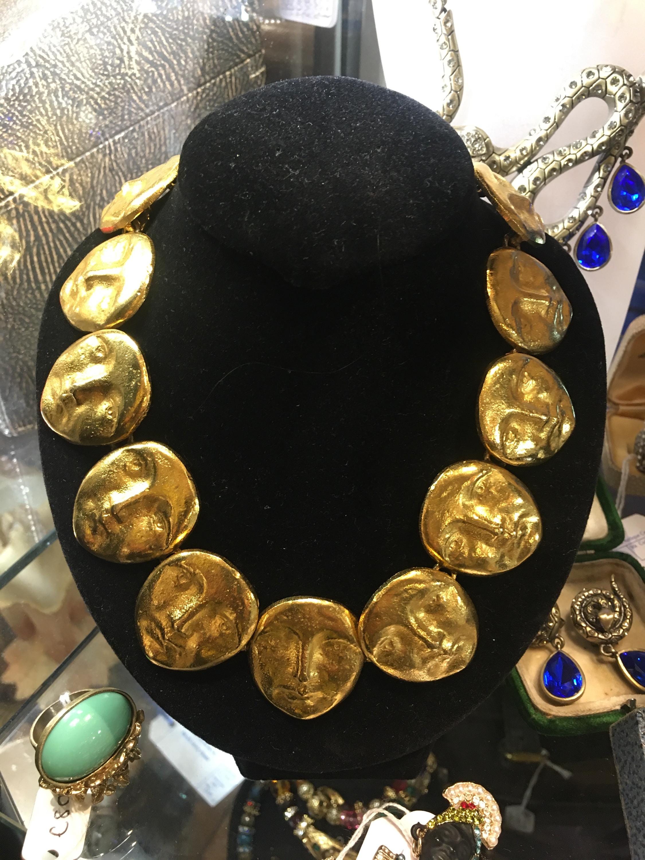 A magnificent vintage rare face statement necklace / choker with divine stylised face design. The face's are fantastic. This is an exceptional statement piece with breath taking quality and craftsmanship. A very rare one in a million period piece.