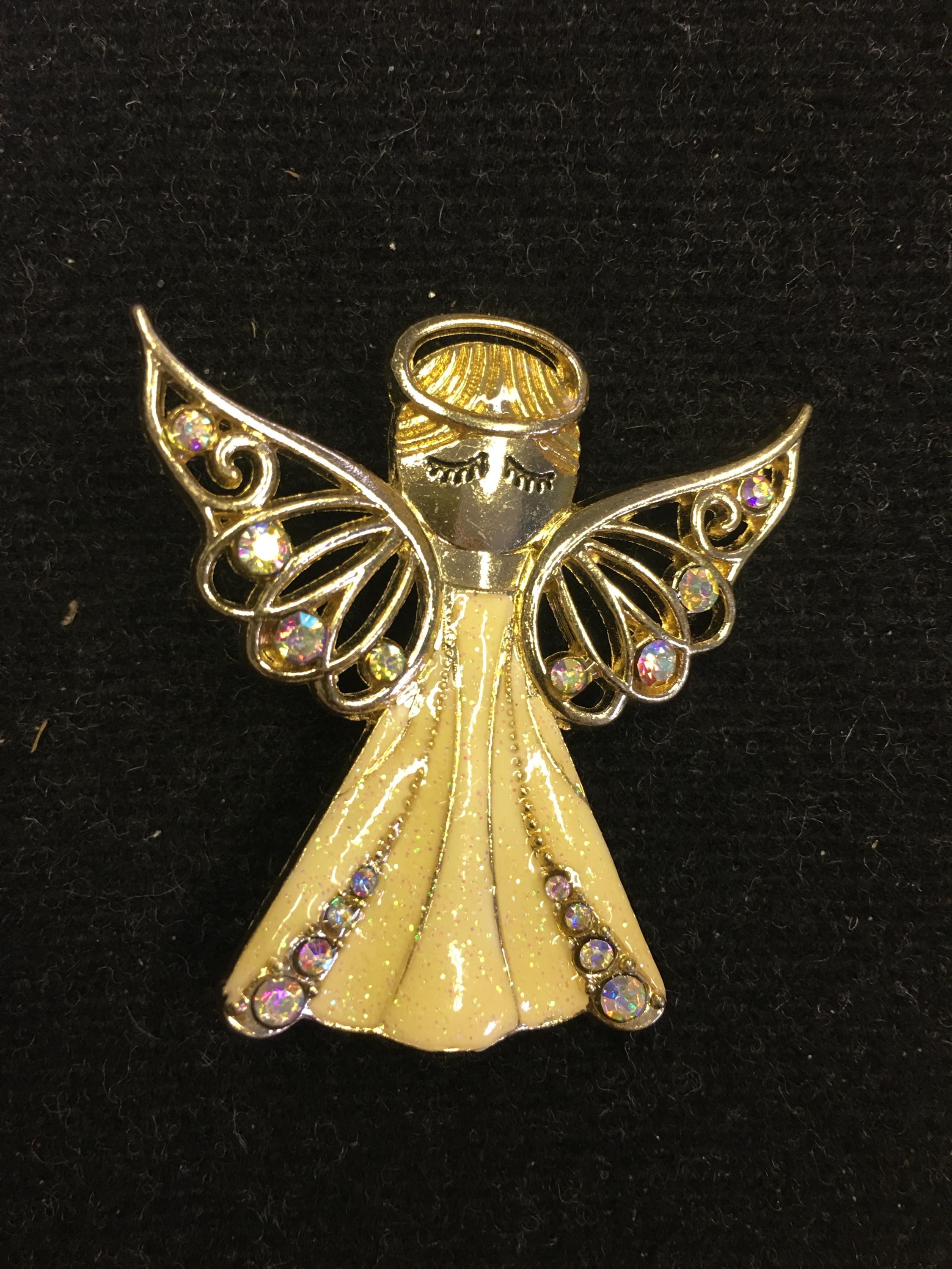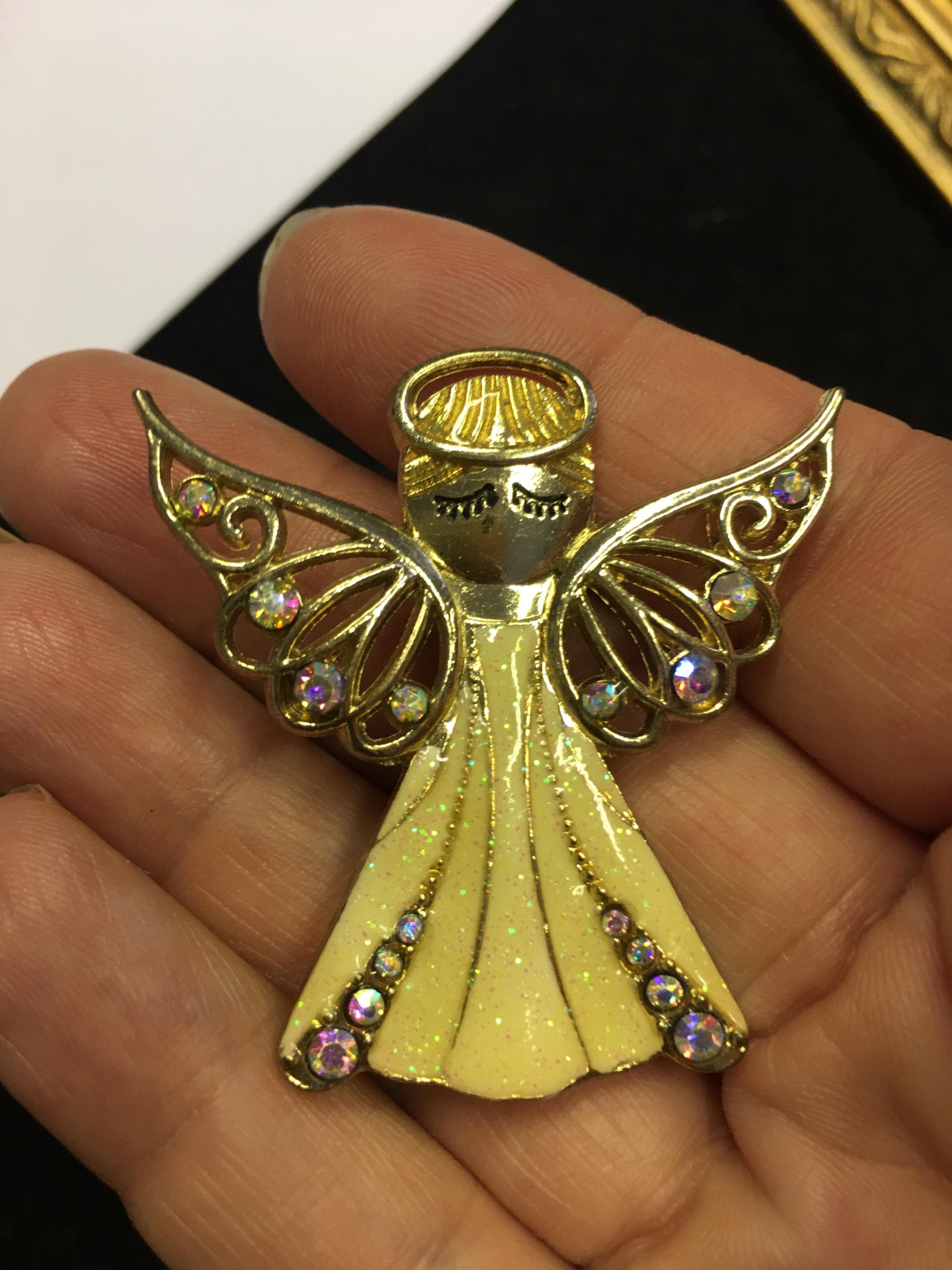 A fantastic Vintage Angel Winged brooch with beautiful craftsman ship and design adorned with exquisite rhinestone detail. A very rare brooch. Looks wonderful on.