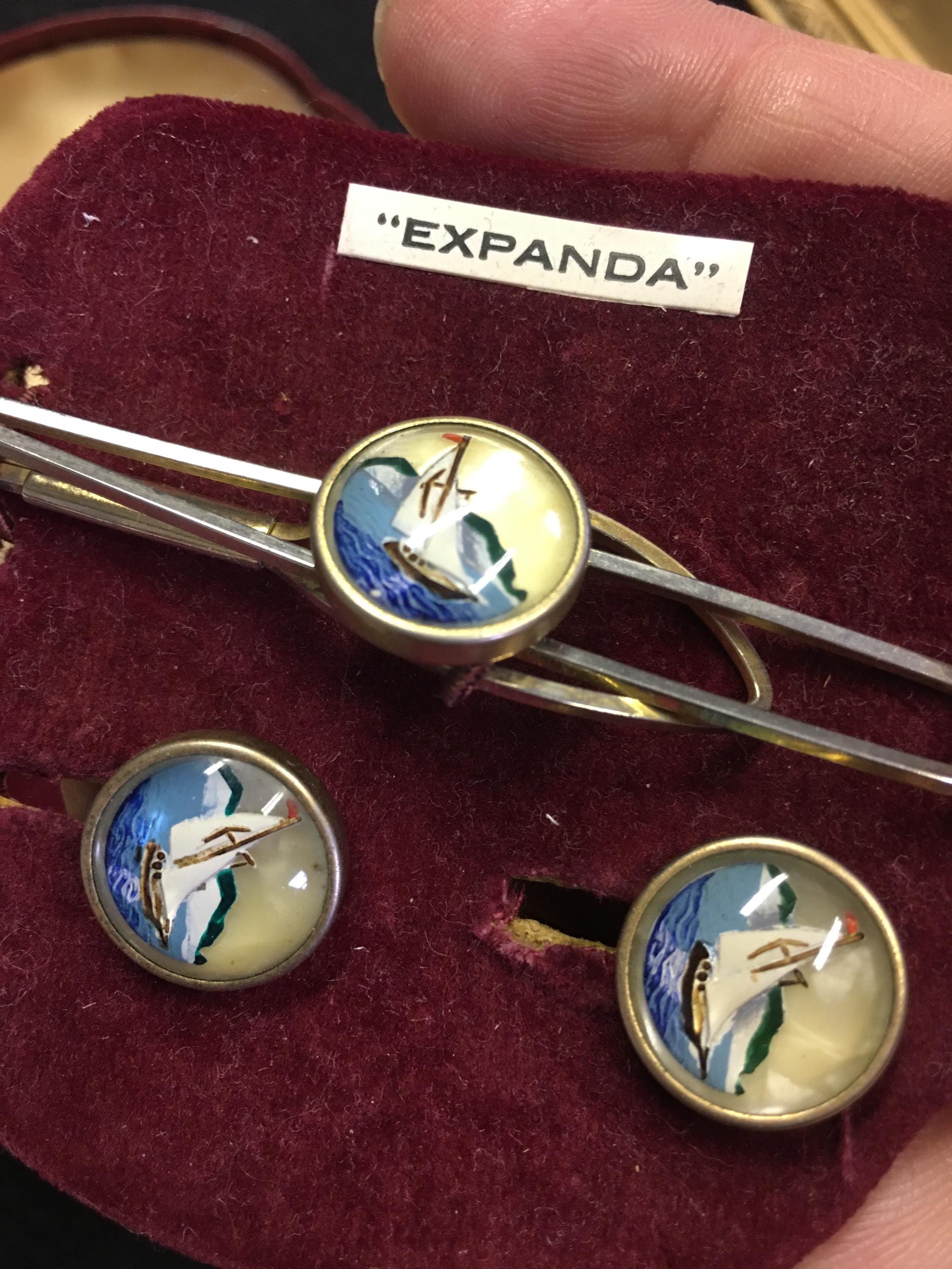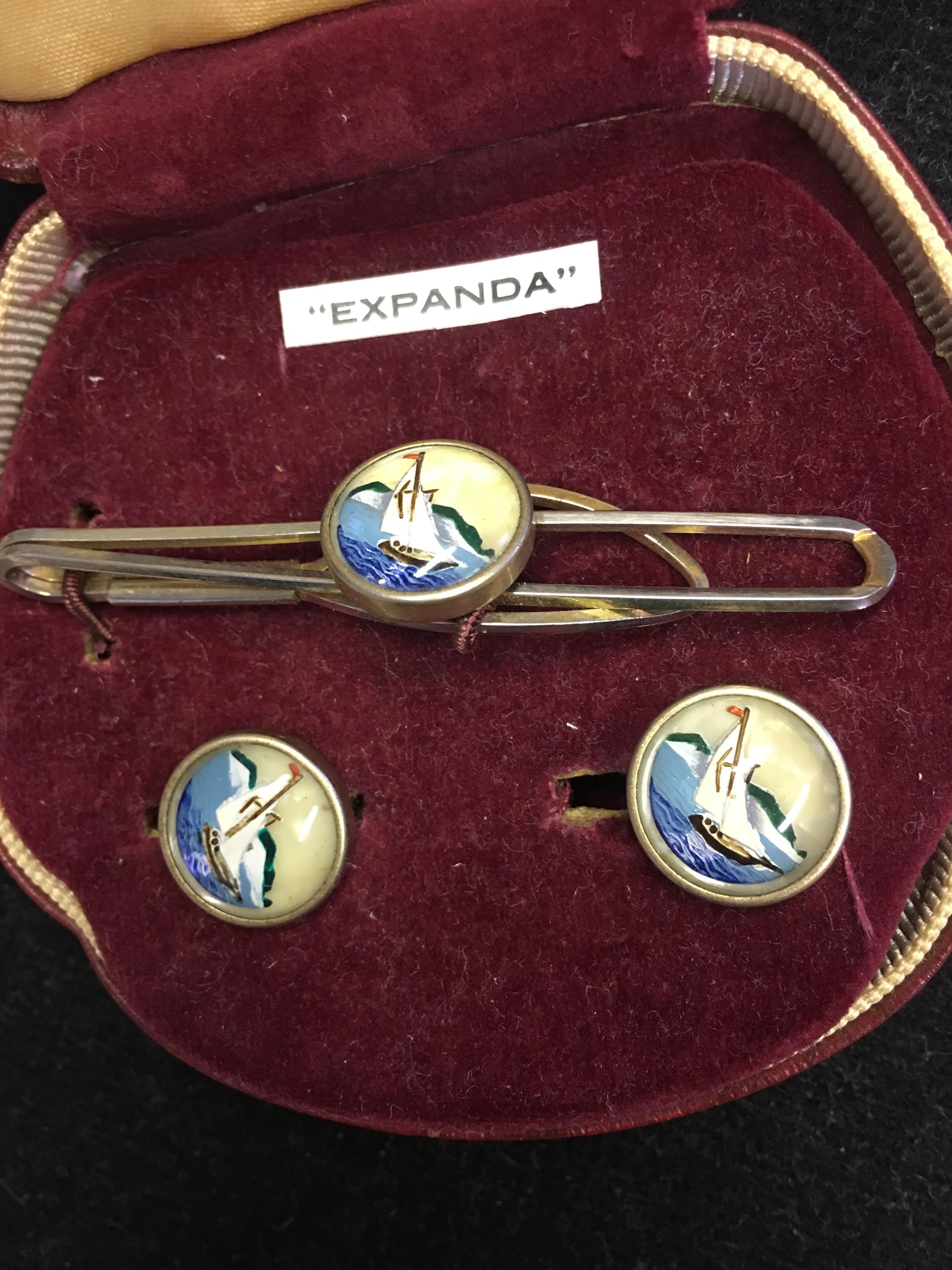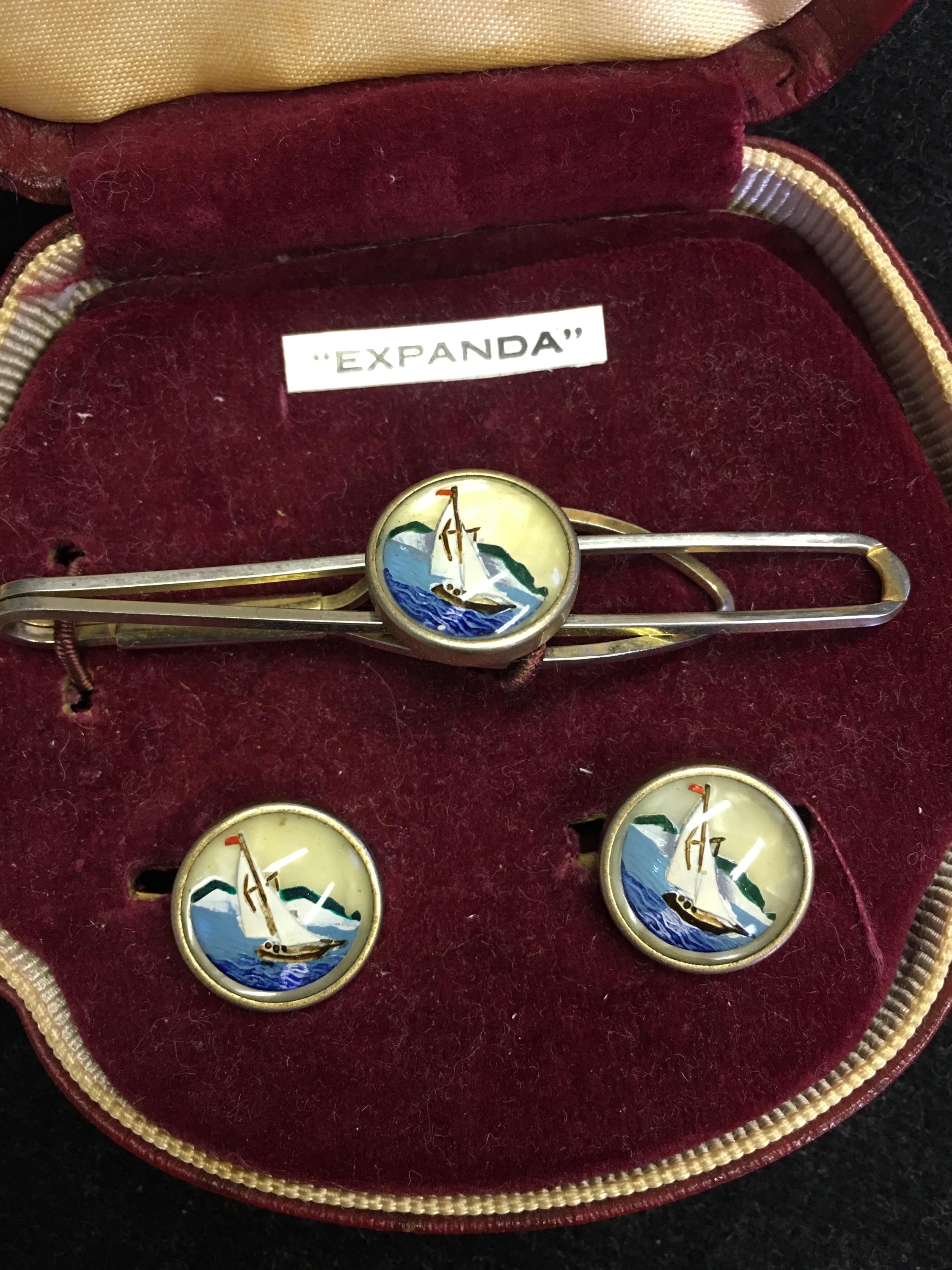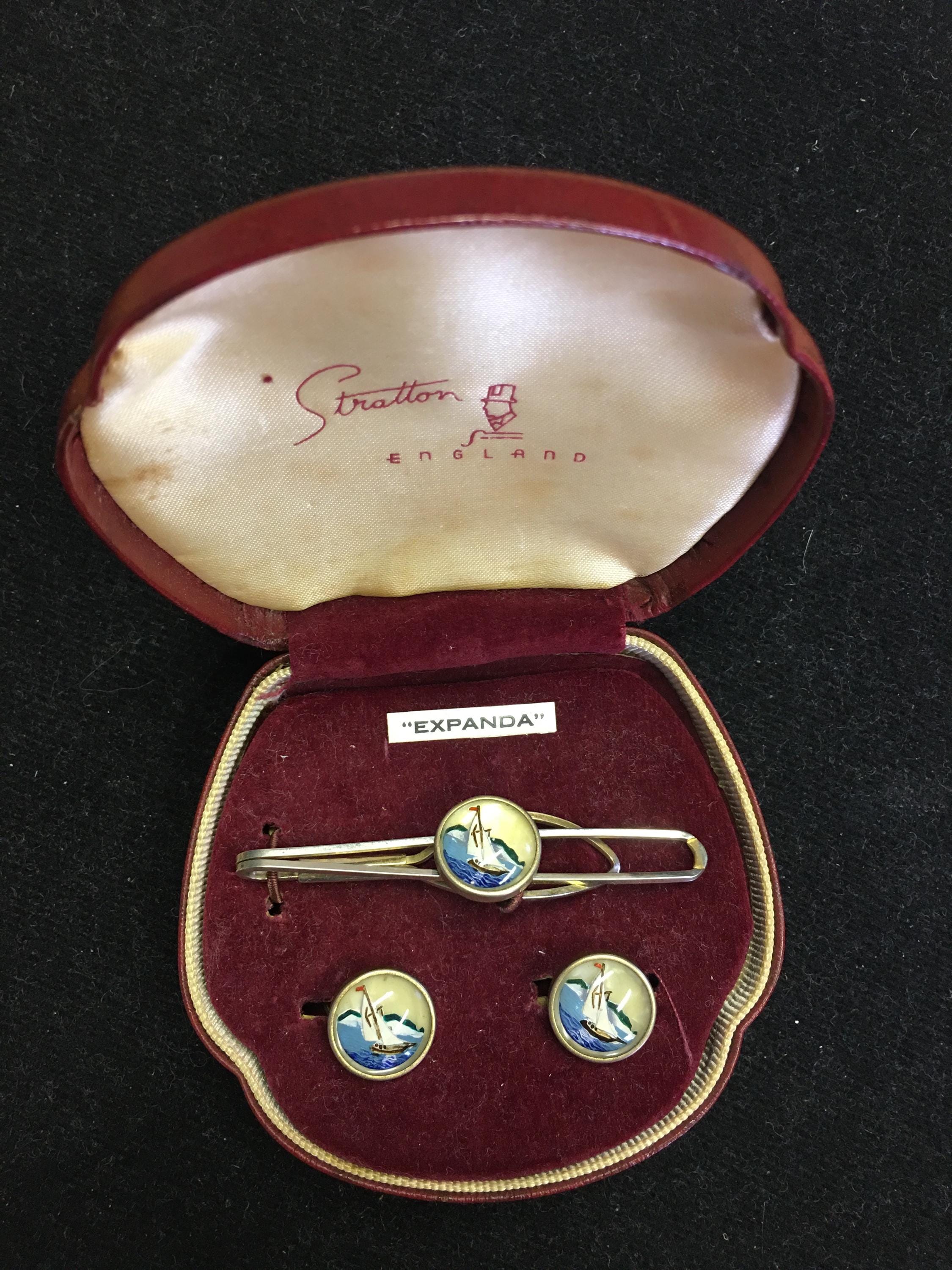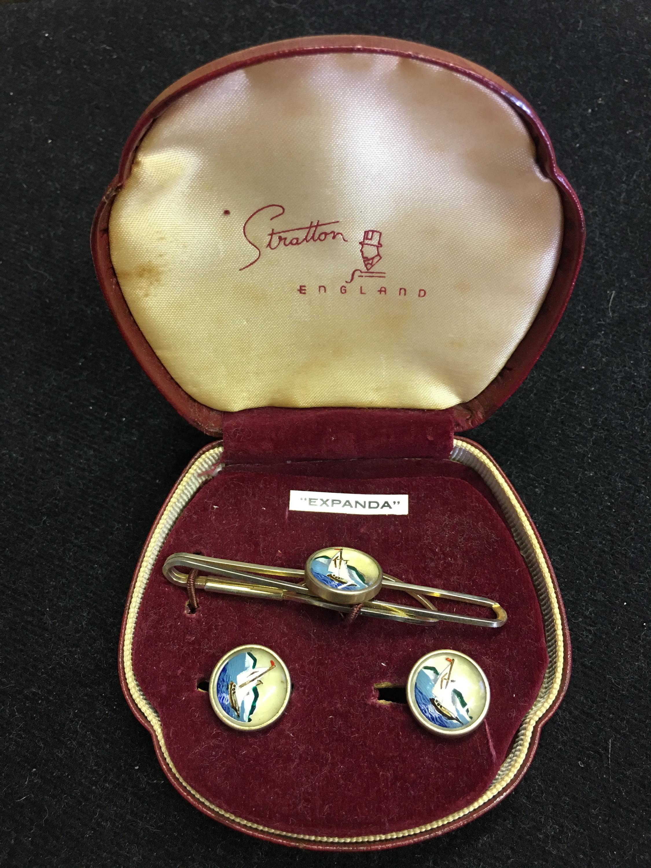 Charming vintage cufflink and Tie clip Set by the very collectible Stratton. Divine quality. A fantastic gentleman’s accessory. Would be great for a sporting event. Very rare collectors piece. Original box included. Ideal for a Gift.