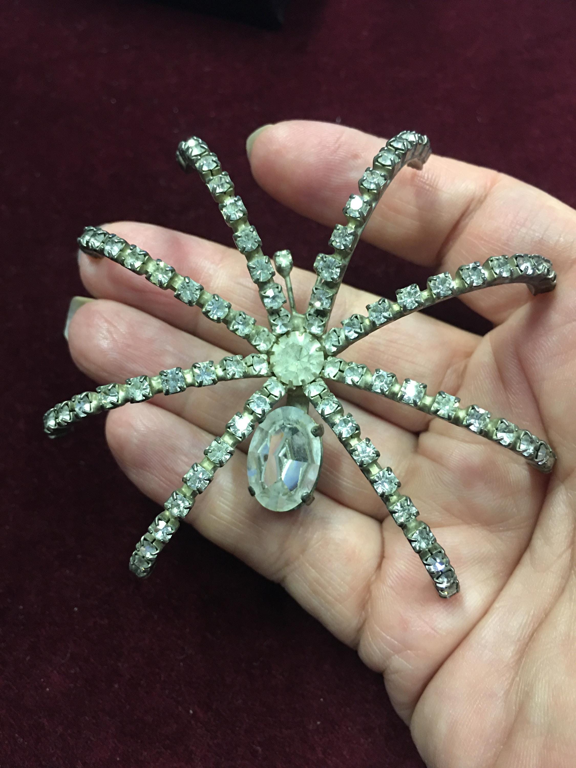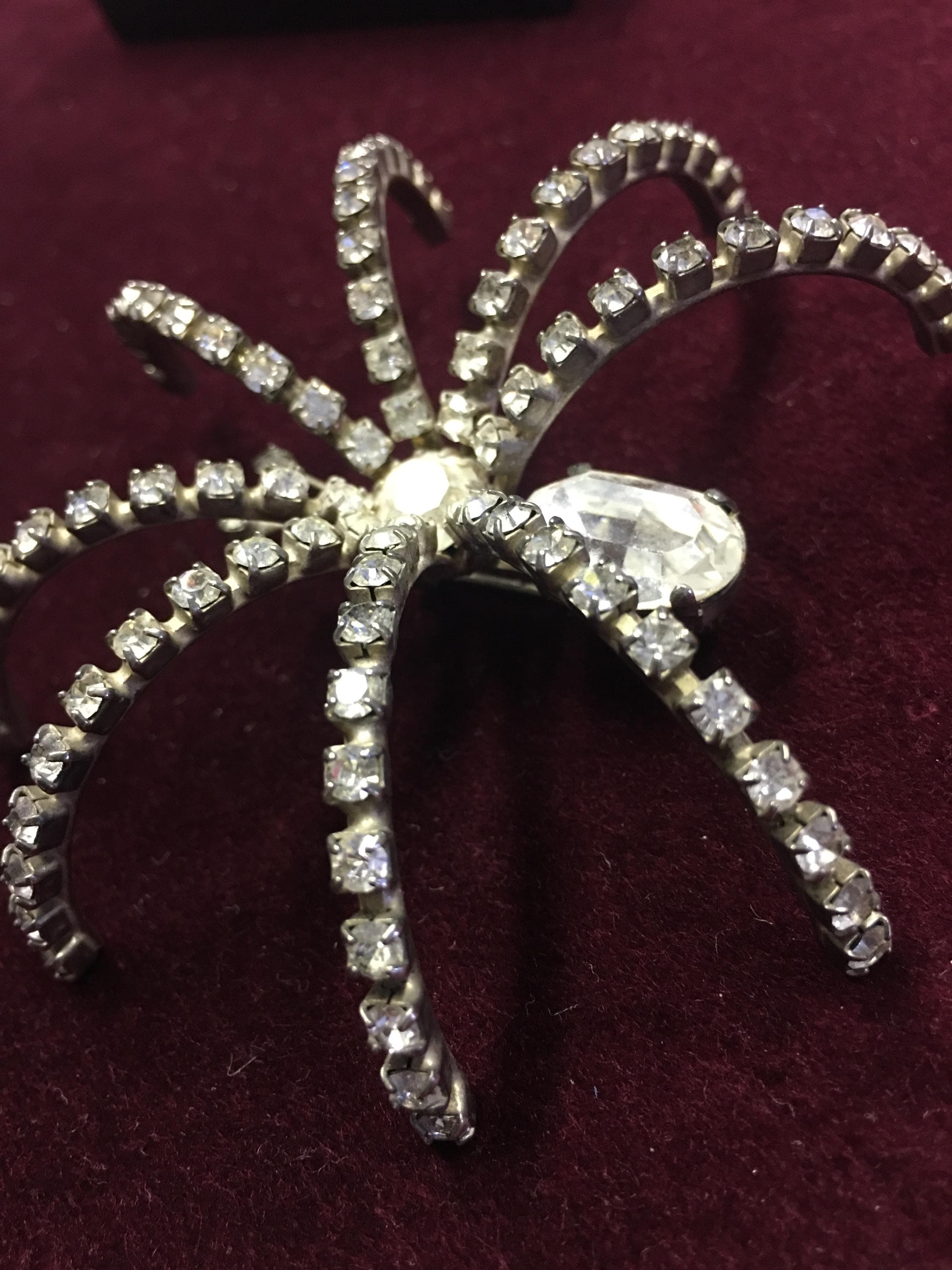 A fabulous rare vintage spider brooch with divine quirky design. Date c 1950's. Love this!!a very rare one in million statement piece.