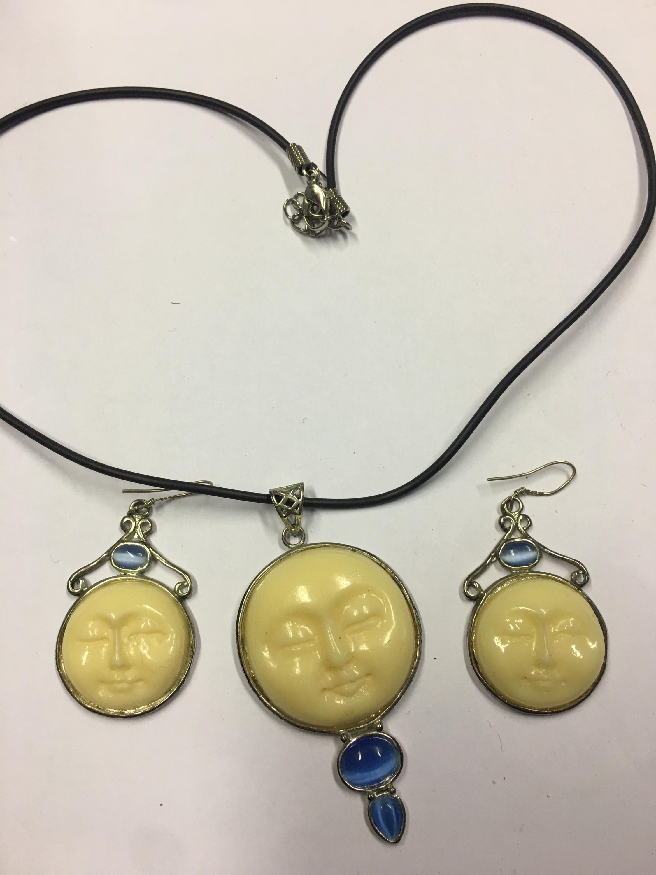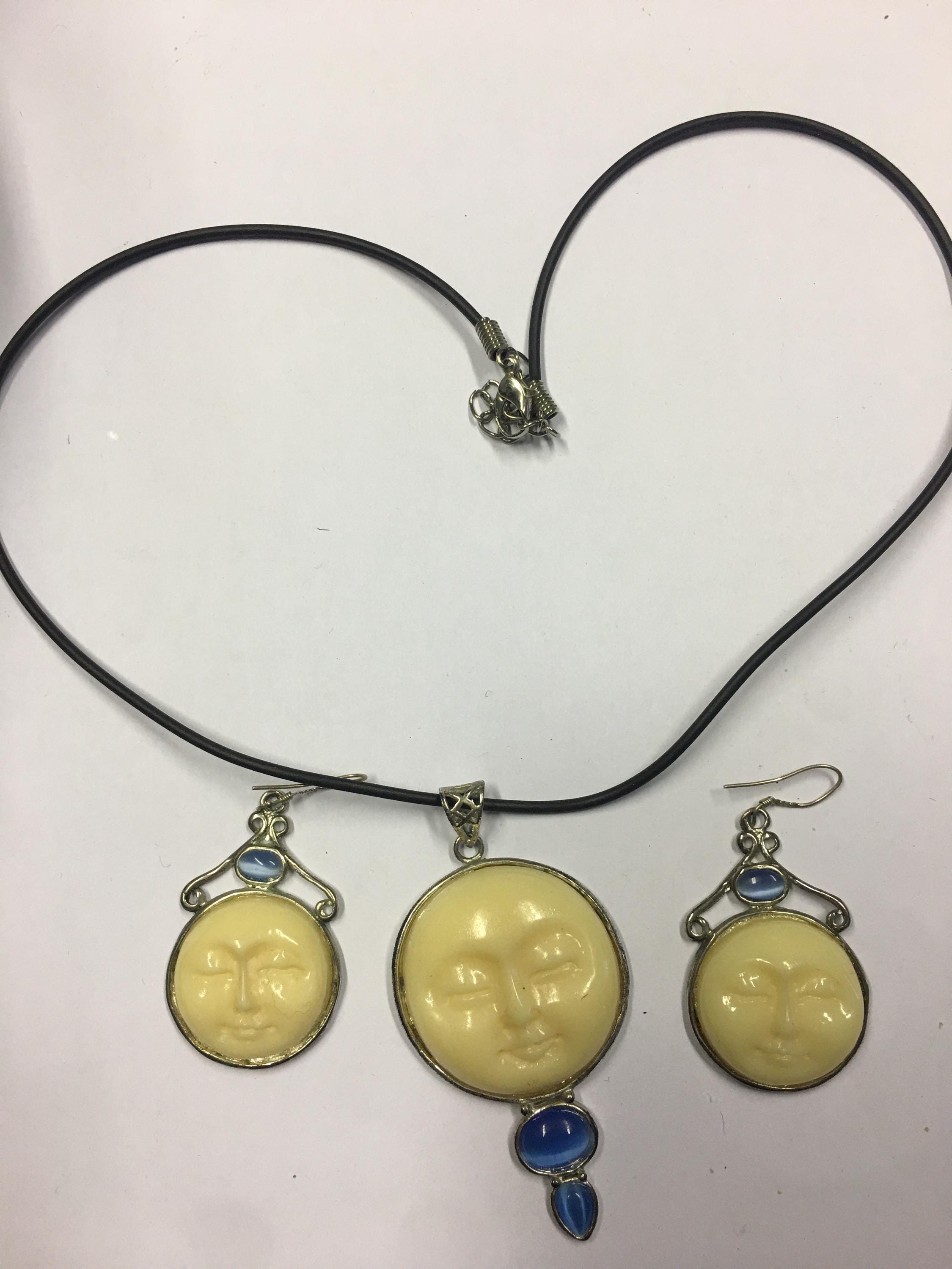 A wonderful Man in the Moon jewellery set with delightful necklace and earrings with exquisite design and divine quality. Perfect for any celestial lover.
