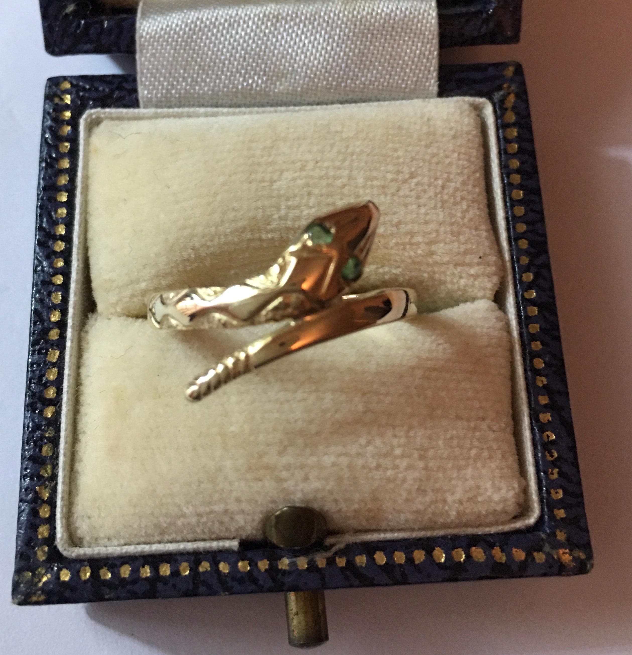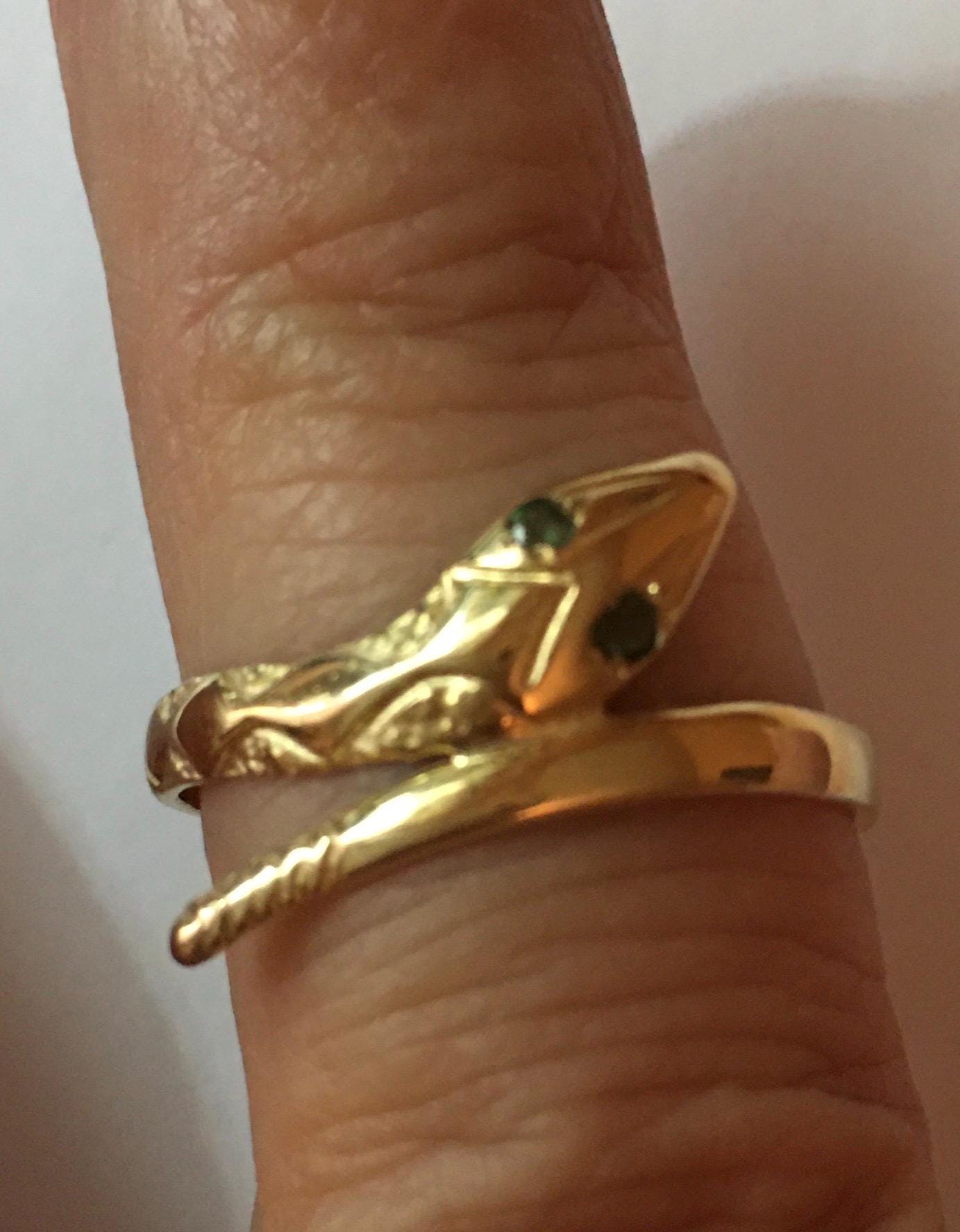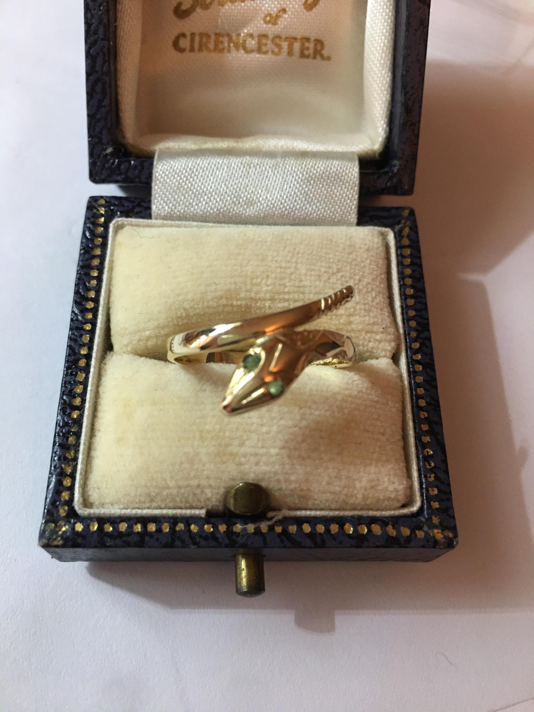 Vintage Gold Snake Ring, 9 Ct Snake Ring, 9 Carat Gold and Emerald Snake Ring, Snake Jewellery, Snake Ring, exquisite rare ring.