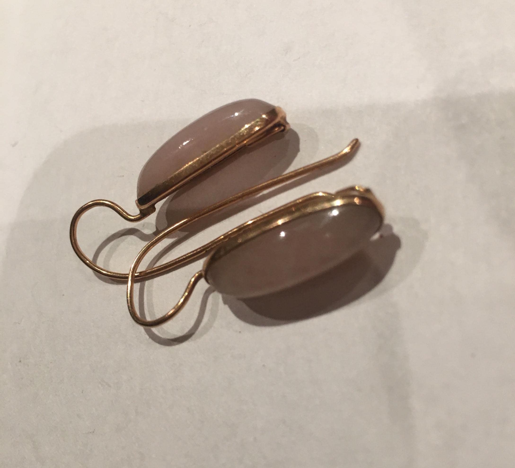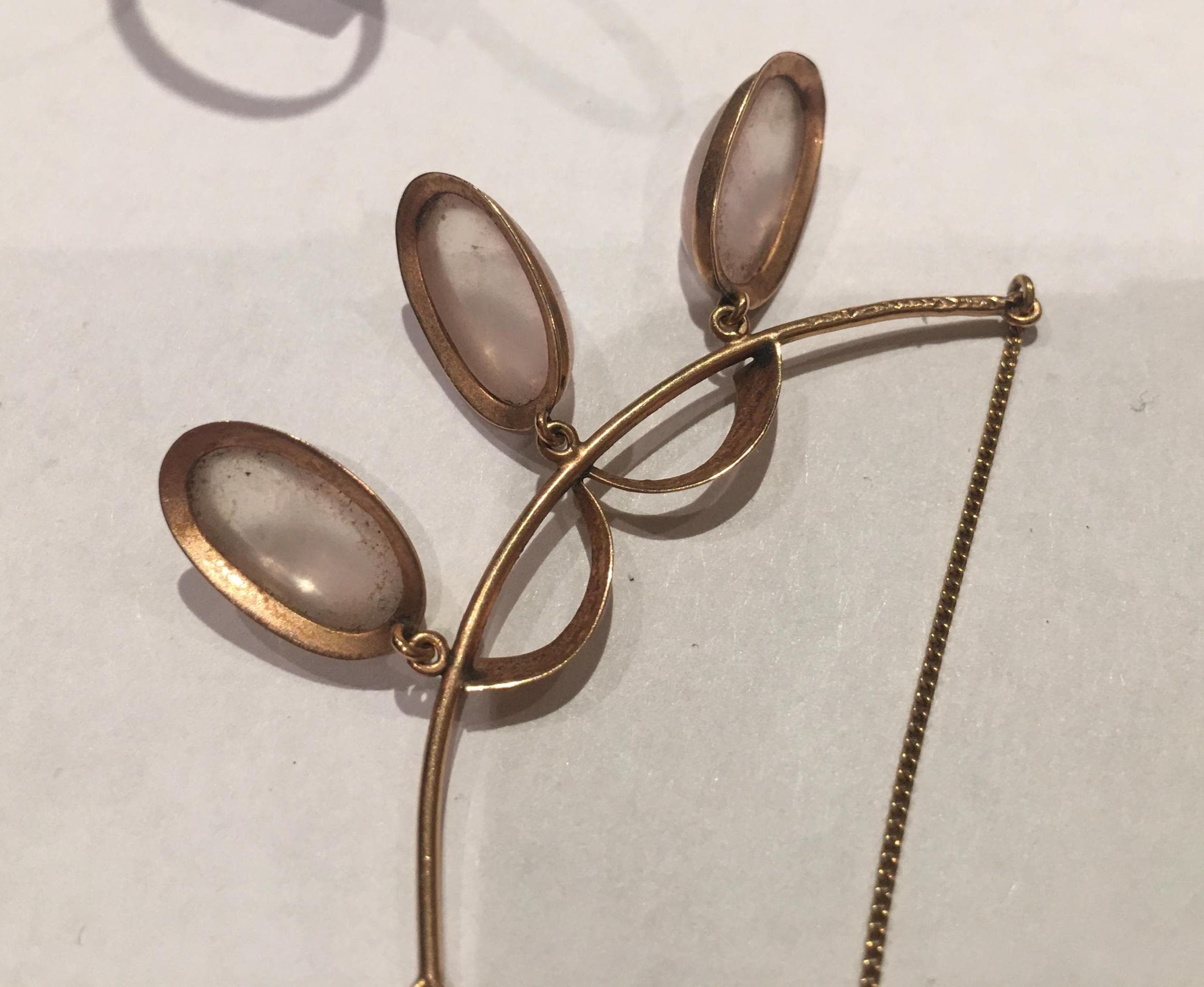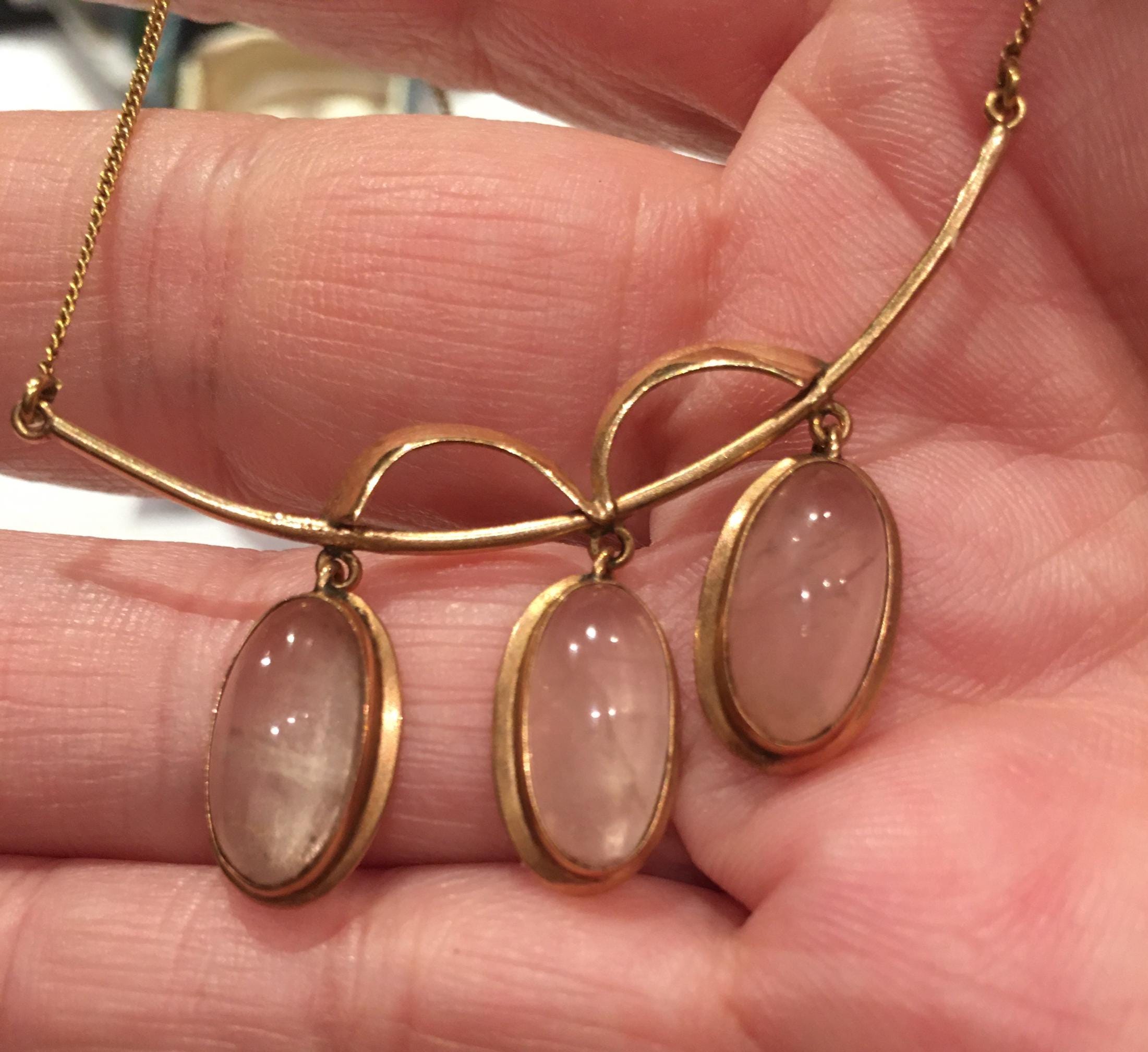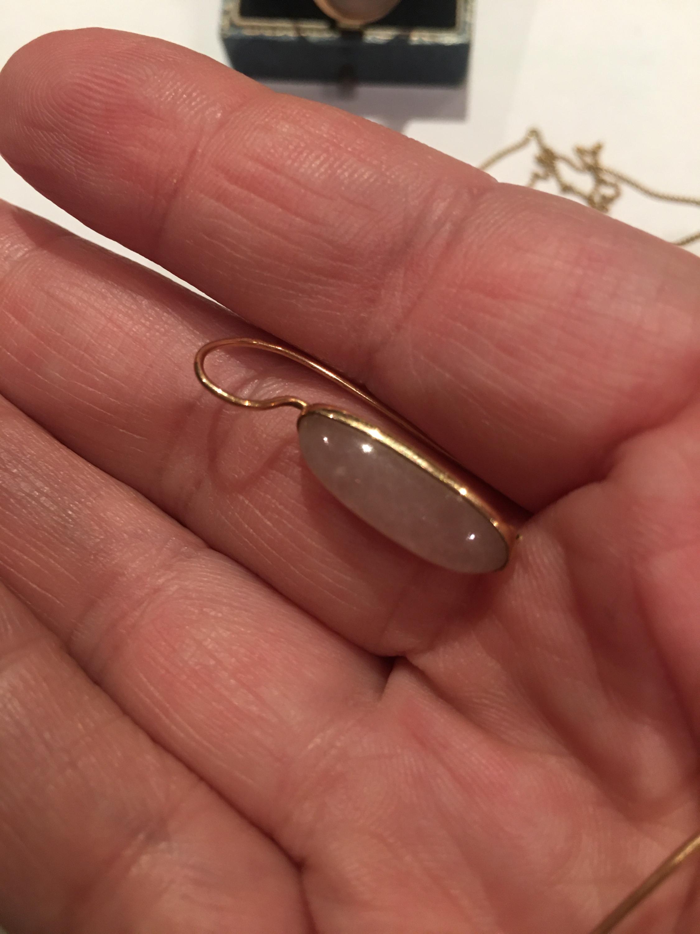 A marvellous rare vintage 14ct gold jewellery set featuring beautiful rose quartz stones. The set includes a necklace, earrings, and a ring, all crafted in yellow gold with an exquisite colour hue from the rose quartz stones. Fully hallmarked date c 1950's. This set is very rare and would make a luxurious addition to any jewellery collection, perfect for special occasions or everyday wear for those who appreciate fine jewellery. Would be wonderful for a bridal set.