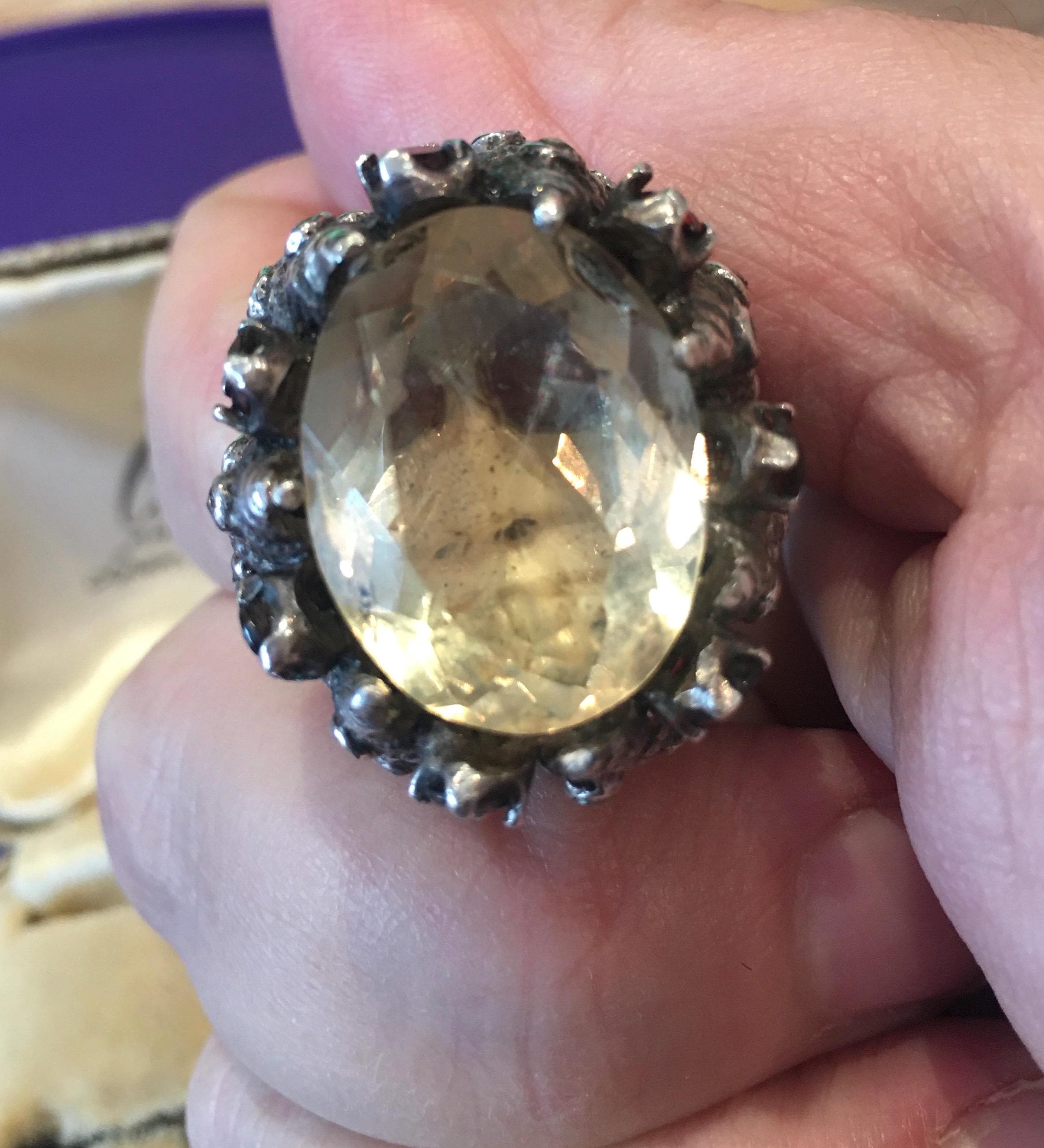A magnificent rare Vintage sterling silver Citrine and Garnet face ring with breath taking craftsmanship. There is a cool face in the stone which is exquisite. Marked 925 The quality is sublime. Fantastic design piece. A very rare one in a million collector's piece. Love love love this.