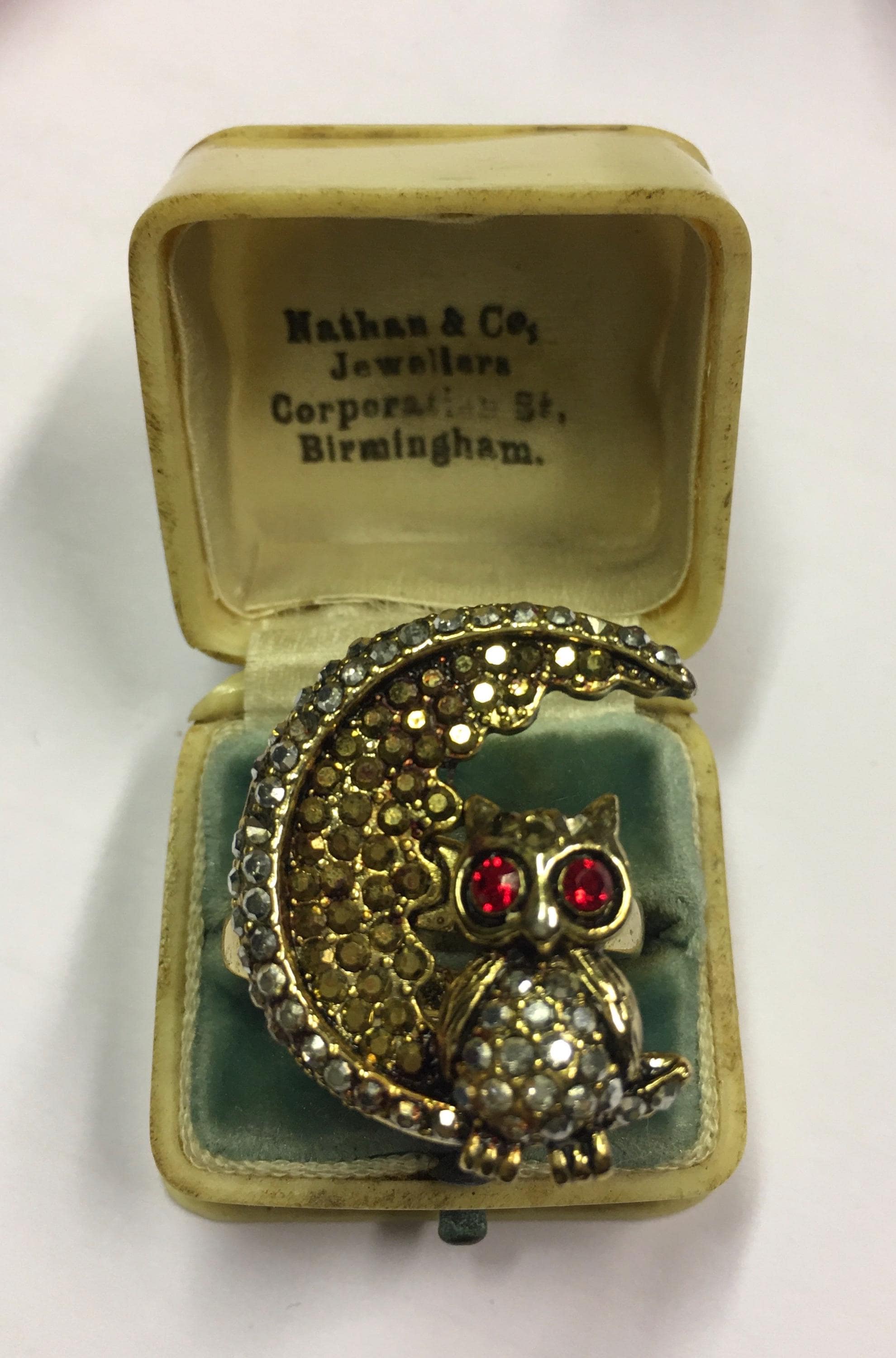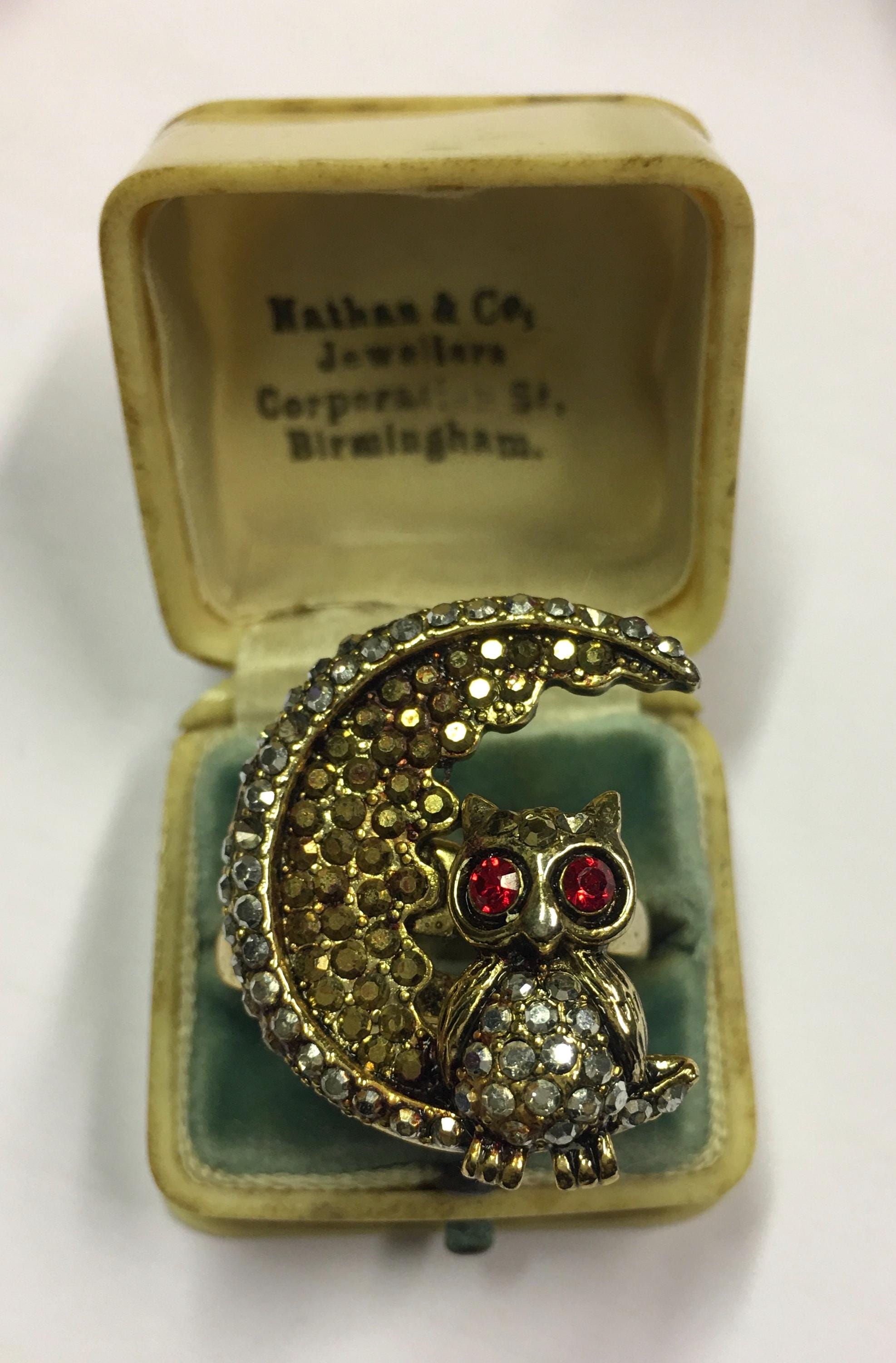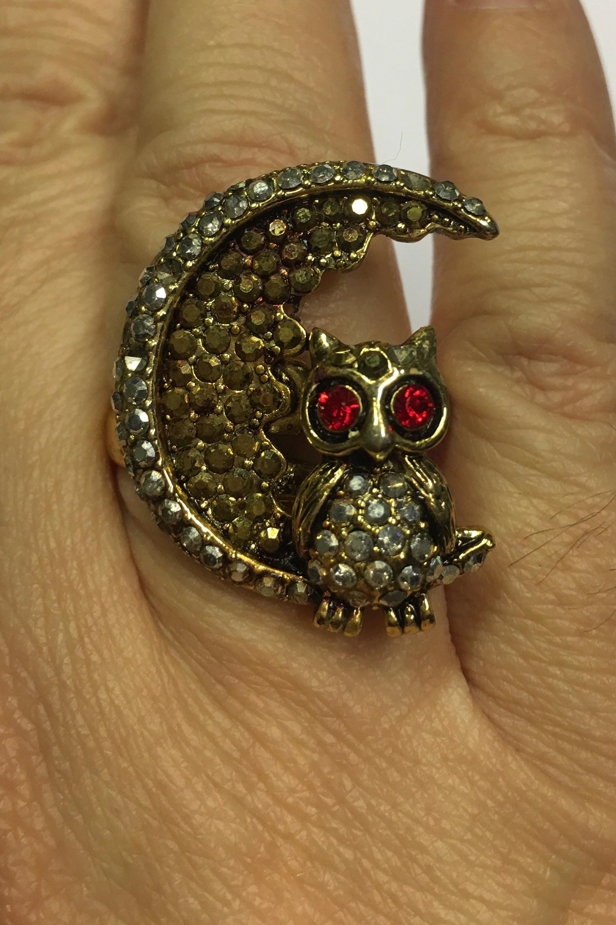 Fantastic vintage Owl and Moon Ring with beautiful design by the famous designer Butler and Wilson. Set with exquisite rhinestones with fantastic design and craftsmanship. Very rare collector's piece. Divine ring. Comes with original box shown