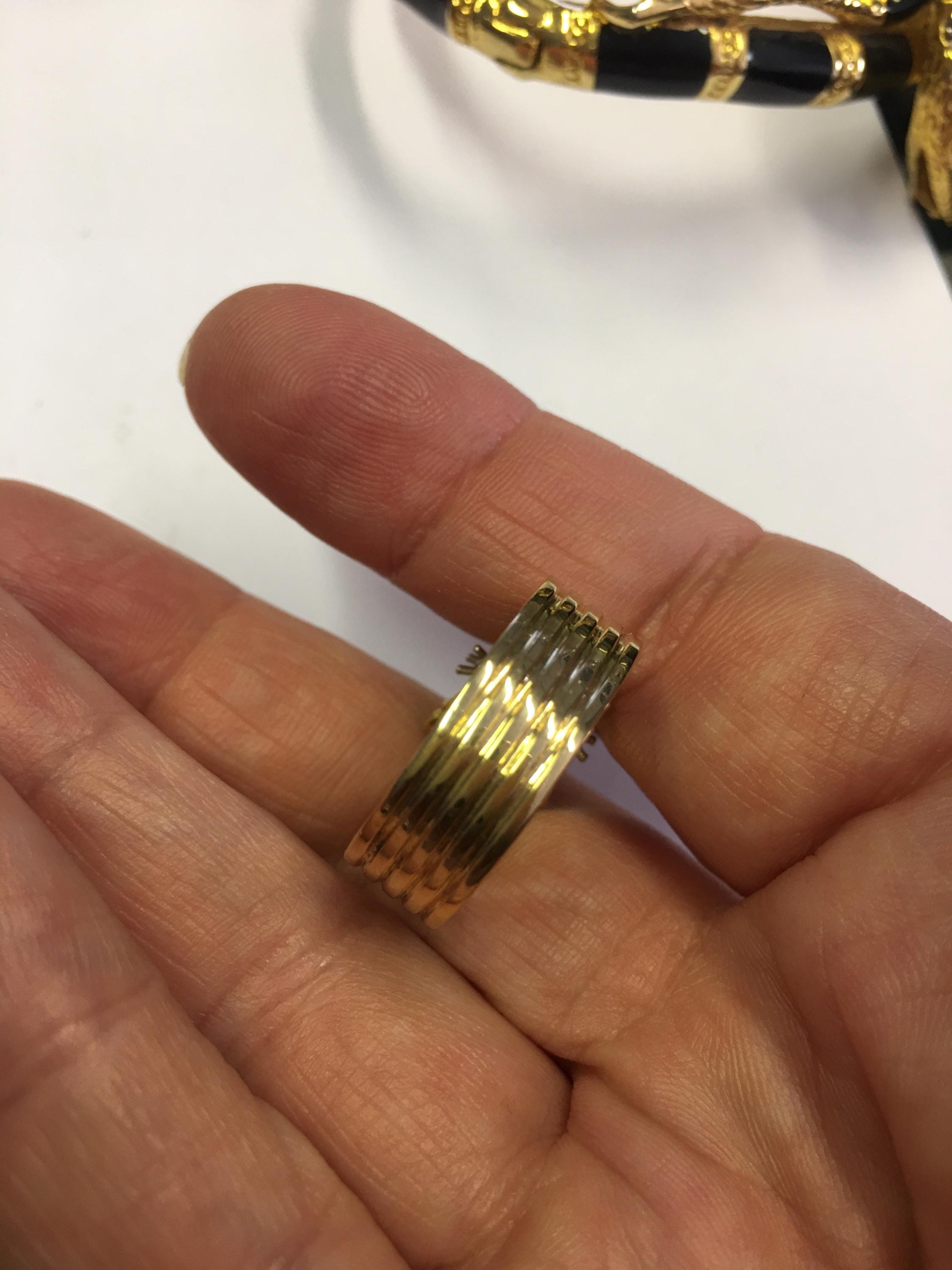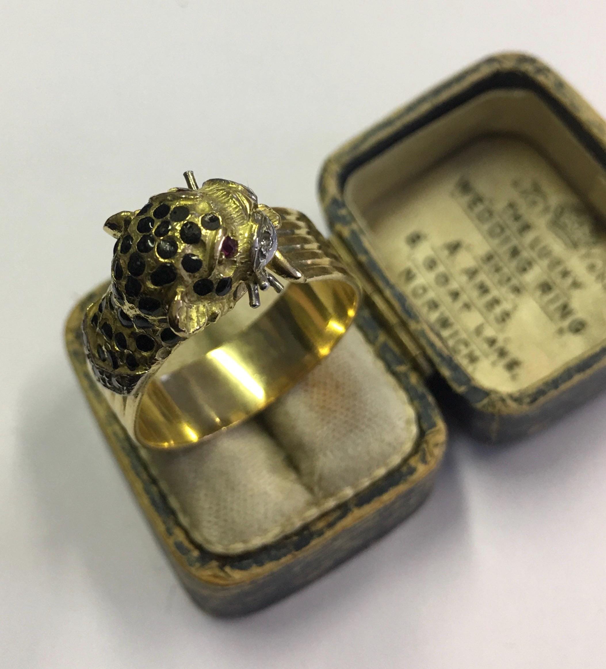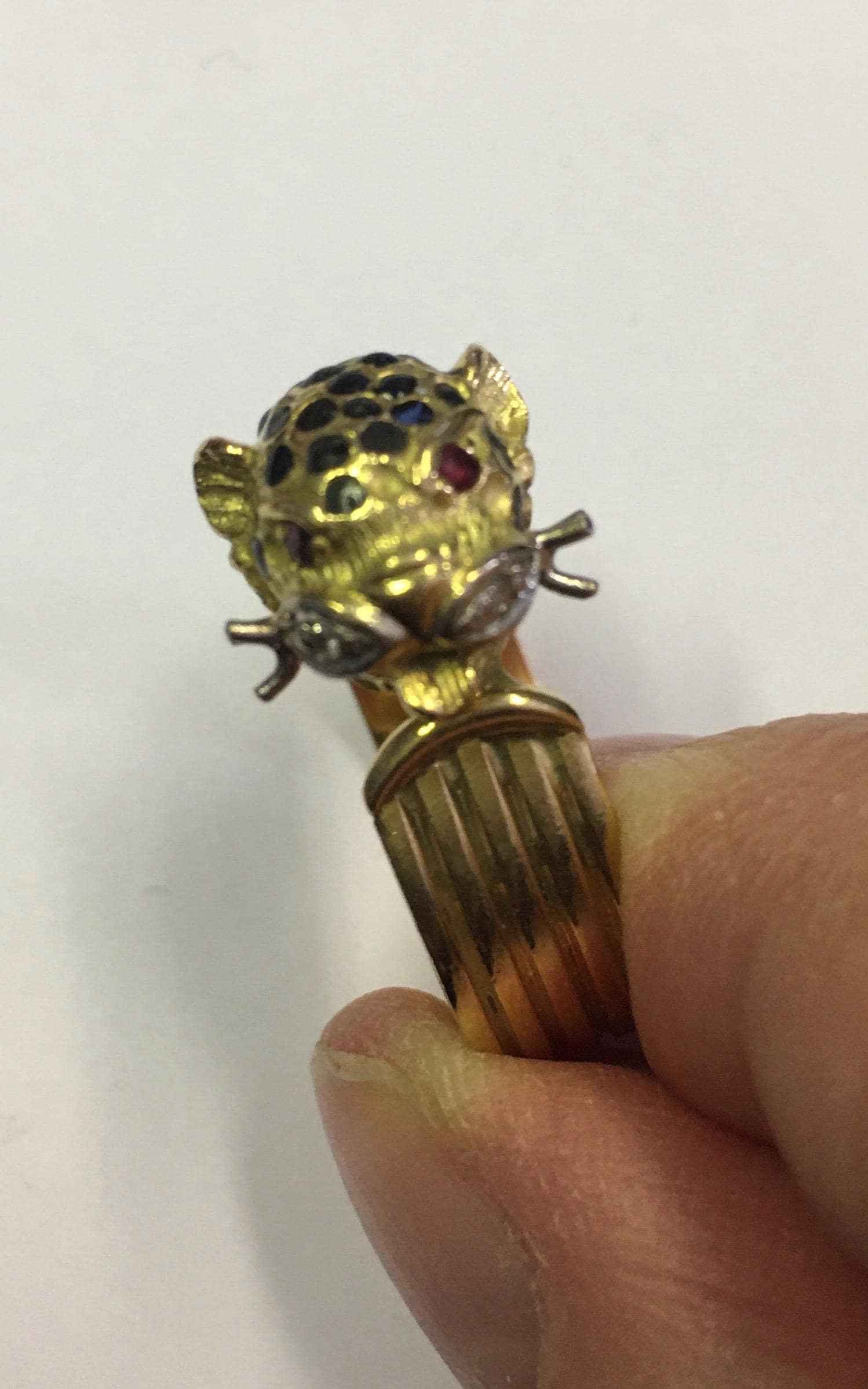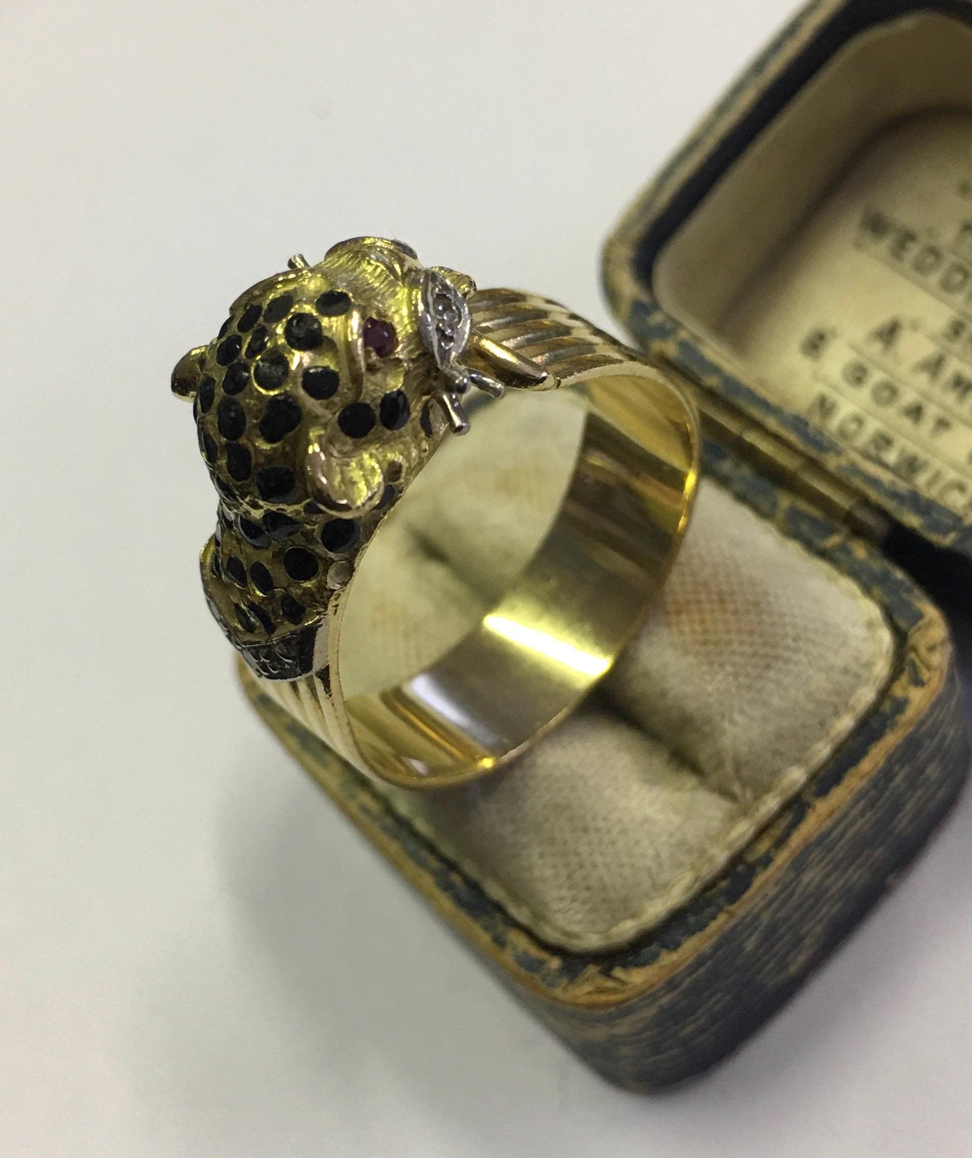 Superb vintage 18 Ct Gold delightful Panther ring adorned with exquisite Diamonds and Ruby eyes. Wonderful enamelled detail with lovely movement and design. The craftsman ship is breath taking. Very rare one in a million piece, looks divine on. Love love love this ring.