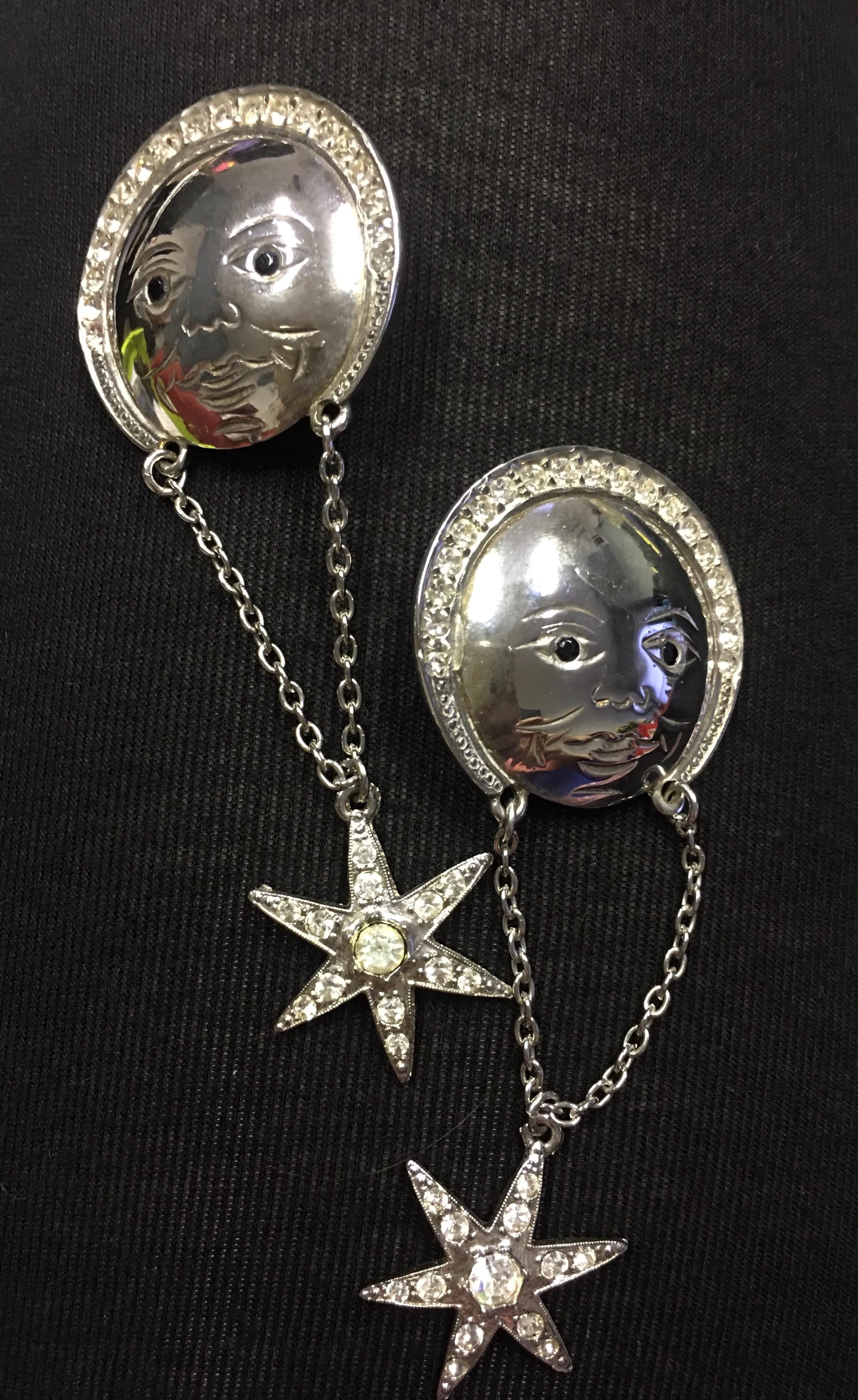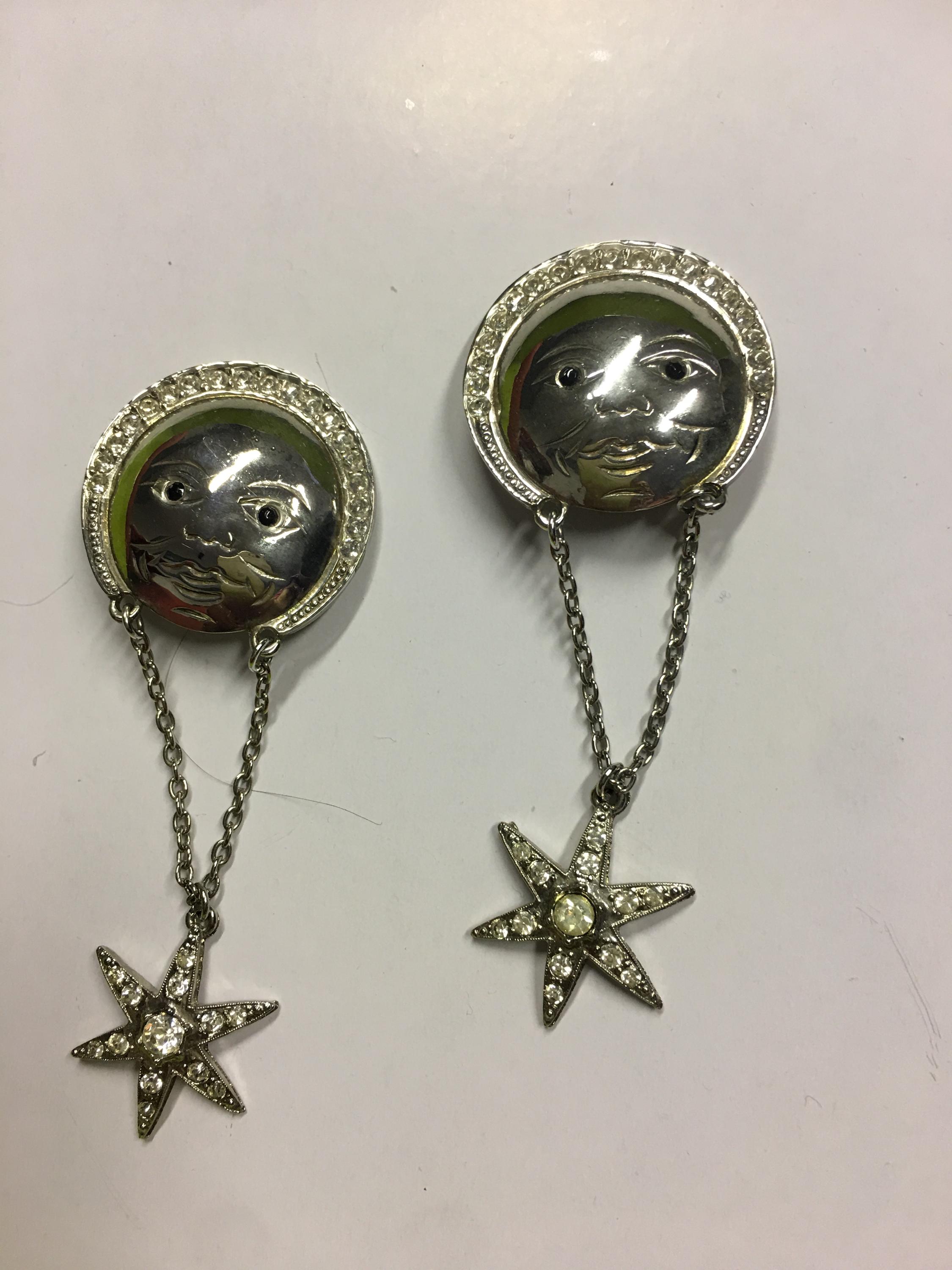 A marvellous pair of Vintage Man in the moon Butler and Wilson Earrings with exquisite design and craftmanship. Fully marked. Fabulous rare one in a million statement collector's piece. Love love love these! Perfect for any celestial lover.