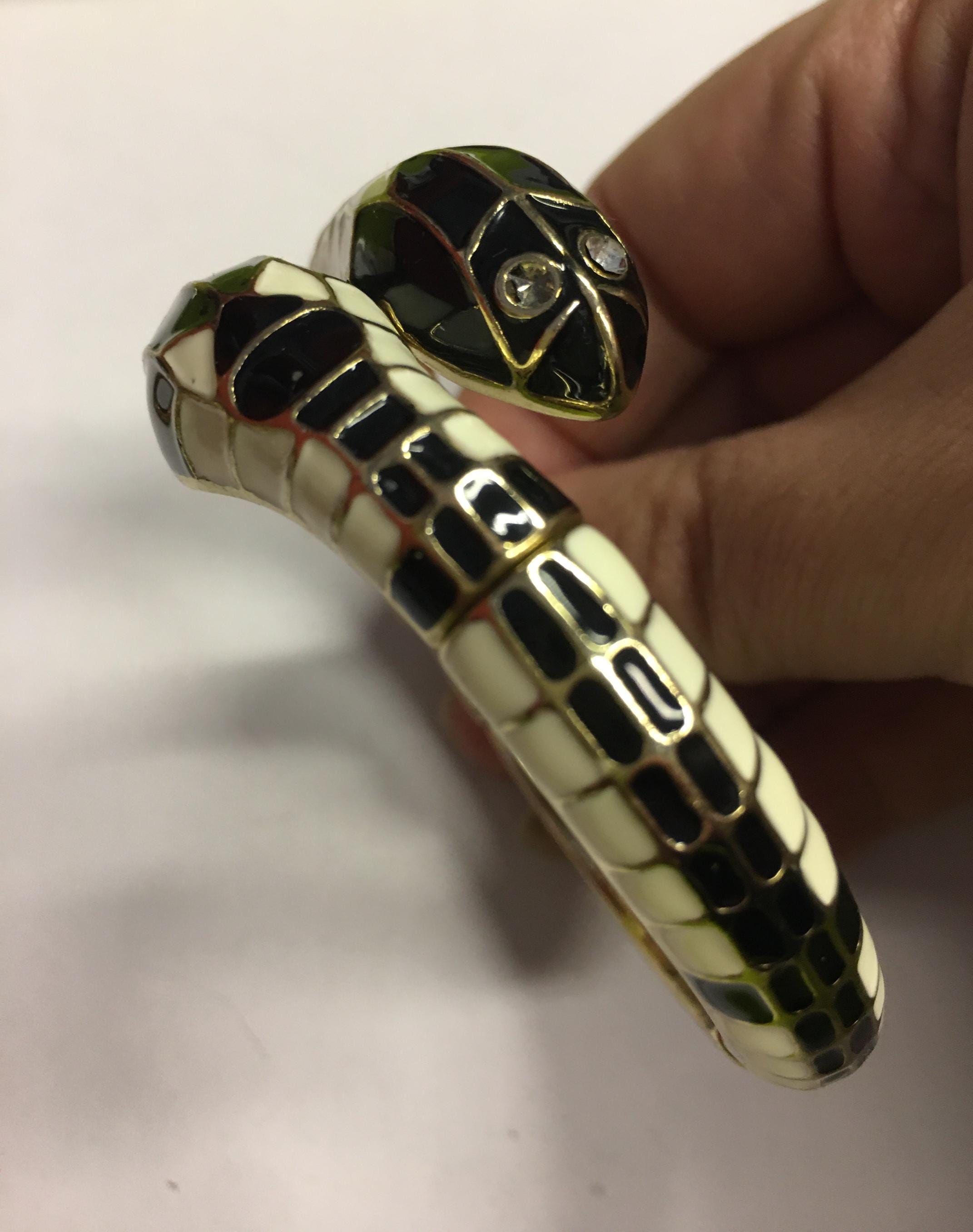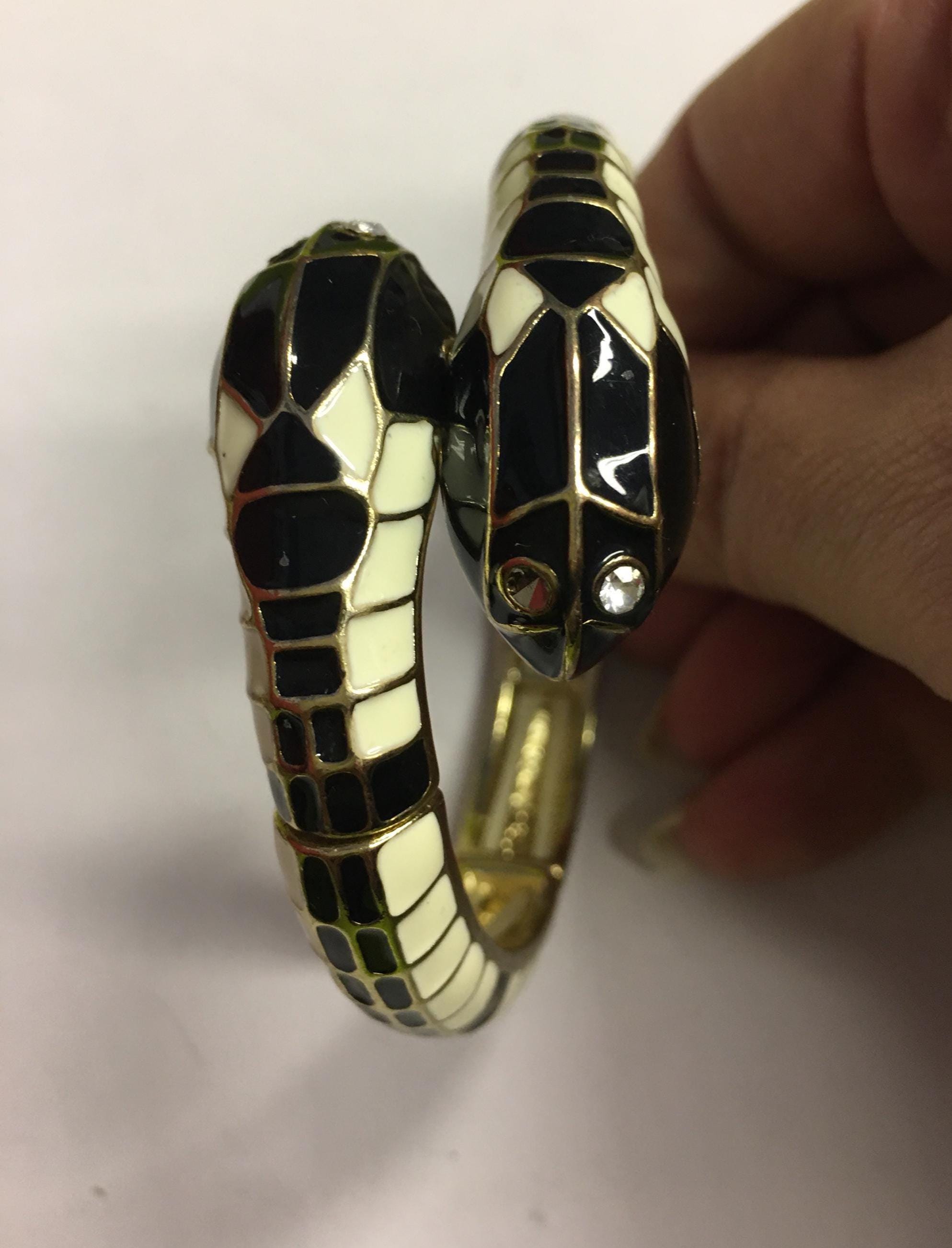 A fabulous rare Vintage Snake cuff bracelet/ bangle with beautiful enamel and Rhinestone detail and design. Striking rare design piece.