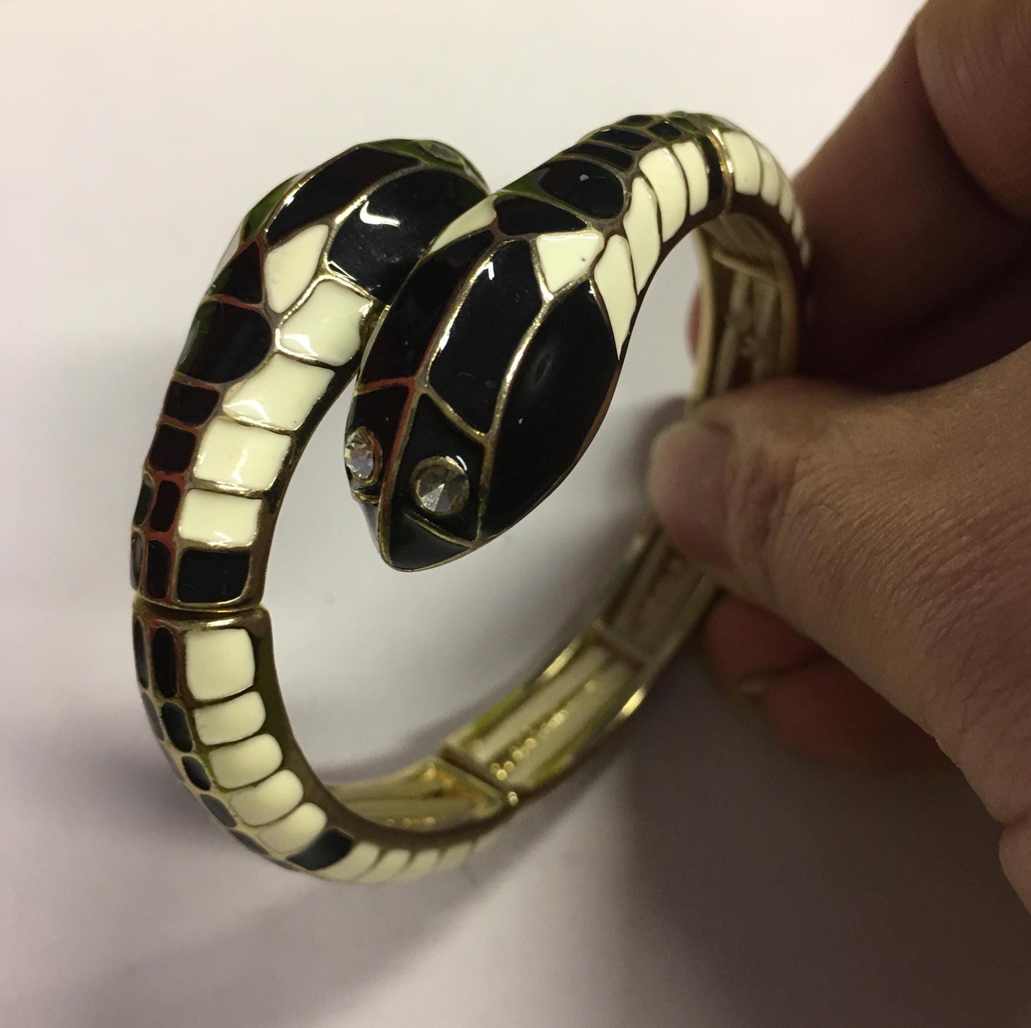 Snake Bracelet, Costume Snake Bracelet, Snake Jewellery, Vintage Snake Bangle, Black and Silver Bracelet, Vintage Snake Bangle.