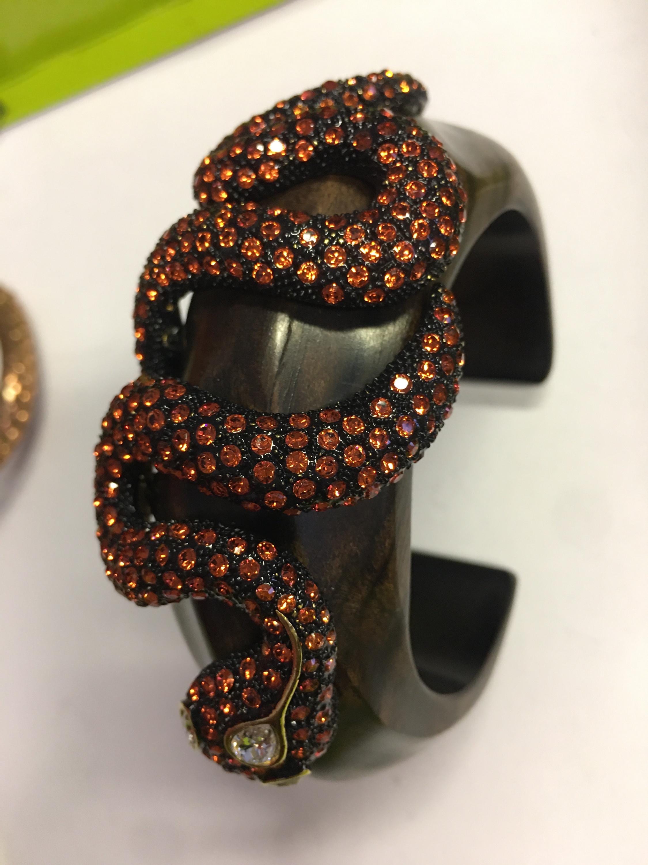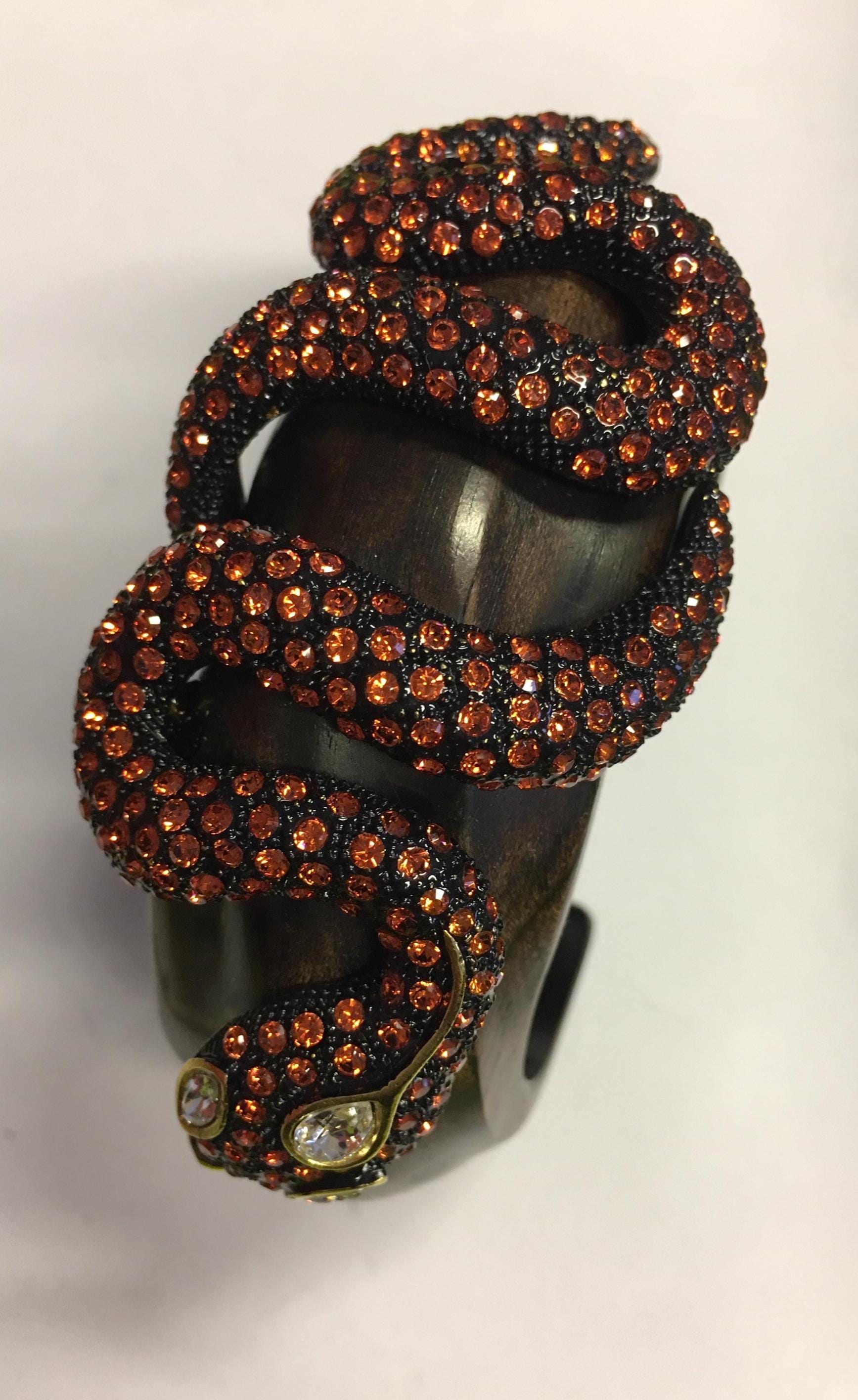 Vintage Snake cuff bracelet/ bangle with beautiful rhinestone detail and design. Striking very rare design piece.