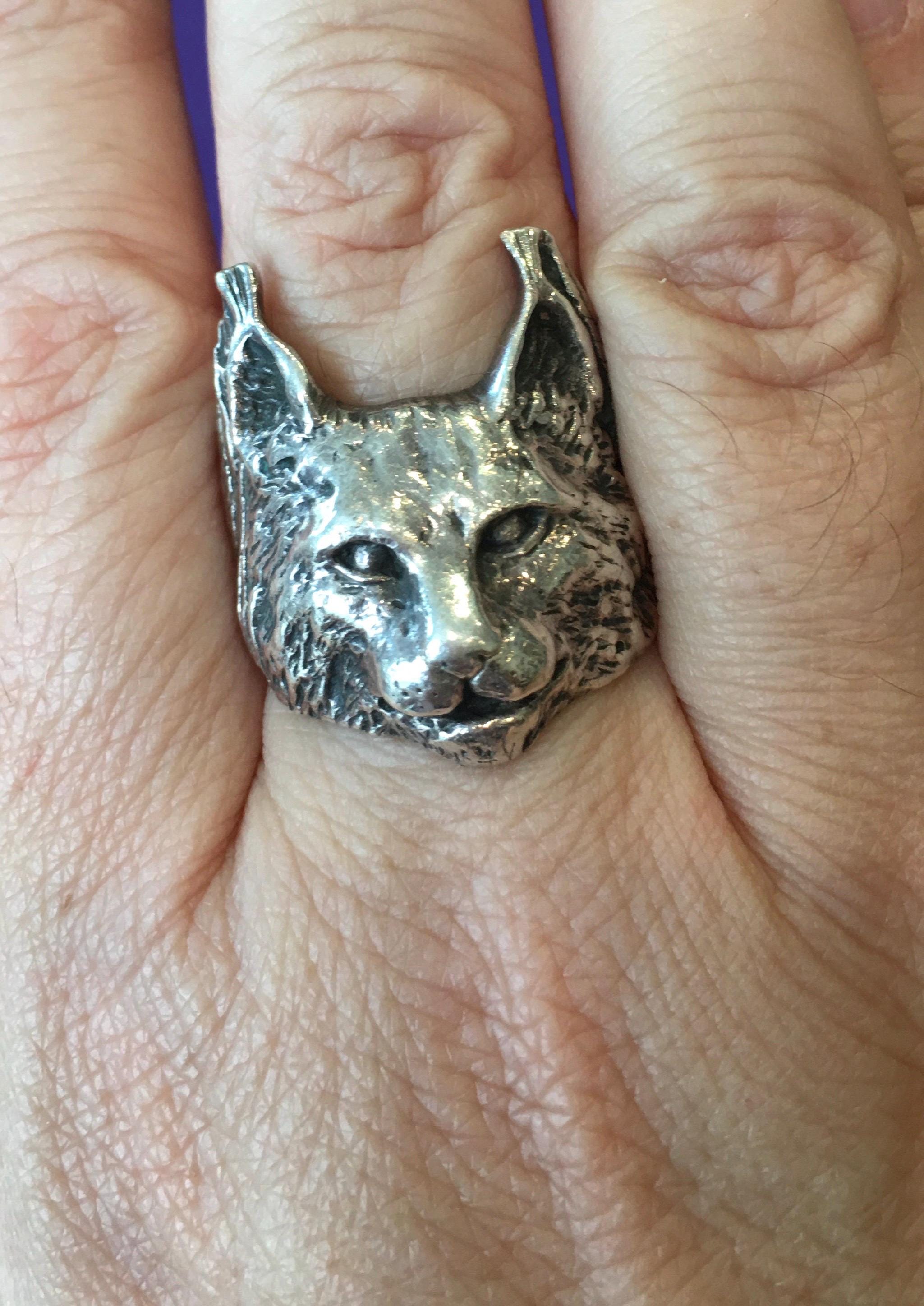 A fabulous rare Vintage Lynx sterling silver ring by the most famous Artisan designer Crazy Pig. Fully marked. The design is breath taking. Love love love!
