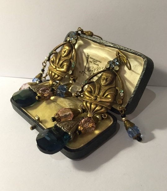 Vintage Egyptian Earrings, Egyptian Jewellery, Egyptian Revival Earrings, Egyptian Earrings, Egyptian Gold Earrings, Egyptian Jewellery, divine earrings.