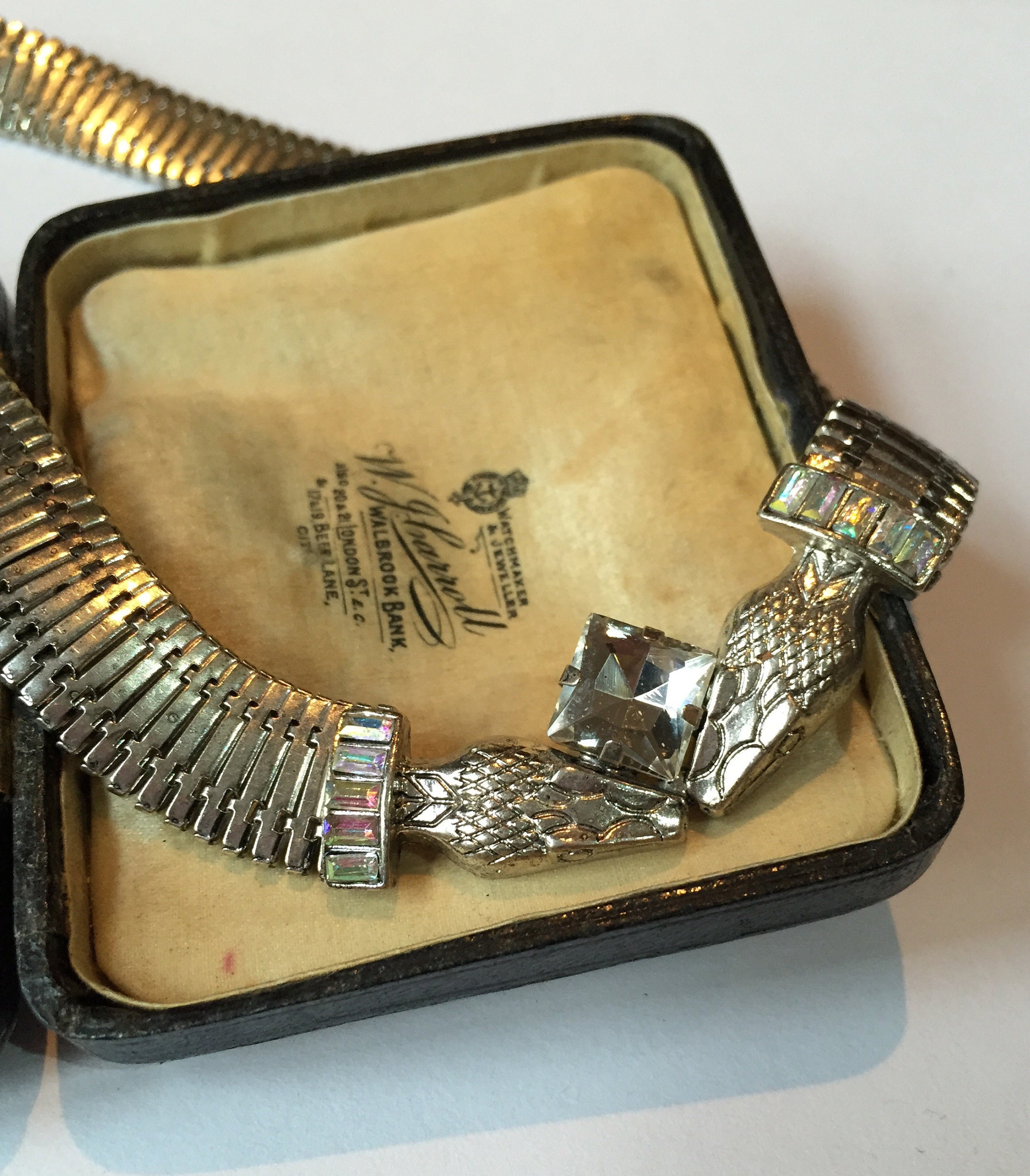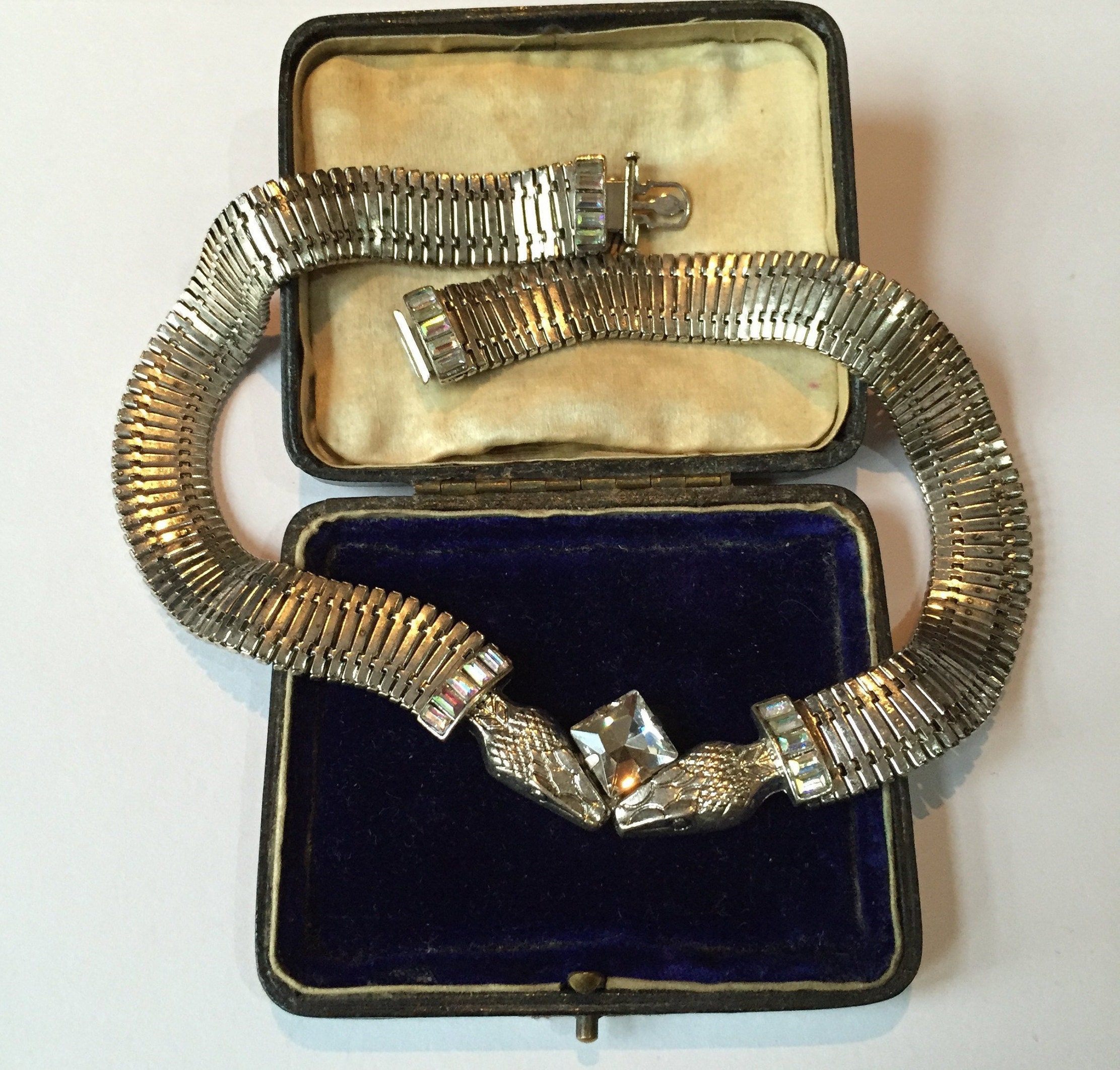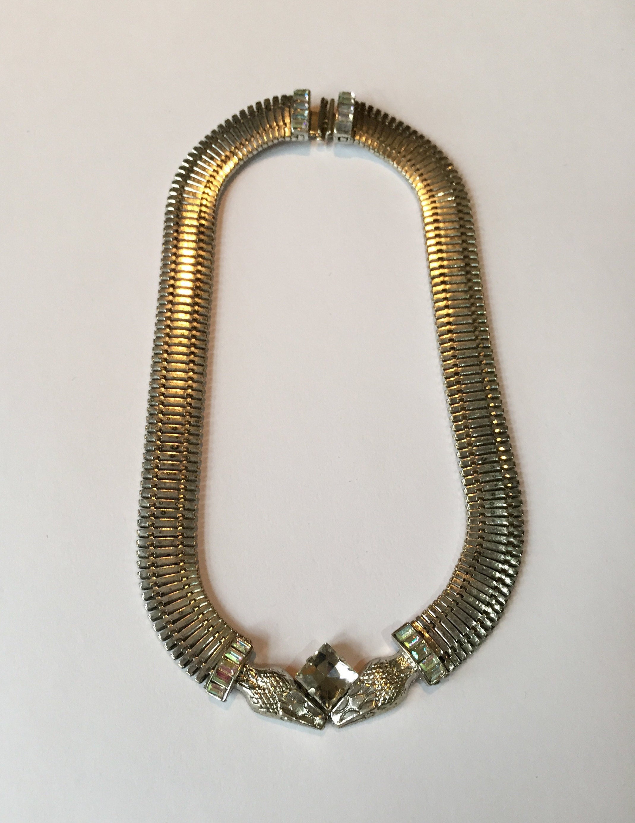 Vintage Silver double headed Snake necklace with exquisite Crystal detail. Fantastic detail in the faces. Circa 1960's never seen design before. This is great quality and the design is sublime, real striking high quality piece. Very rare item.