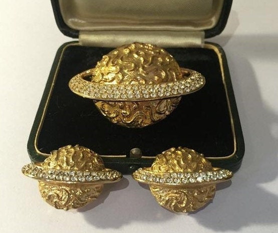 Vintage Saturn Brooch and Earring Set, Saturn Brooch, Saturn Earrings, Astrological Jewellery, Vintage Planet Jewellery, exquisite set