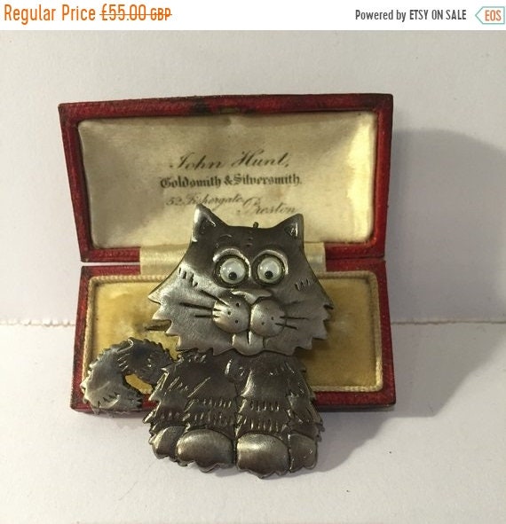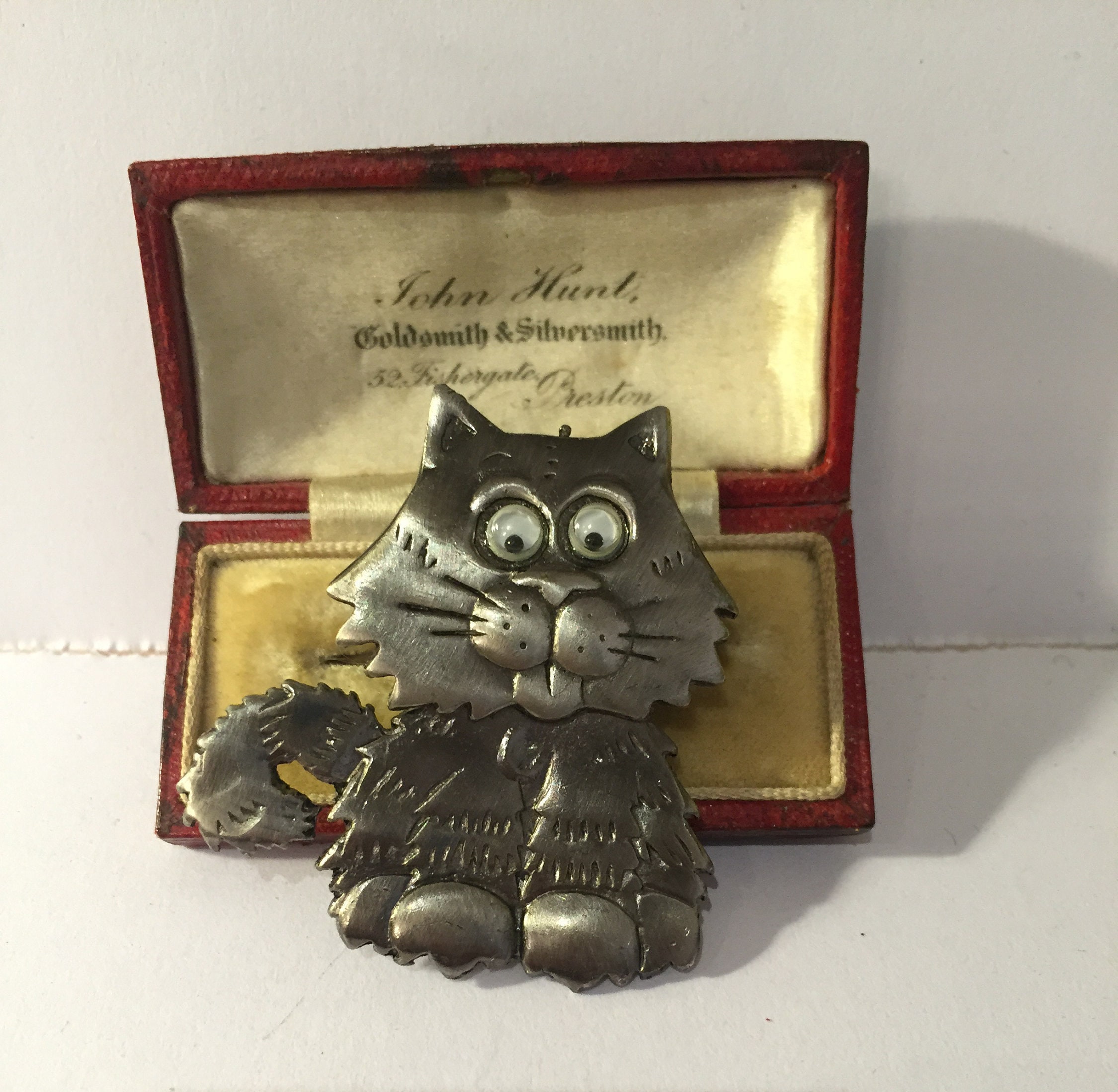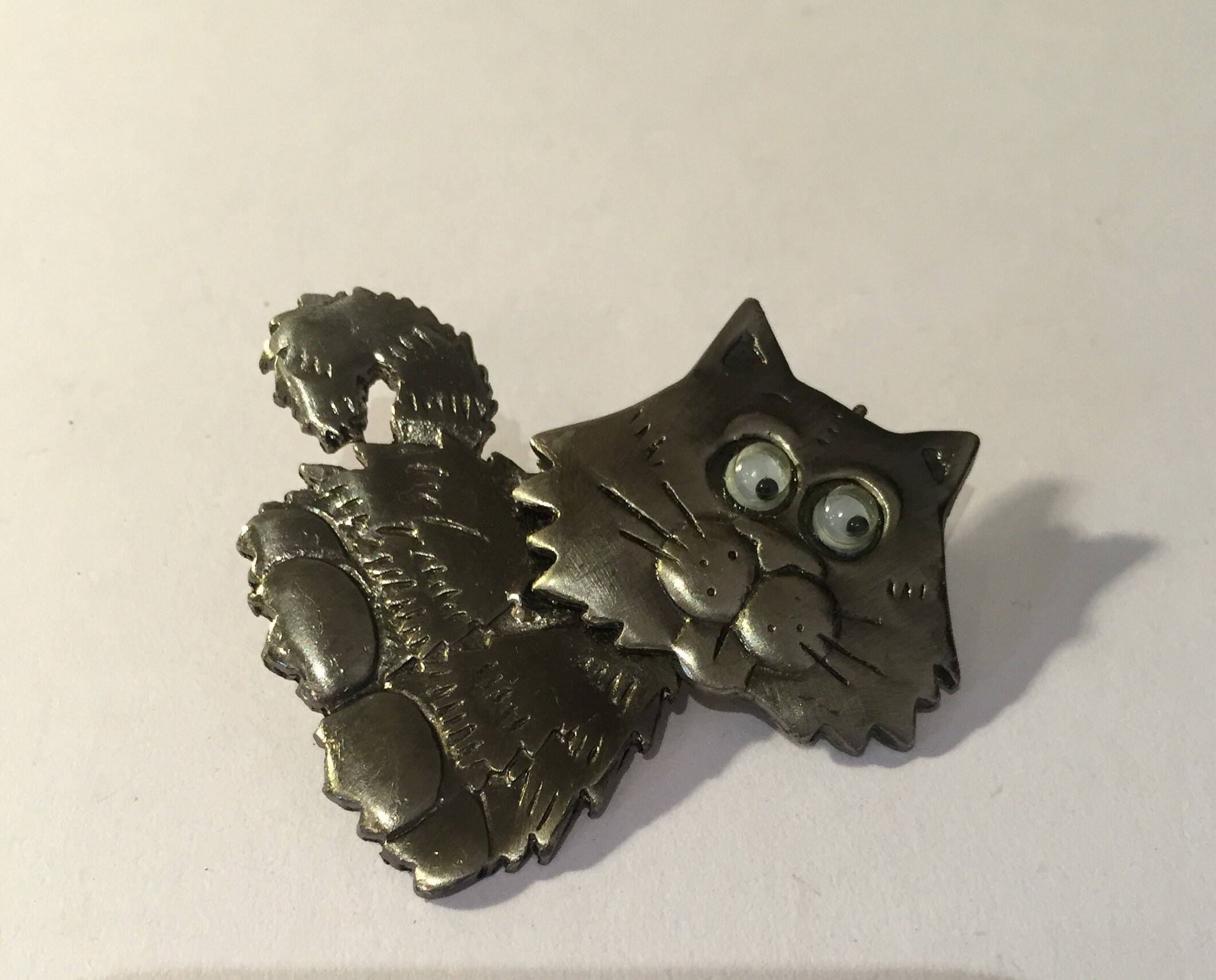 Vintage Cat brooch, Cat Brooch, Cat Jewellery,funny eyed cat, Cat Pin, Moving Cat brooch, fantastic piece.