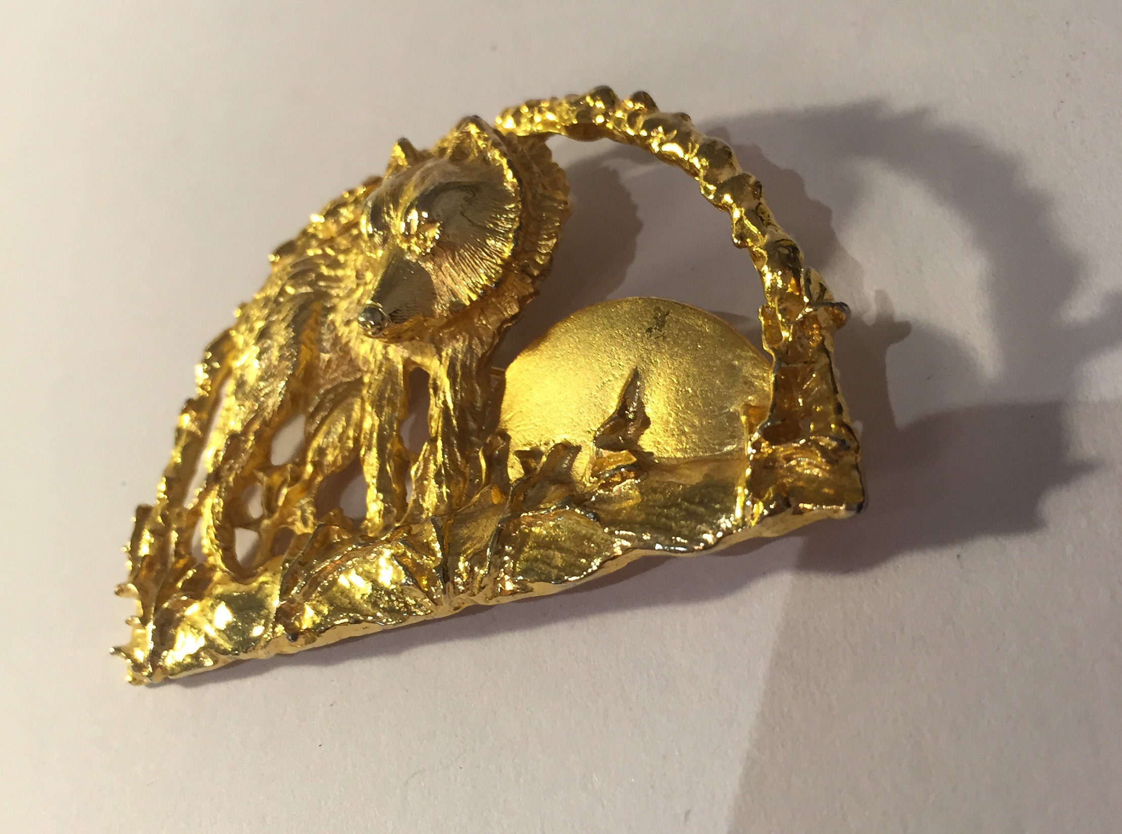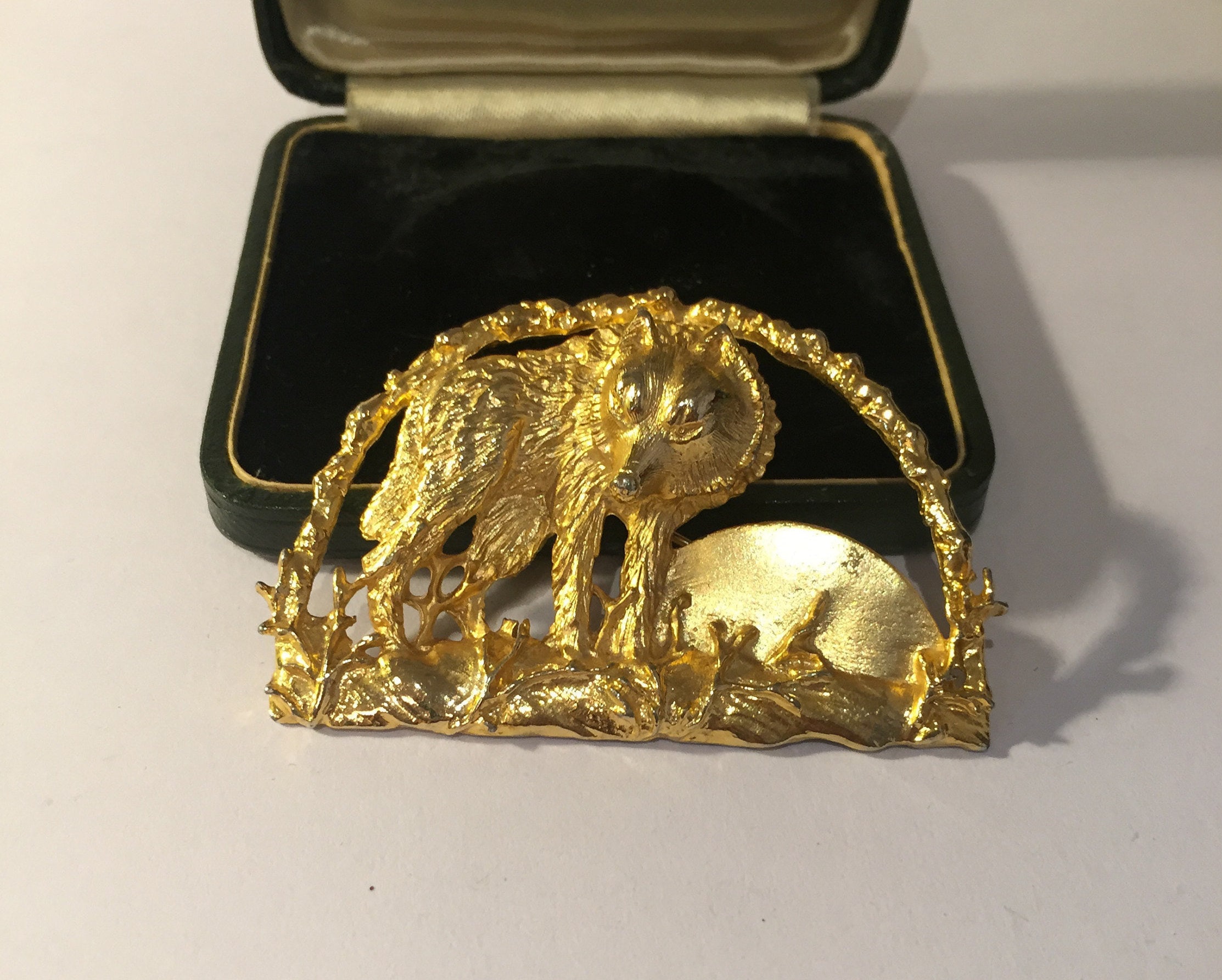 Vintage Wolf brooch, Wolf Jewellery, Wolf Gold Brooch, Wolf Pin, Wolf Brooch, animal brooch, striking piece