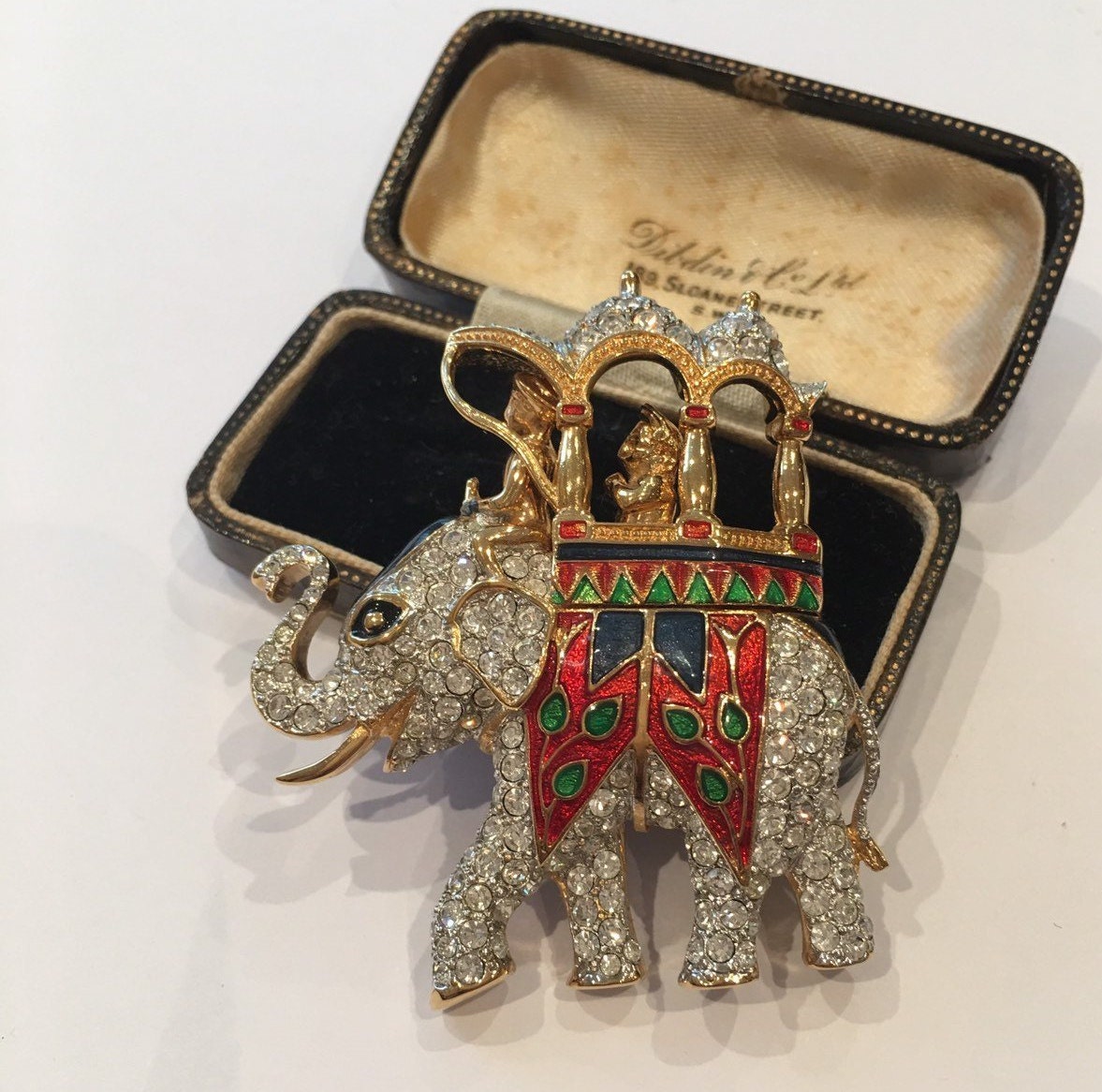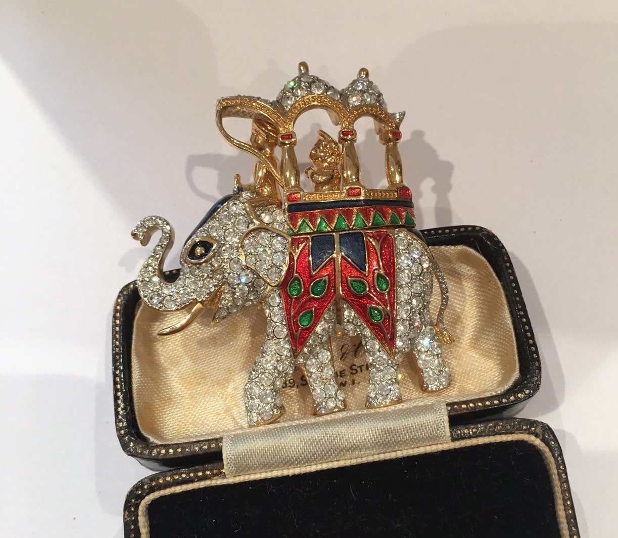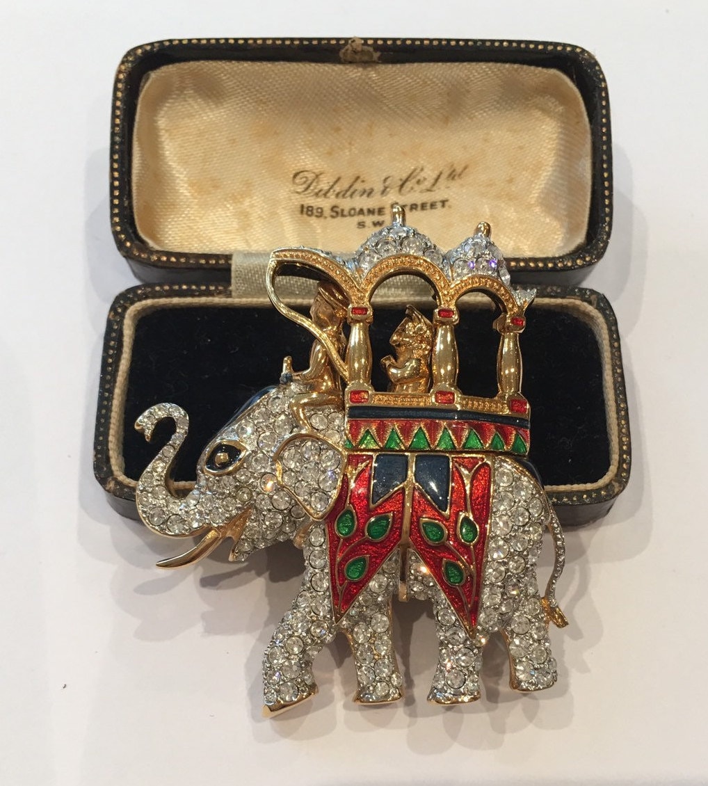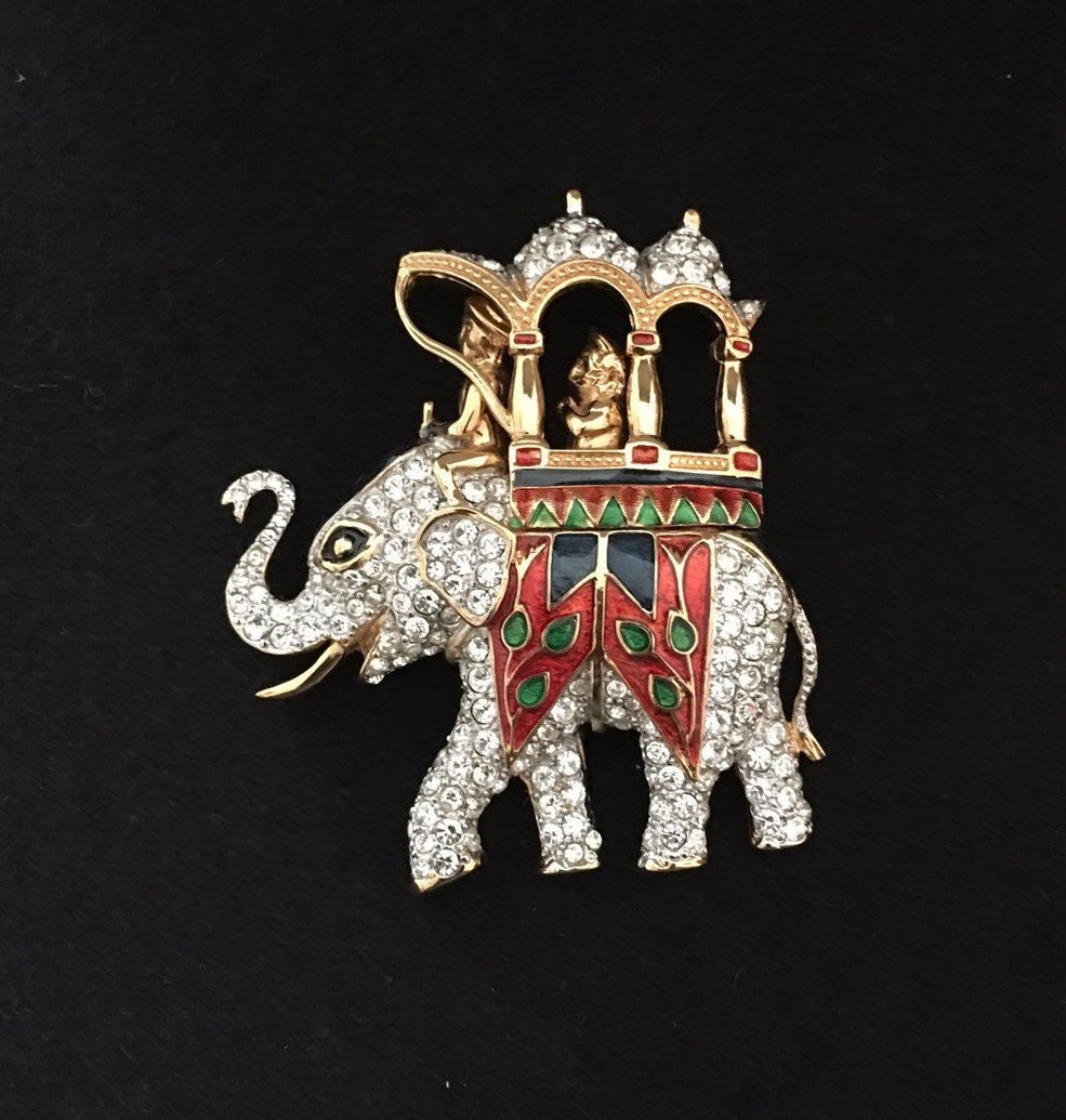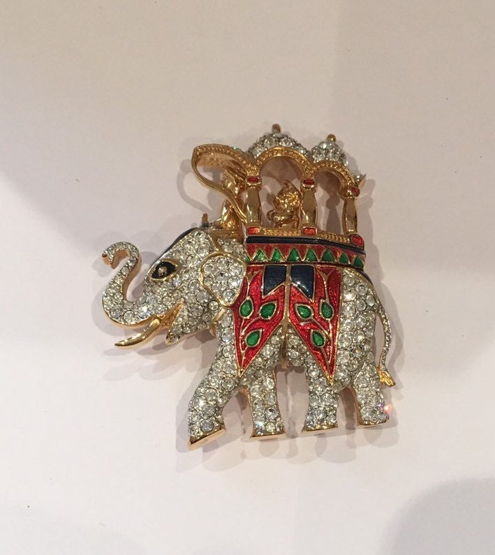 A Charming vintage Elephant brooch set with divine Rhinestone detail. Wonderful enamelling and sublime quality. Fantastic costume striking piece. Extremely rare never seen before.