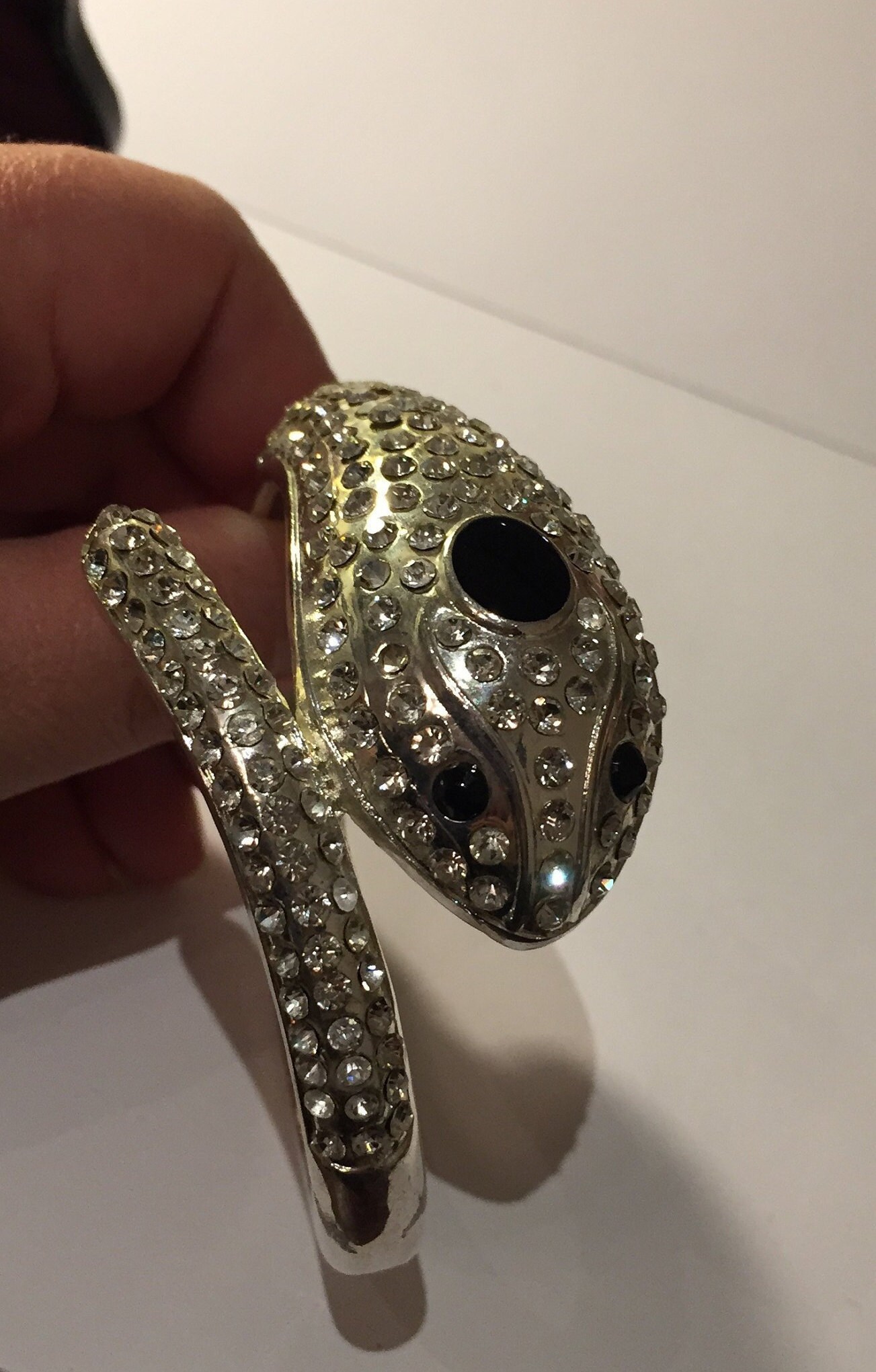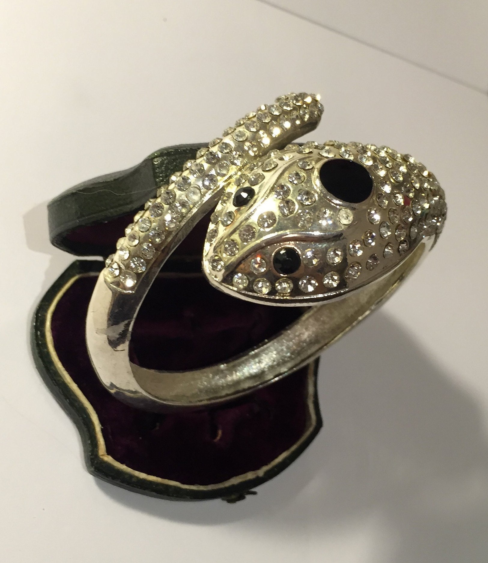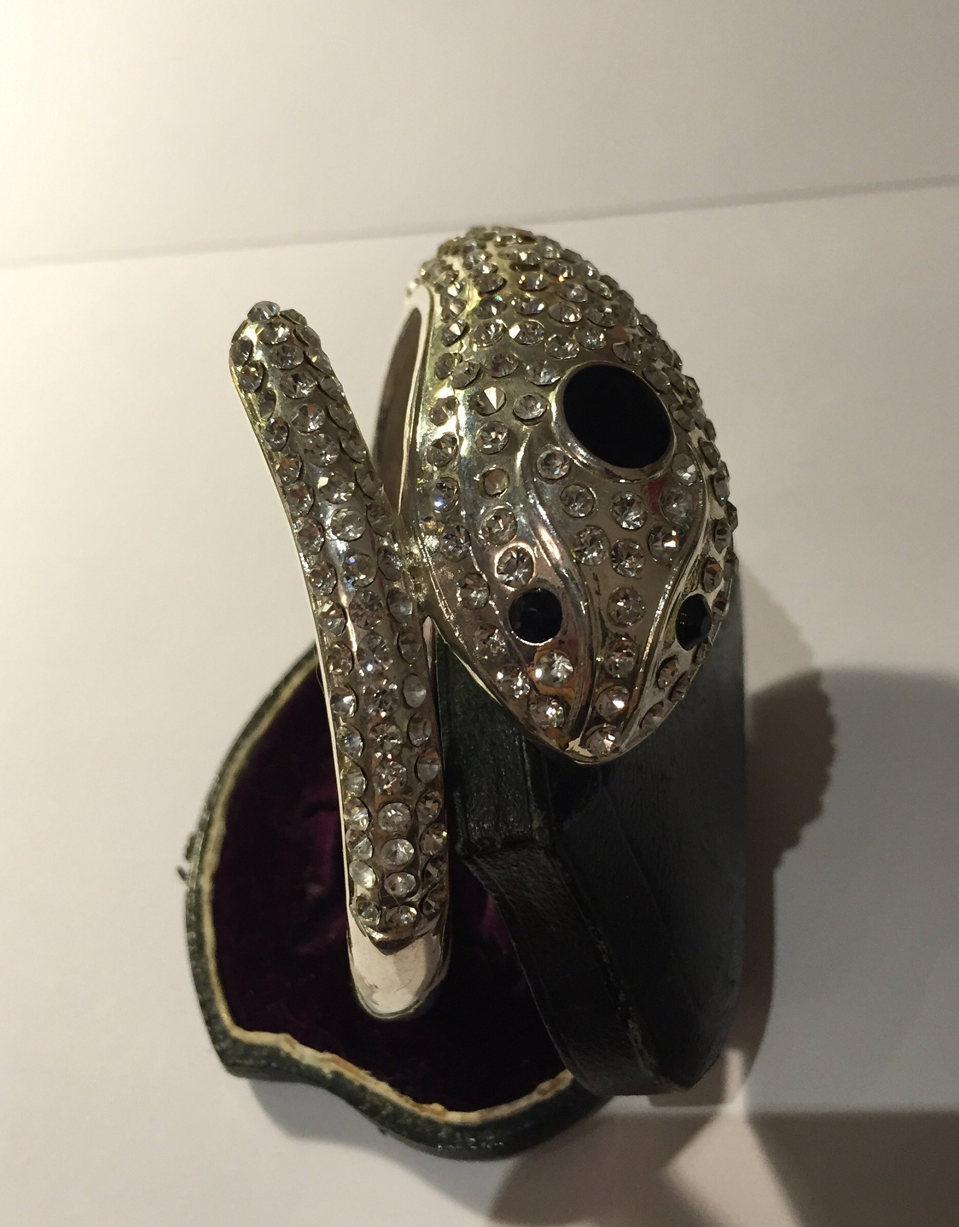 Vintage black and silver Snake cuff bracelet/ bangle with beautiful Rhinestone detail and design. Striking piece.