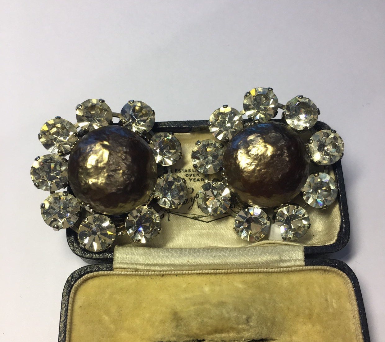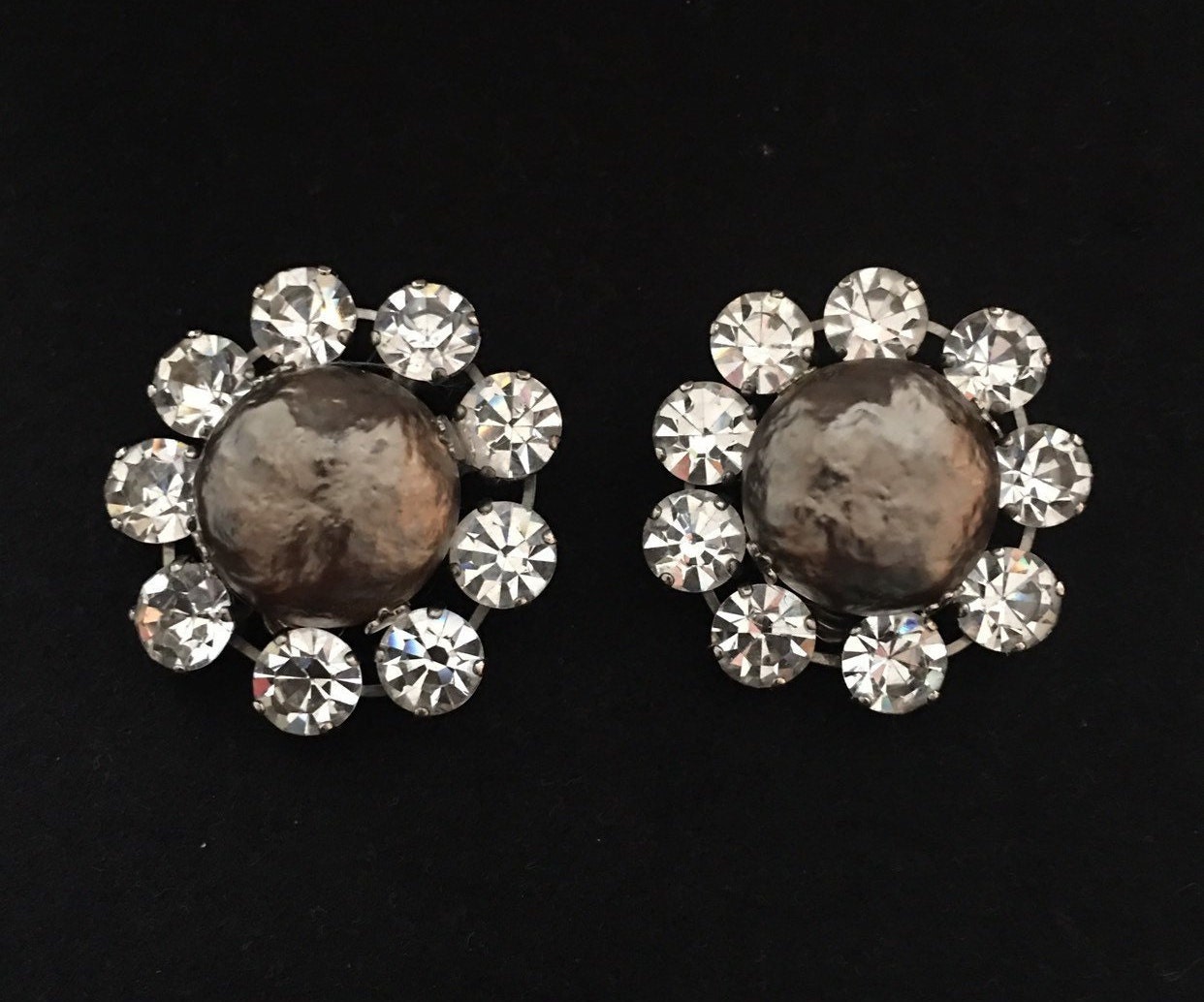 Vintage Costume Earrings with great design and set with exquisite Rhinestones. Clip on style. Striking design and look divine on. Beautifully craftsman ship and super quality.