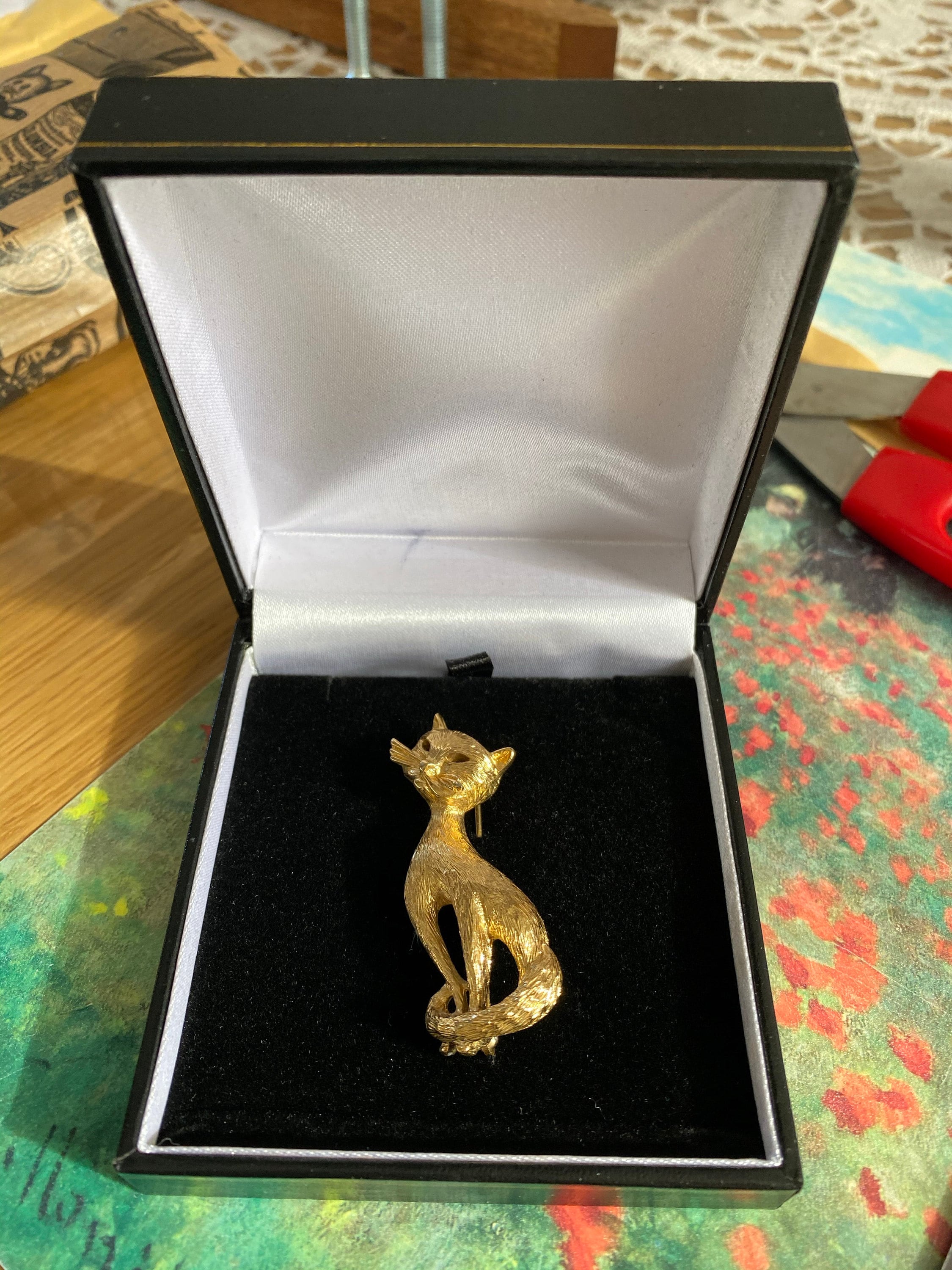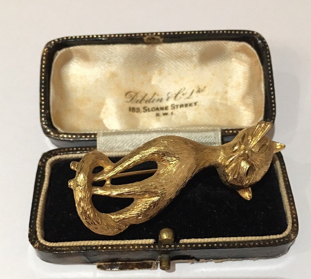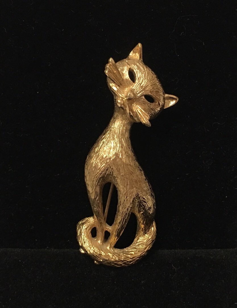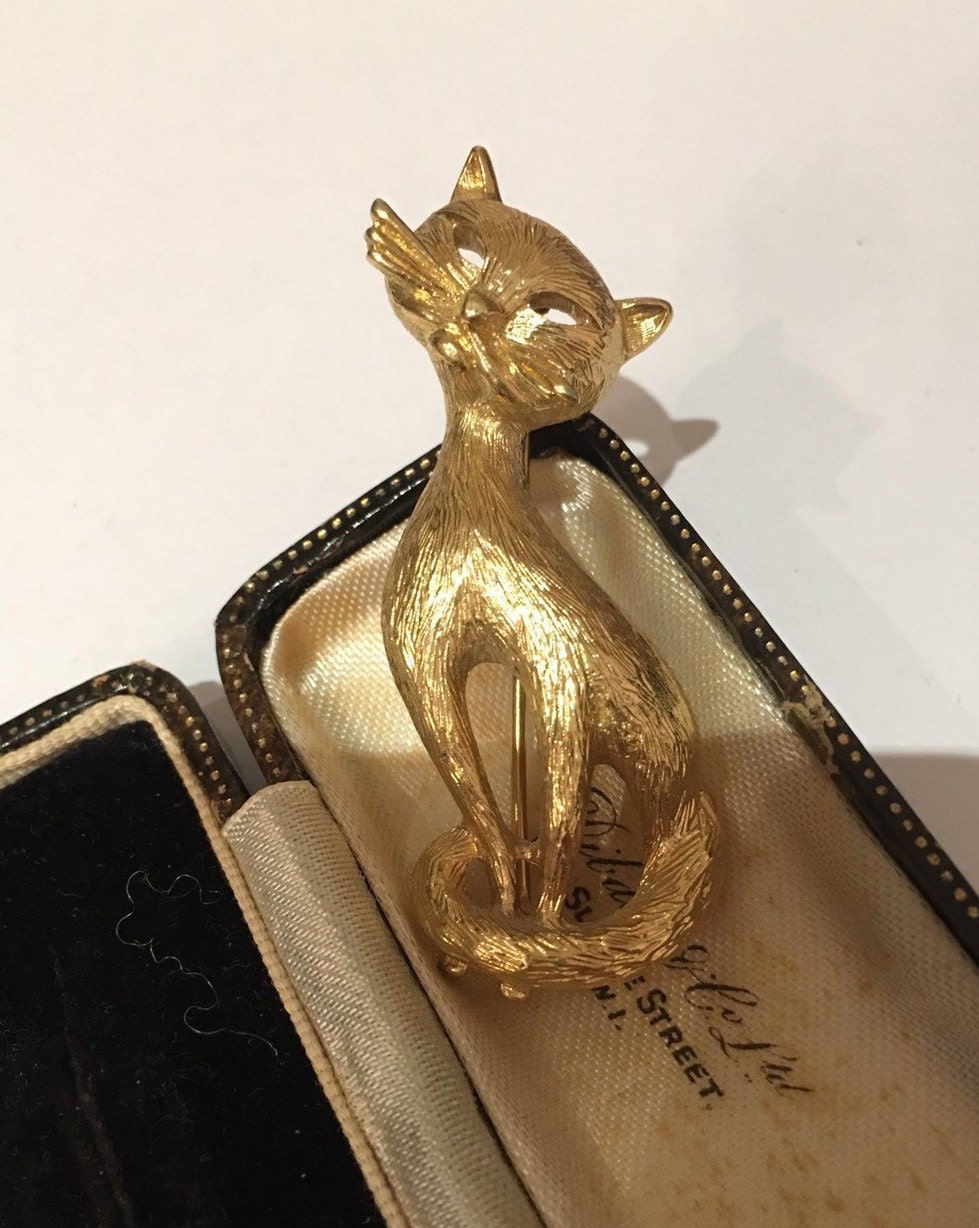 Cat Brooch, Vintage Cat brooch, Cat Jewellery, Gold Cat brooch, cat design brooch, Cat Pin, fantastic costume piece.