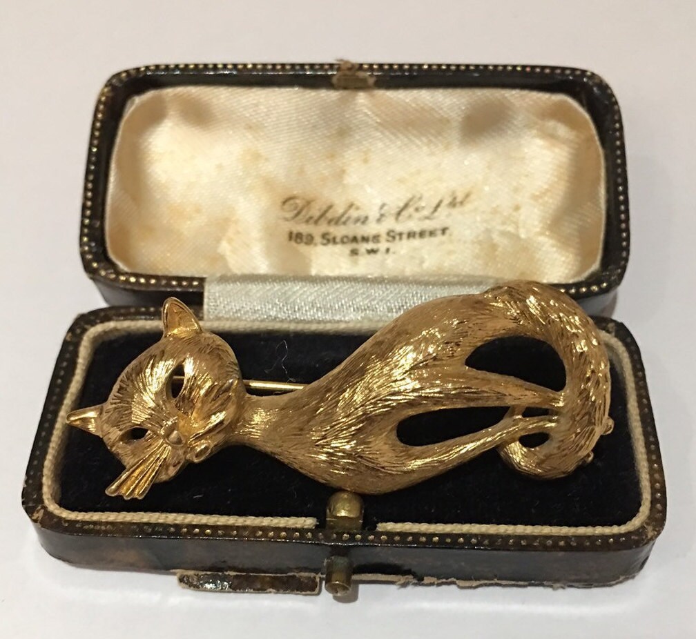 A Charming Vintage gold Cat costume brooch with beautiful detail and stylised design. Superb piece.