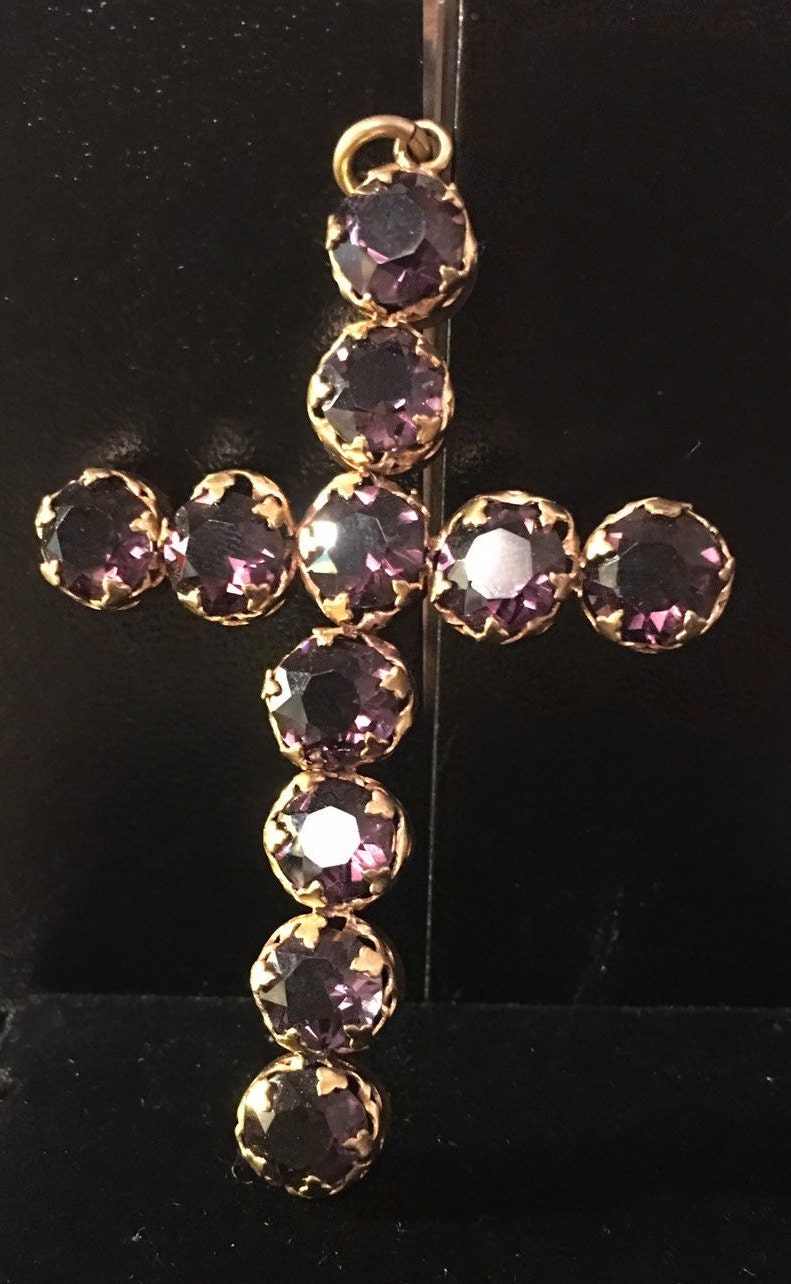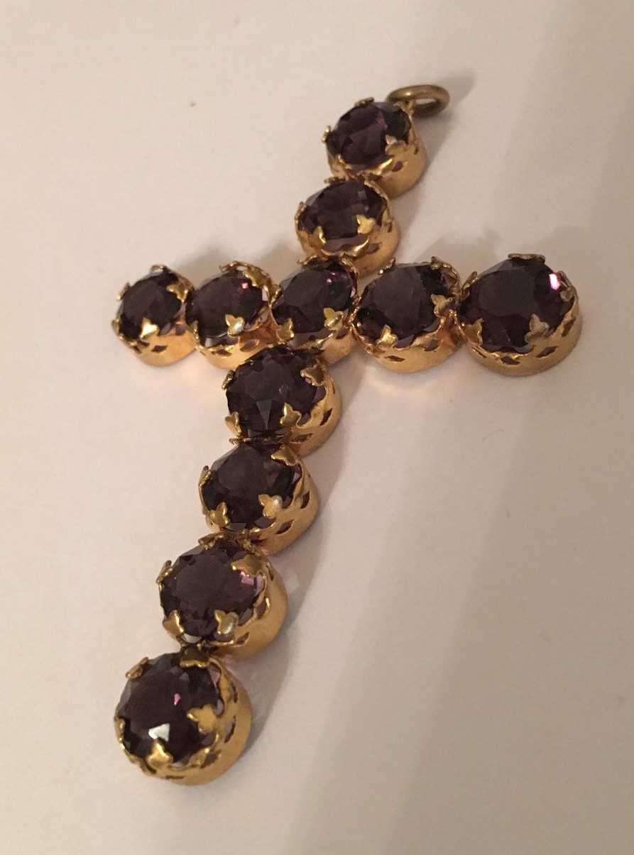 Vintage Amethyst Cross, Amethyst Cross Pendant, Amethyst Crucifix, Religious Necklace, Vintage Religious Pendant, Amethyst Jewellery
