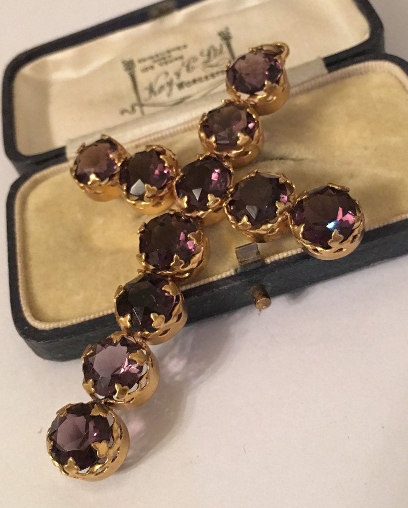 A fantastic Vintage Gold Amethyst large Religious Crucifix Pendant, divine quality and design. Wonderful Amethyst Stones with breath taking colour. Looks exquisite on and hangs beautifully. Very rare piece.