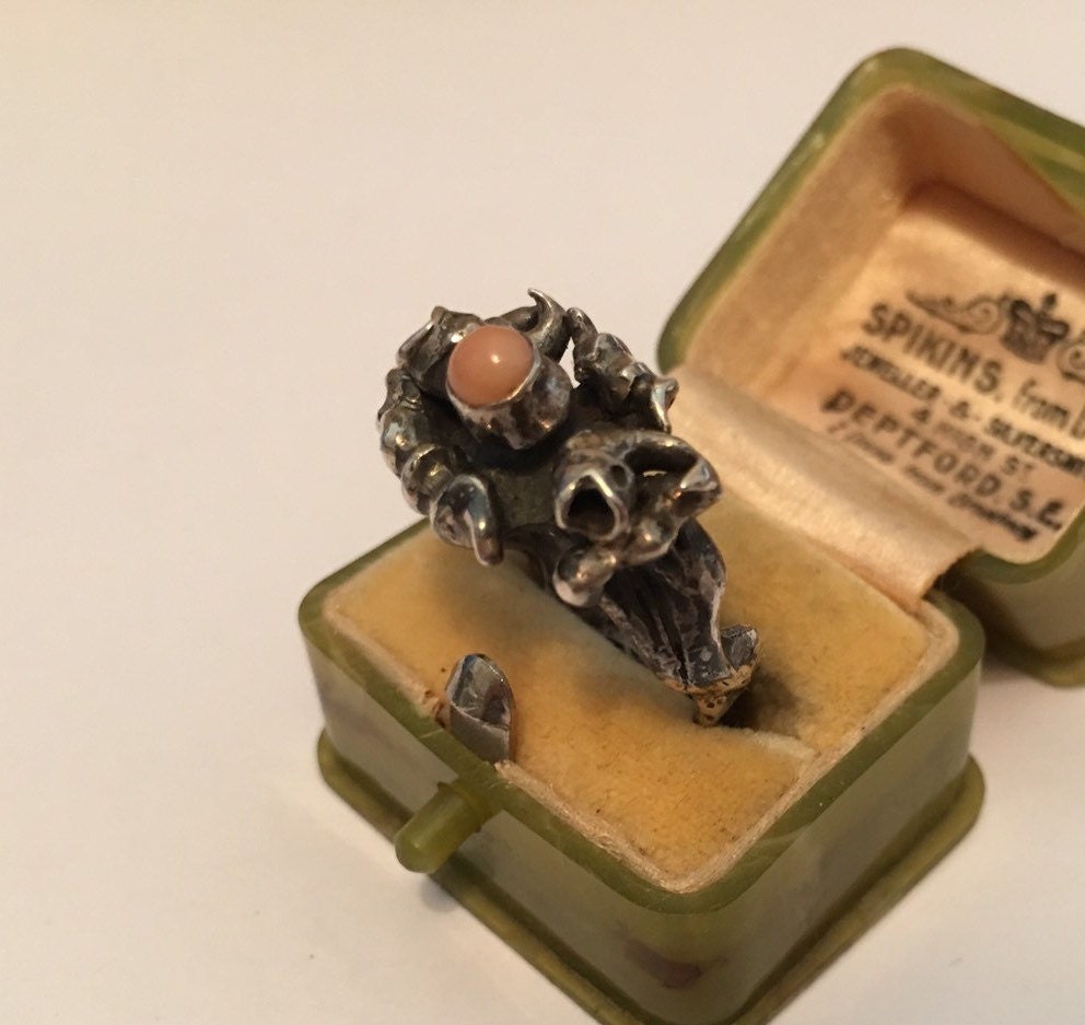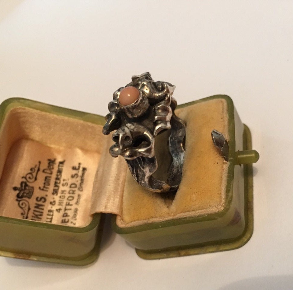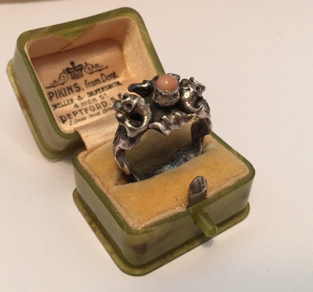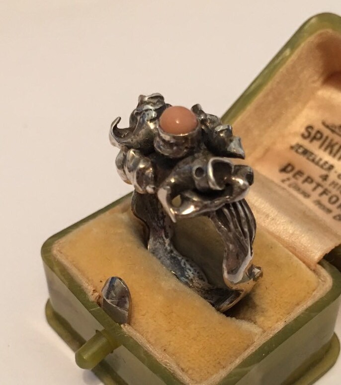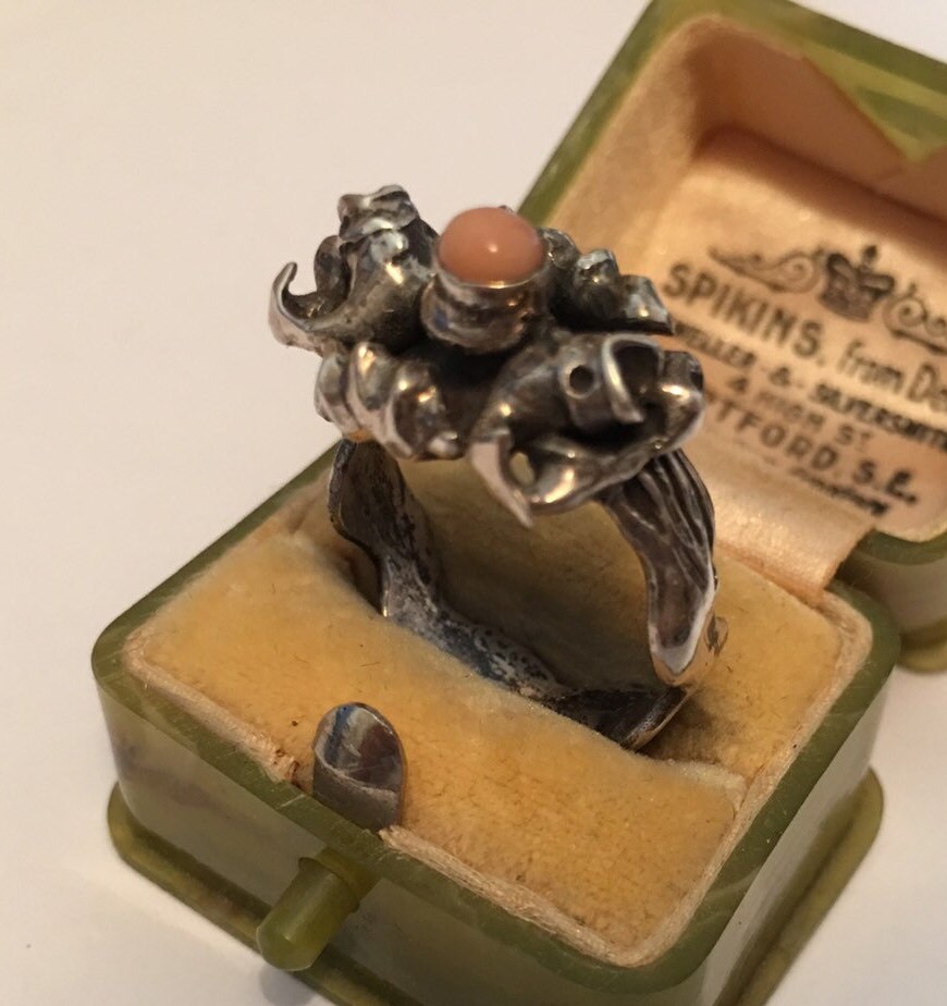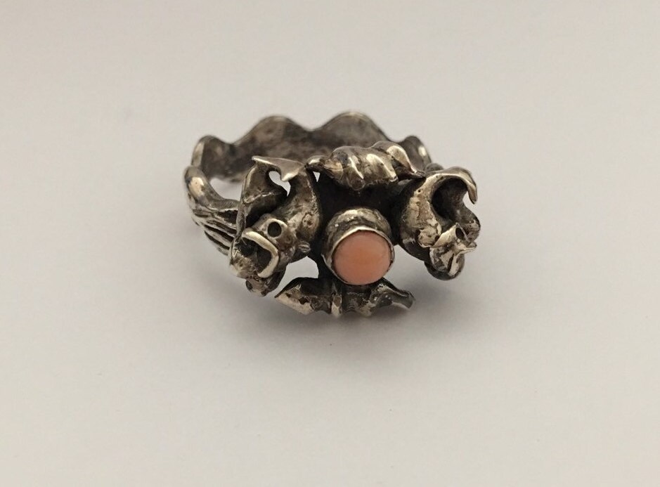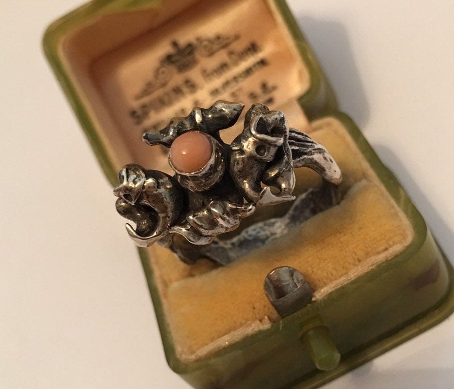 Vintage Fish Ring, Sterling Fish Ring, Silver Fish Ring, Vintage Coral Ring, Coral Jewellery, Fish Jewellery, Exquisite piece