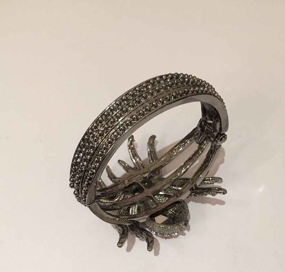 Vintage Silver Spider cuff Bracelet/ Bangle by Butler and Wilson with breath taking beautiful Rhinestone detail and design. Striking piece with fantastic movement and quality. I absolutely love this piece, makes me smile every time. Extremely rare piece. Looks fantastic on.