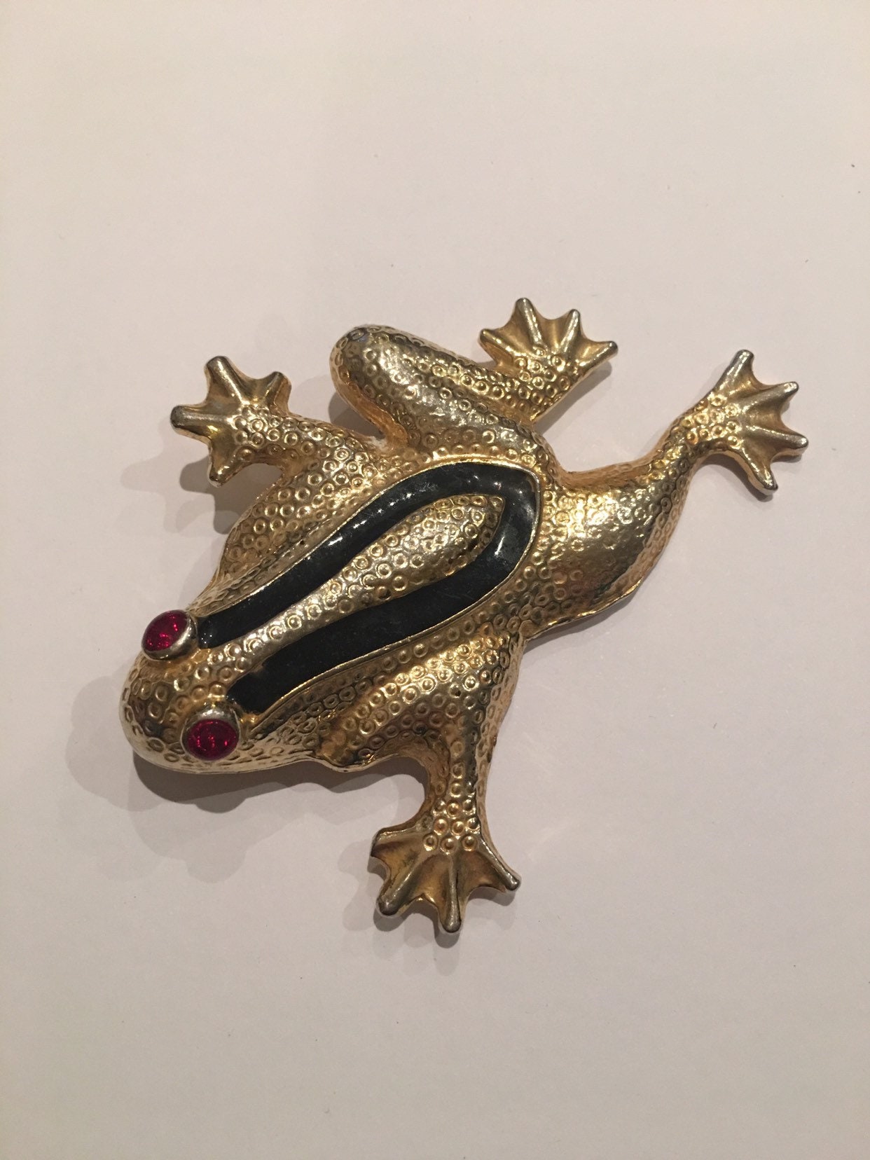 Vintage Frog Brooch, Gold Frog Brooch, Frog Jewellery, Large Frog Pin, Statement Frog, Frog Pin, Frog jewelry, fantastic statement piece.