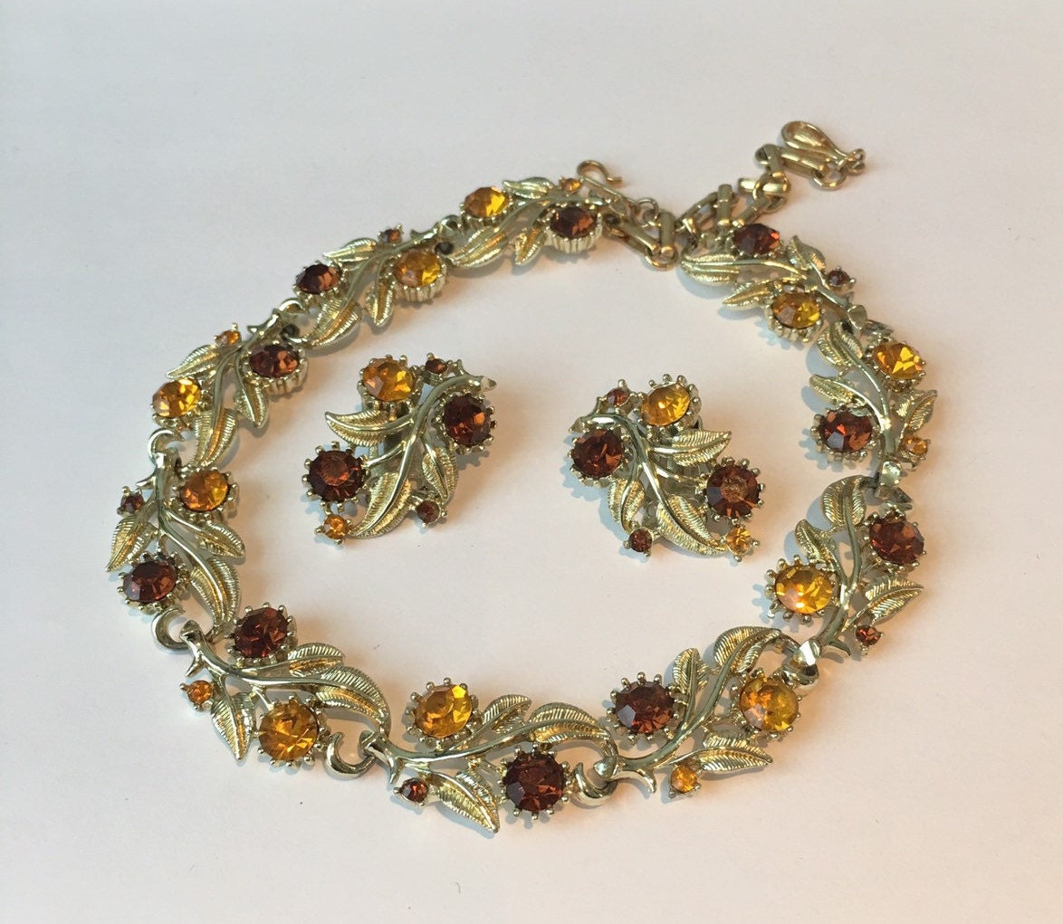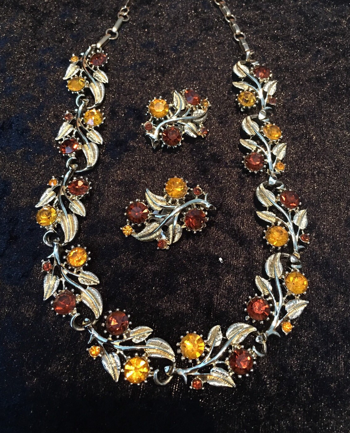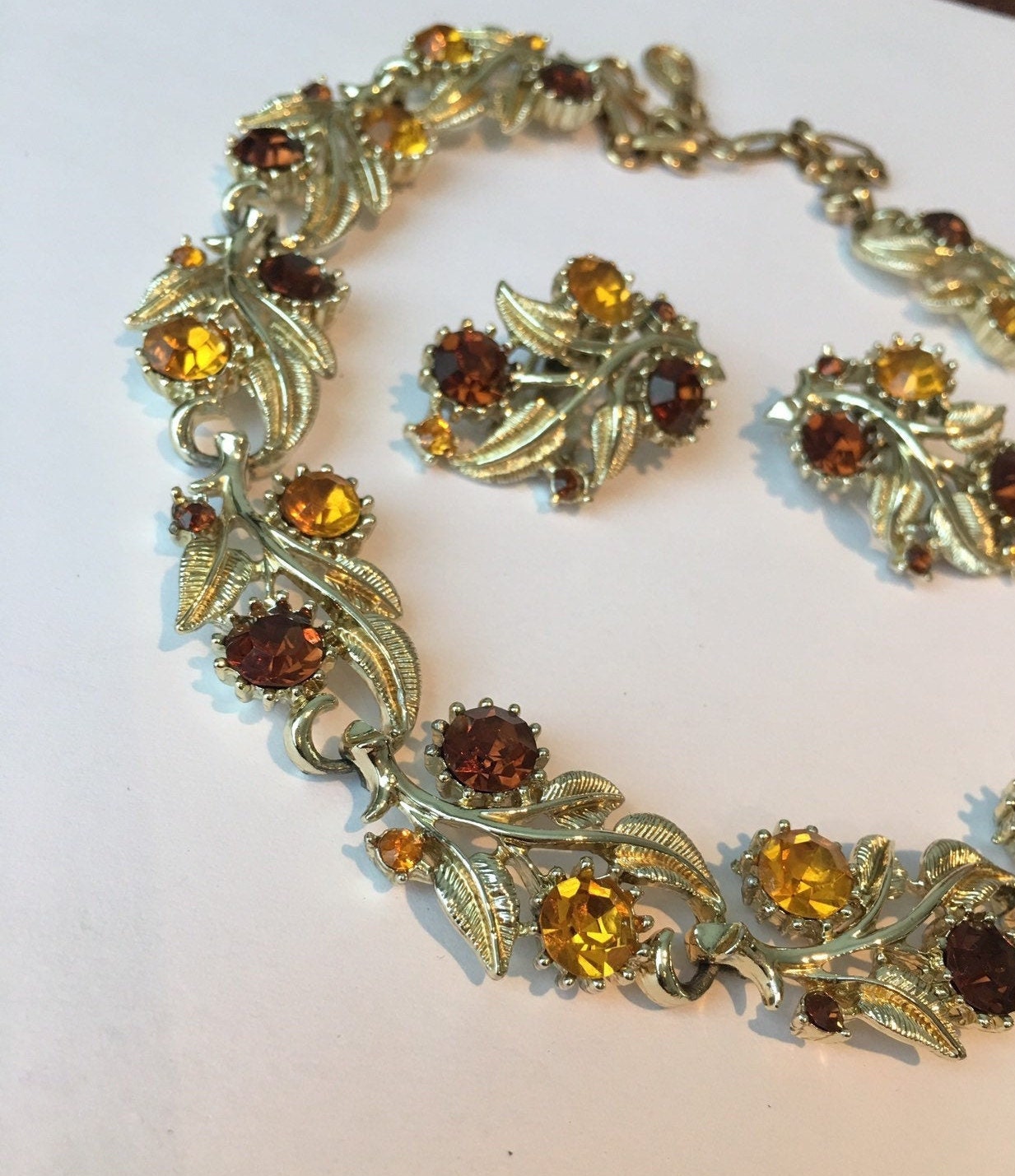 Vintage Costume Necklace, Costume Set, Coro Necklace Set, Vintage Set, Vintage Jewellery, Vintage Earrings, Autumn Jewellery, divine set