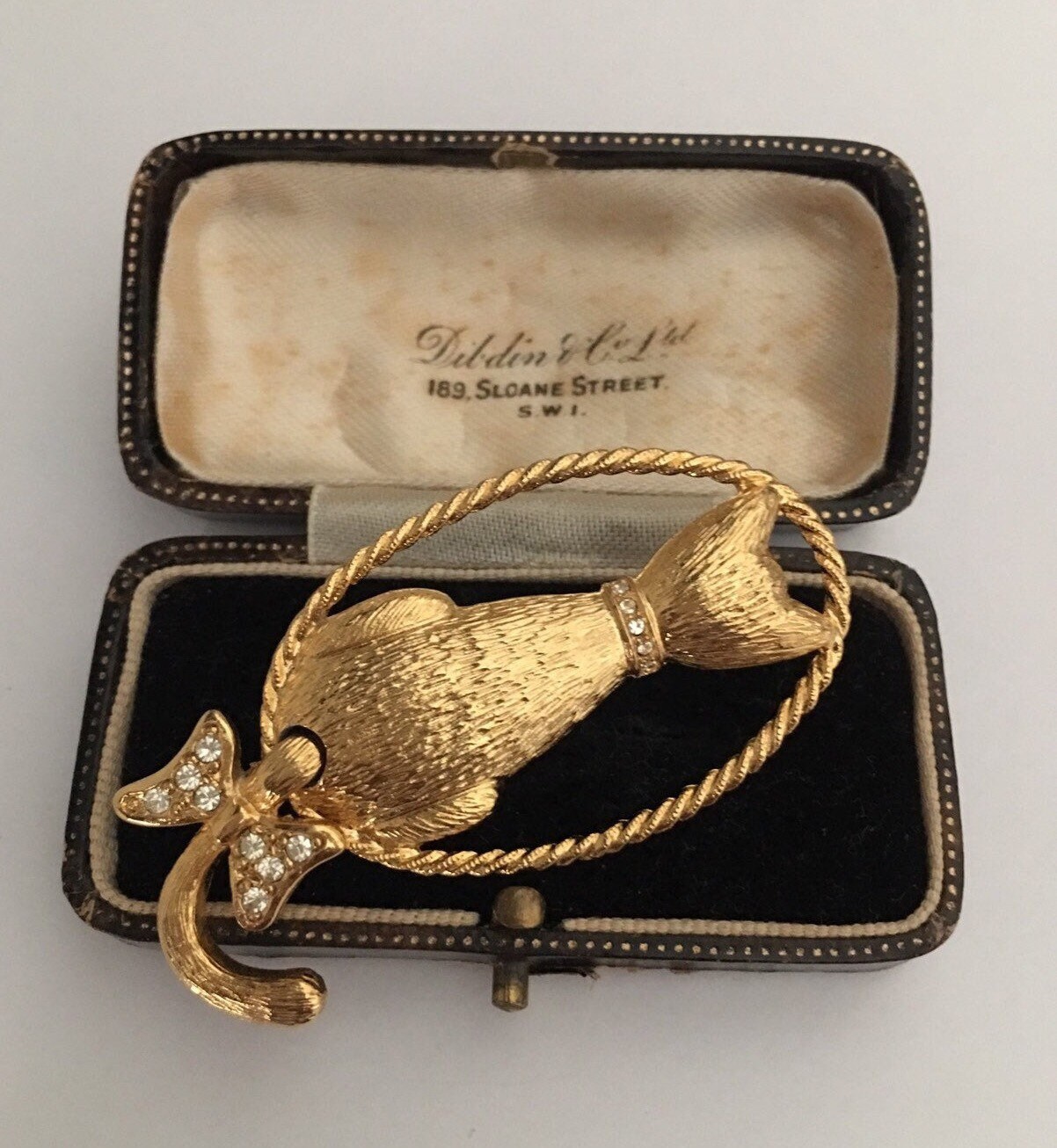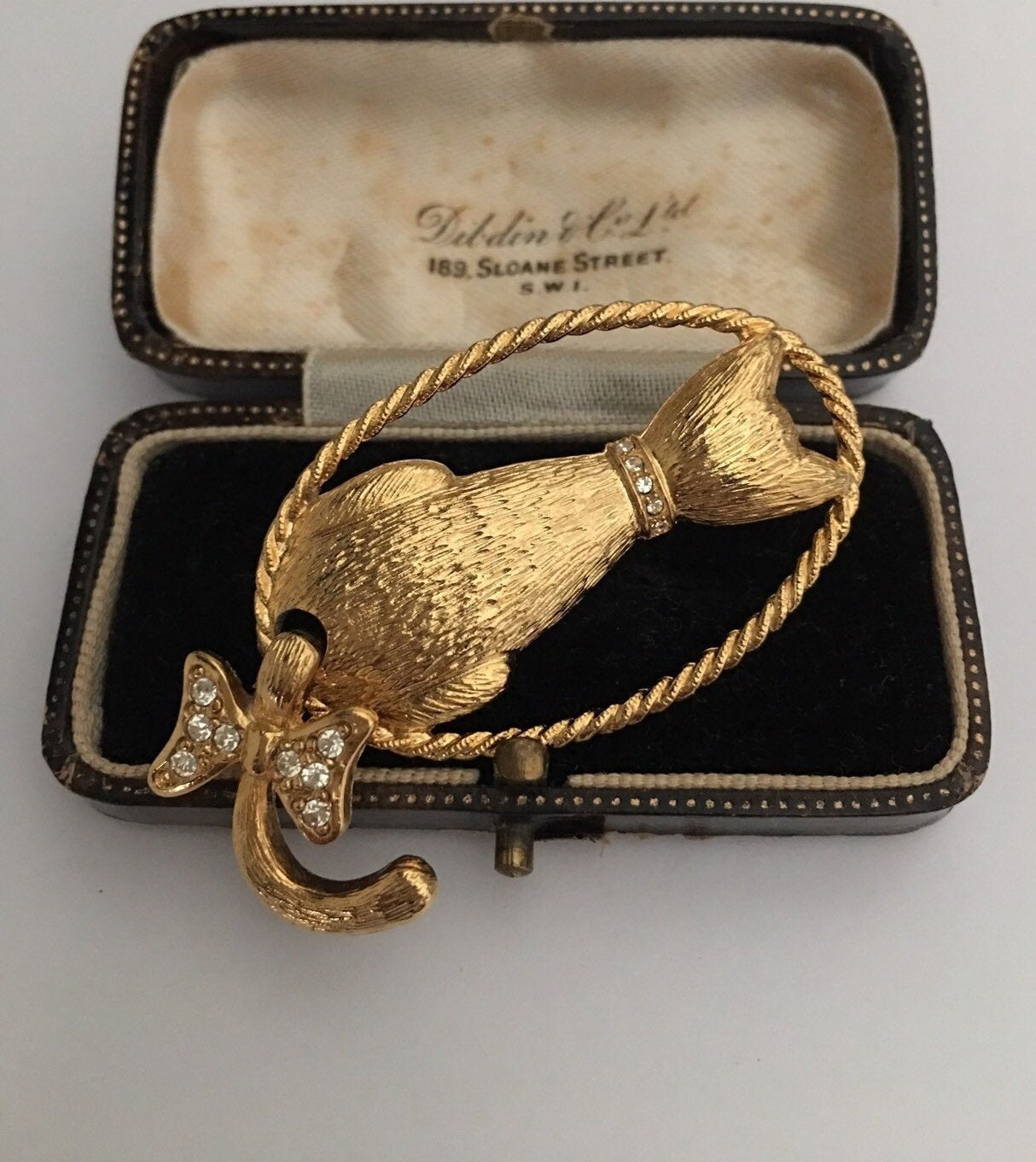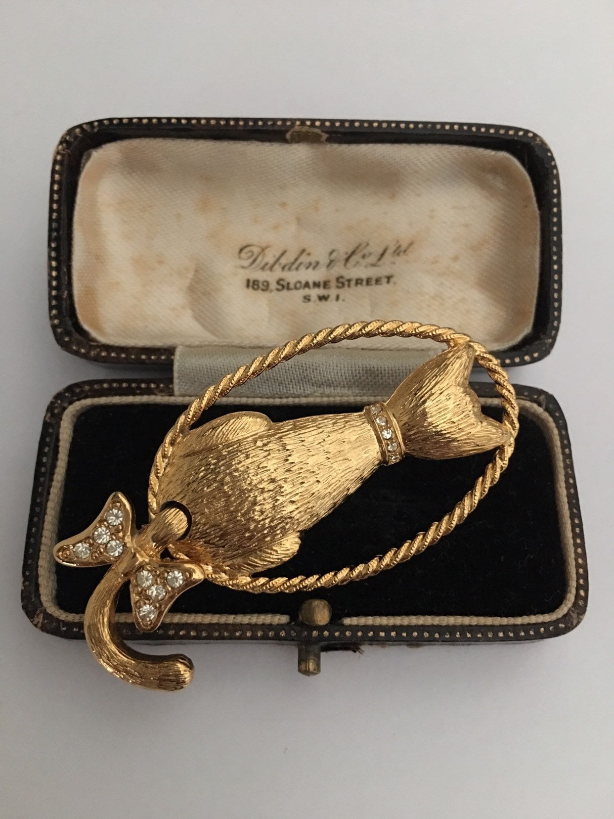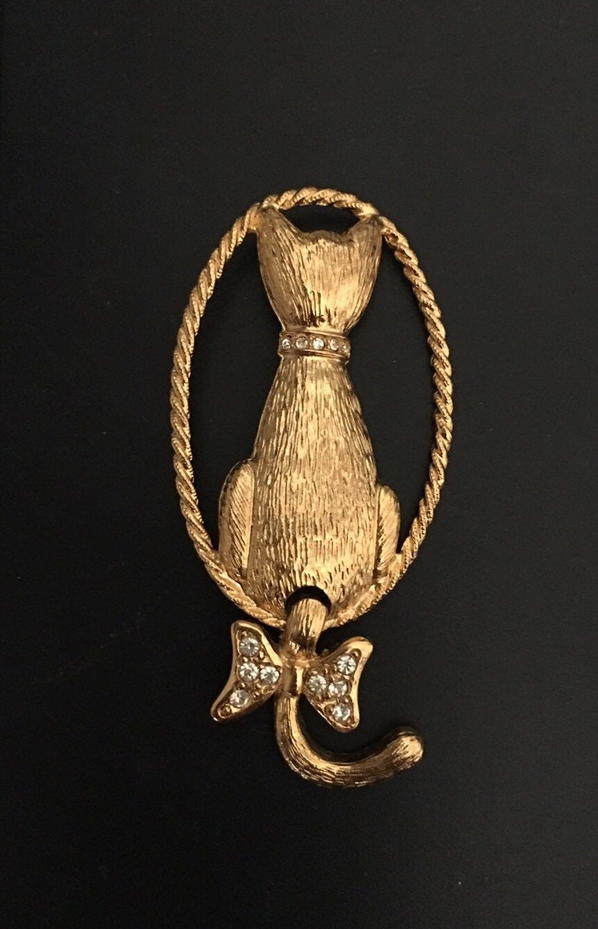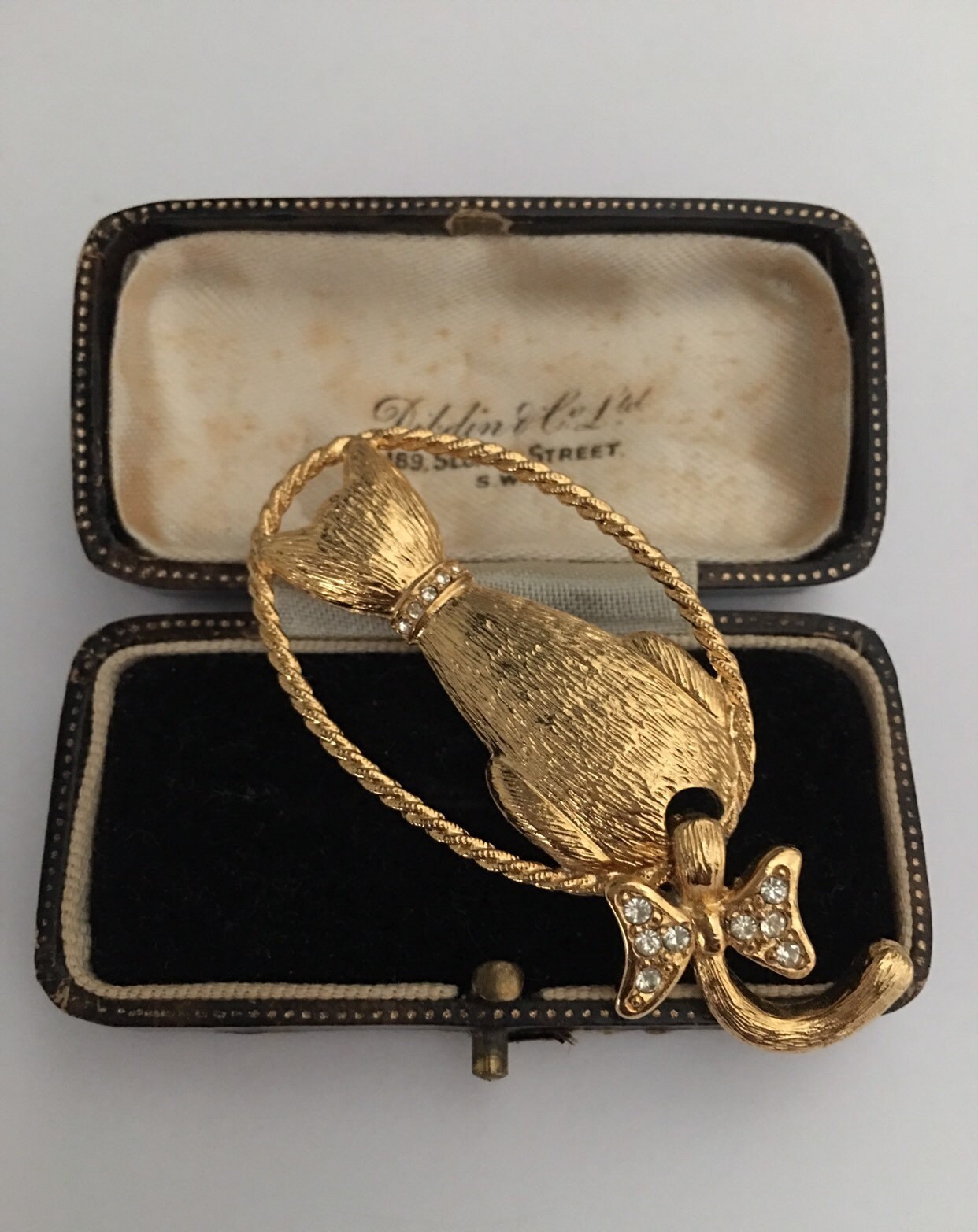 Vintage Cat Brooch, Cat Brooch, Cat Jewellery, Gold Cat Pin, lovely Costume piece.