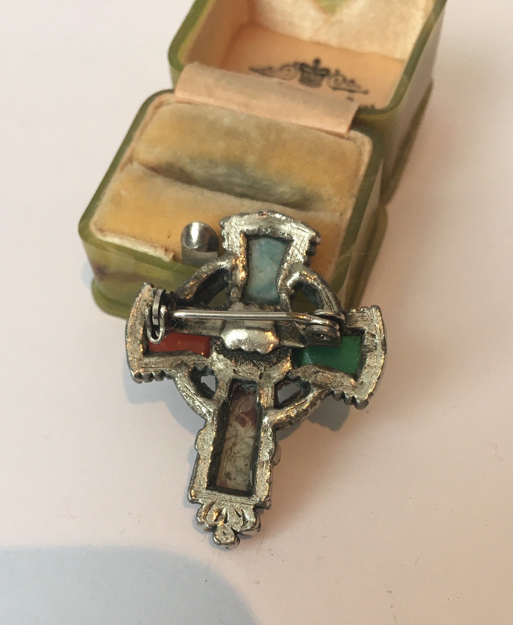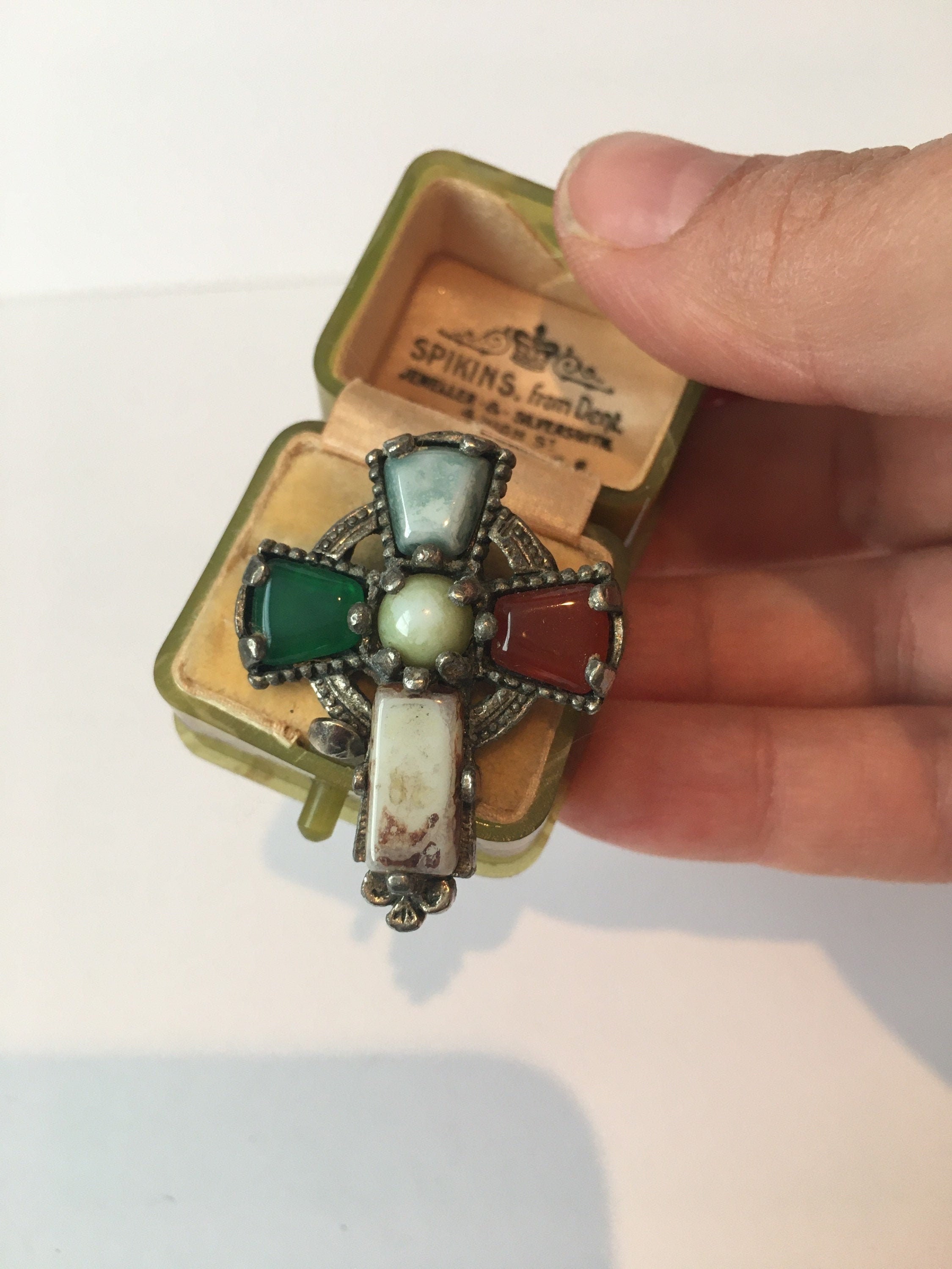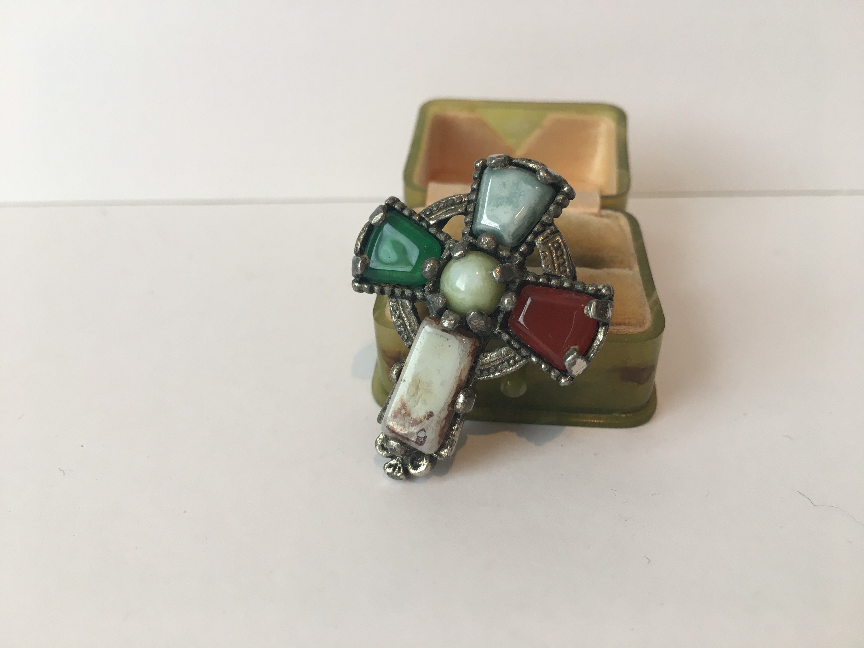 Delightful vintage Agate Cross brooch set with beautiful Agate stones. Exquisitely made by the famous company Miracle with lovely quality. Looks wonderful on