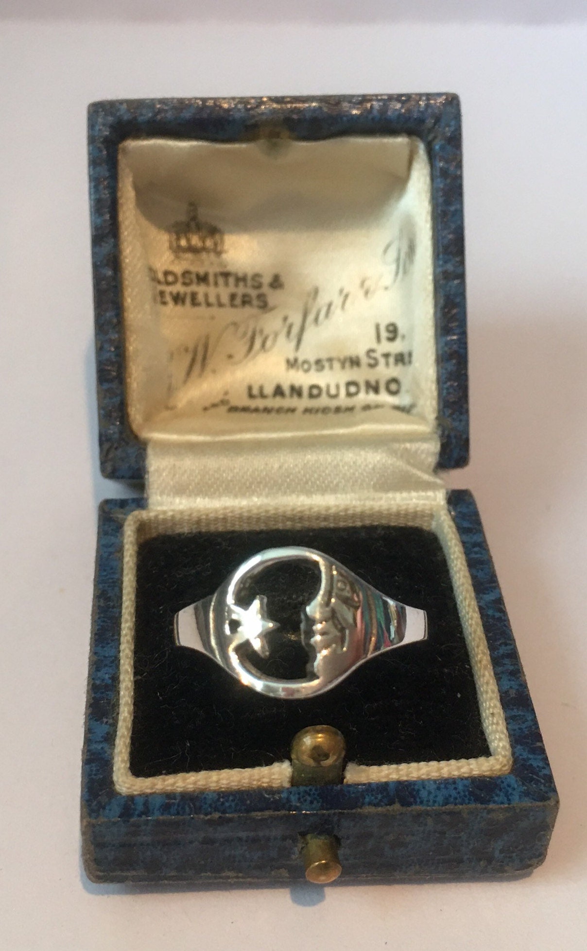 Vintage Moon Ring, Silver Moon Ring, Moon Jewellery, Moon Face ring, Man in the Moon ring, Star Ring, Sterling silver, exquisite ring.