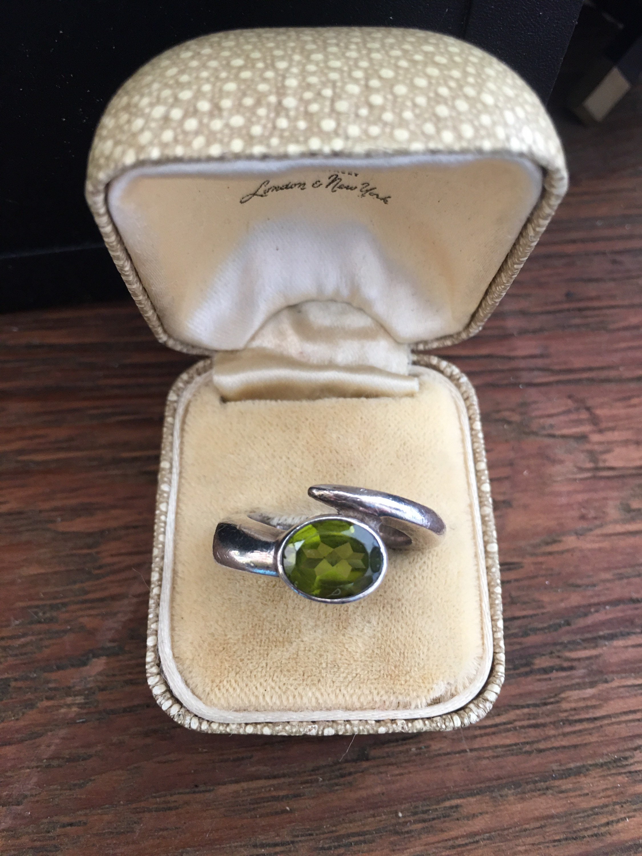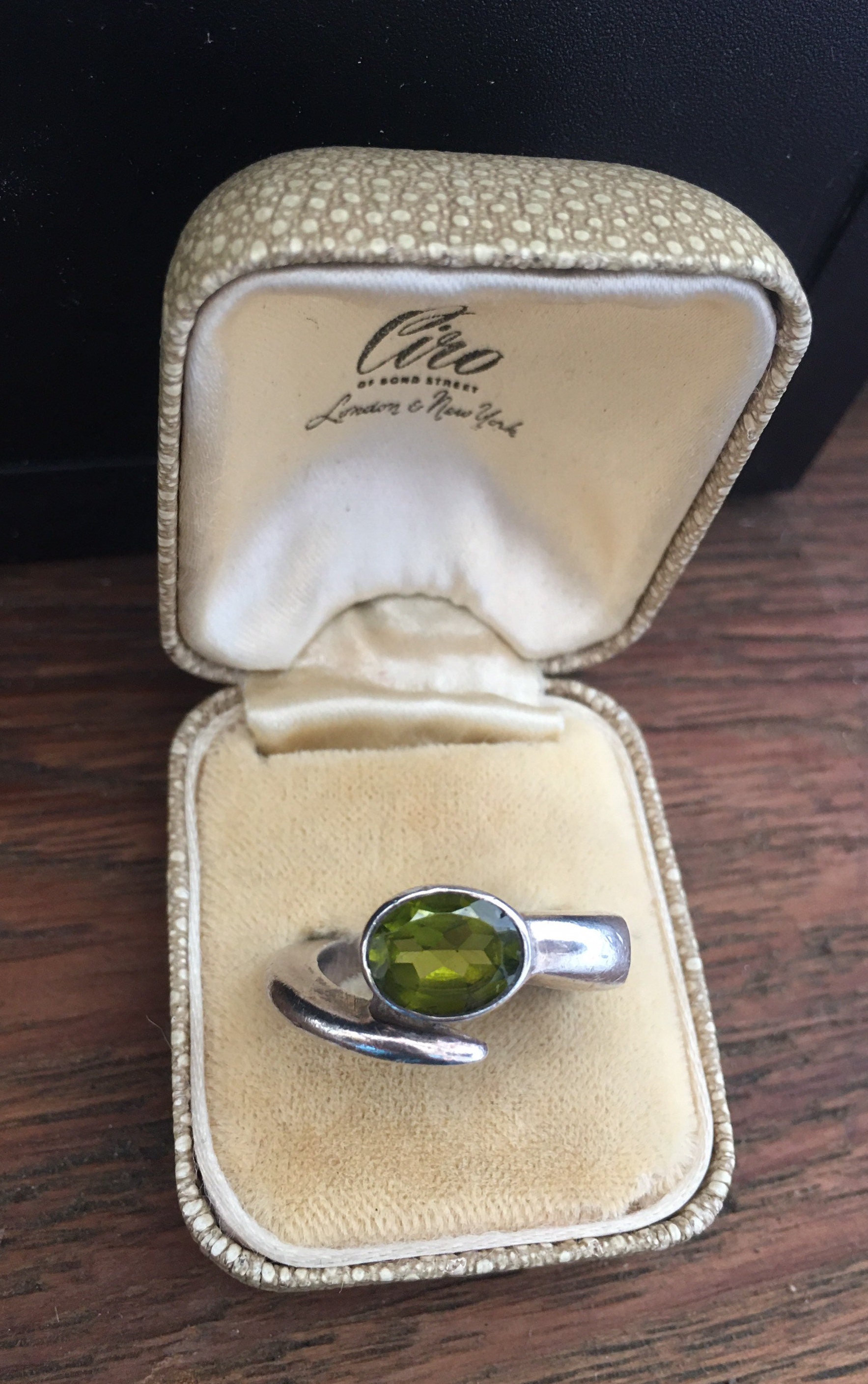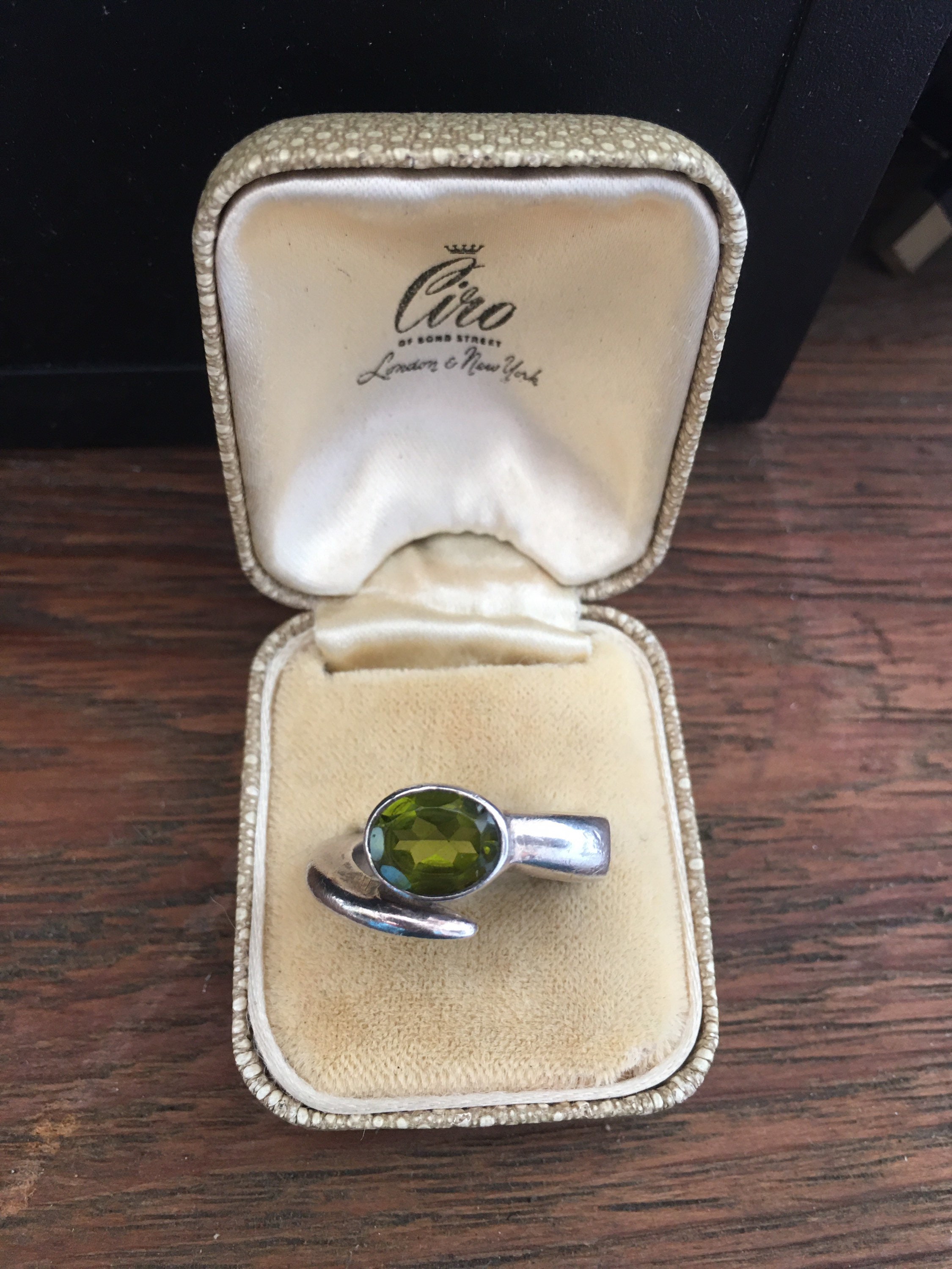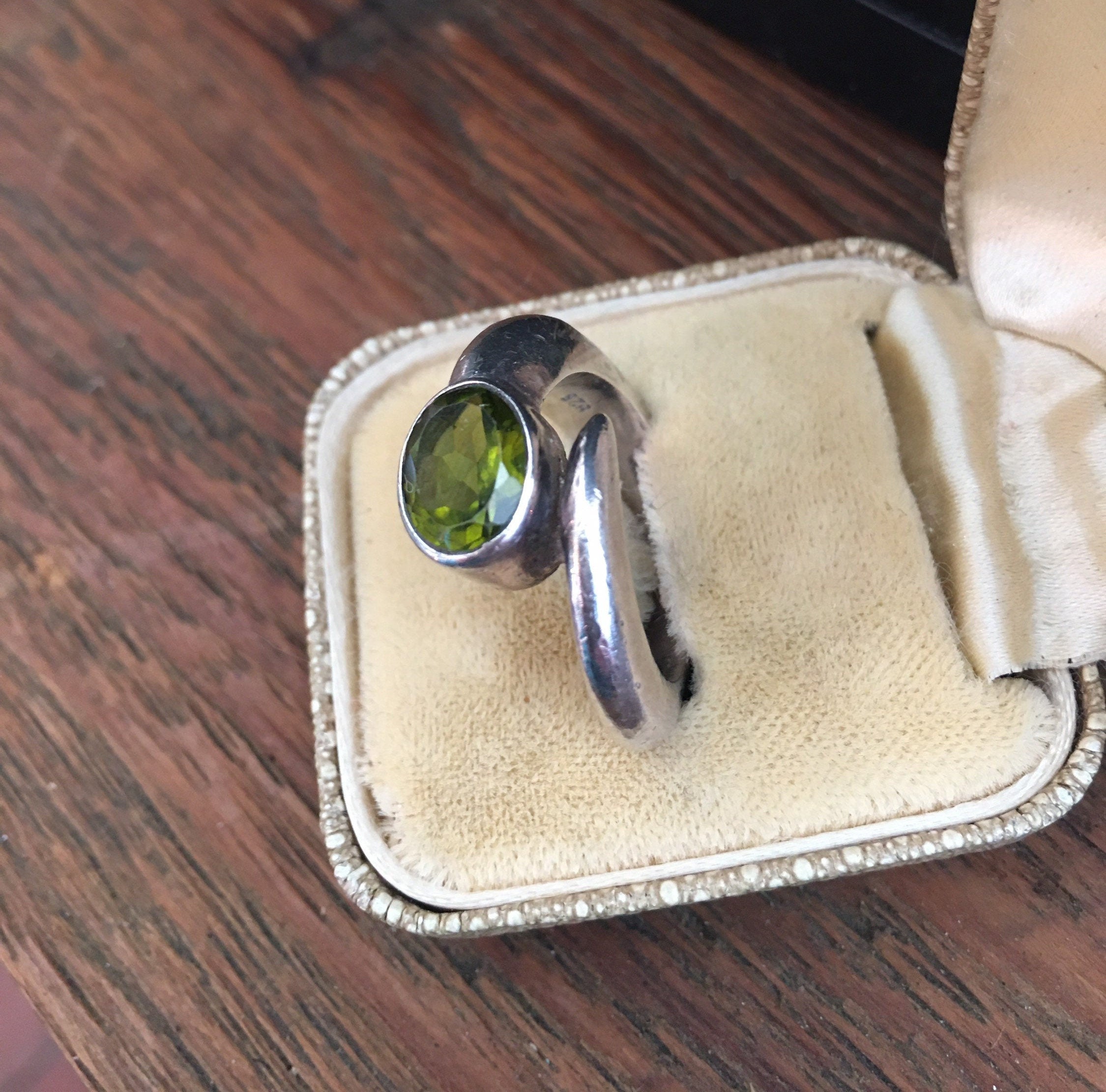 Silver Peridot Ring, Vintage silver ring, Peridot Jewellery, Modernist Peridot Ring, fantastic design.